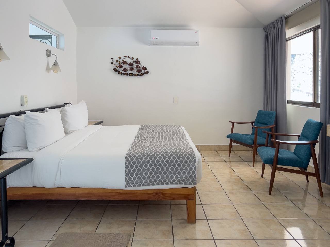 (lower level): Two double size beds, En-suite bathroom, Ceiling Fans, A/C, Safe