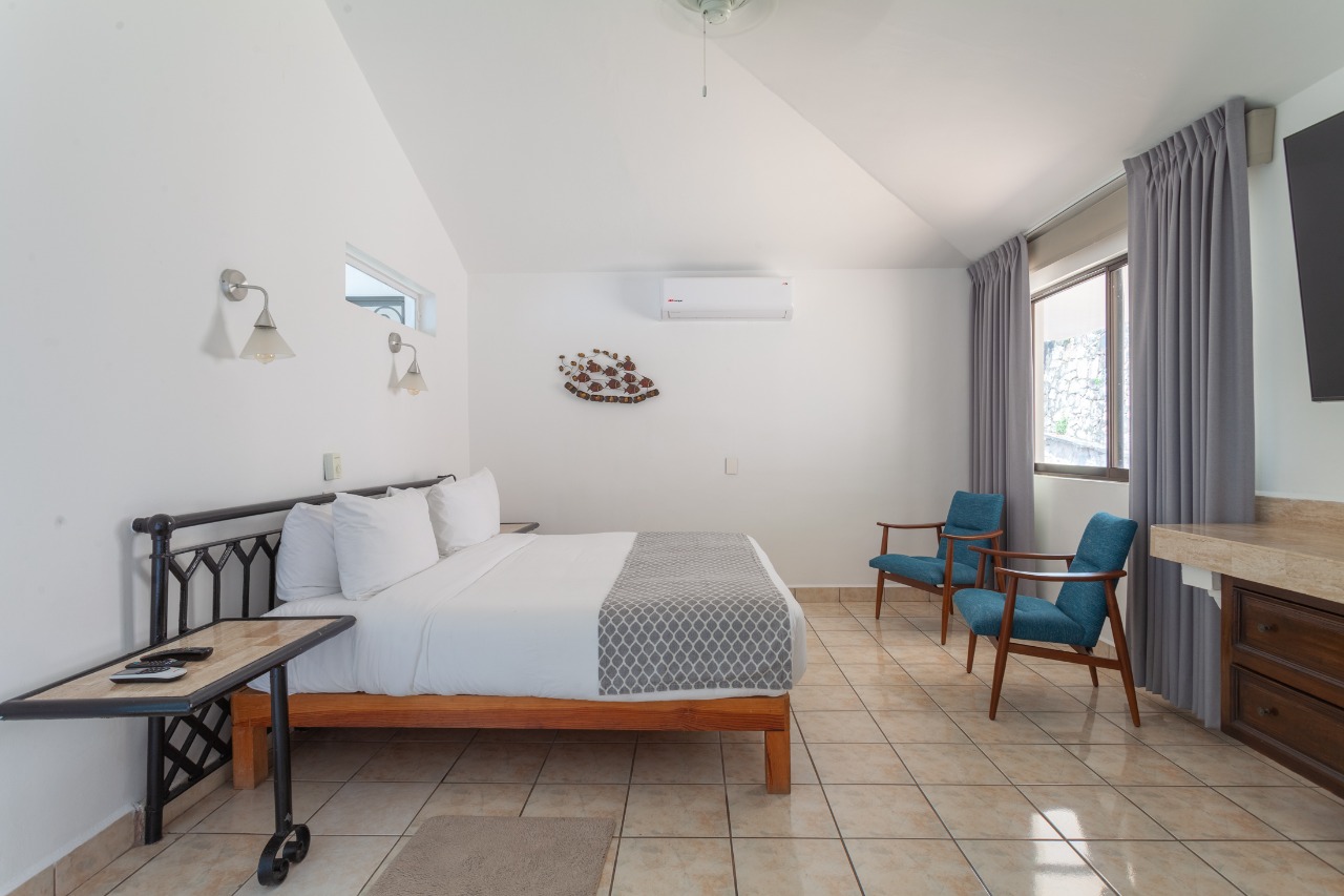 (upper level): King size bed, En-suite bathroom, Ceiling Fans, A/C, Safe