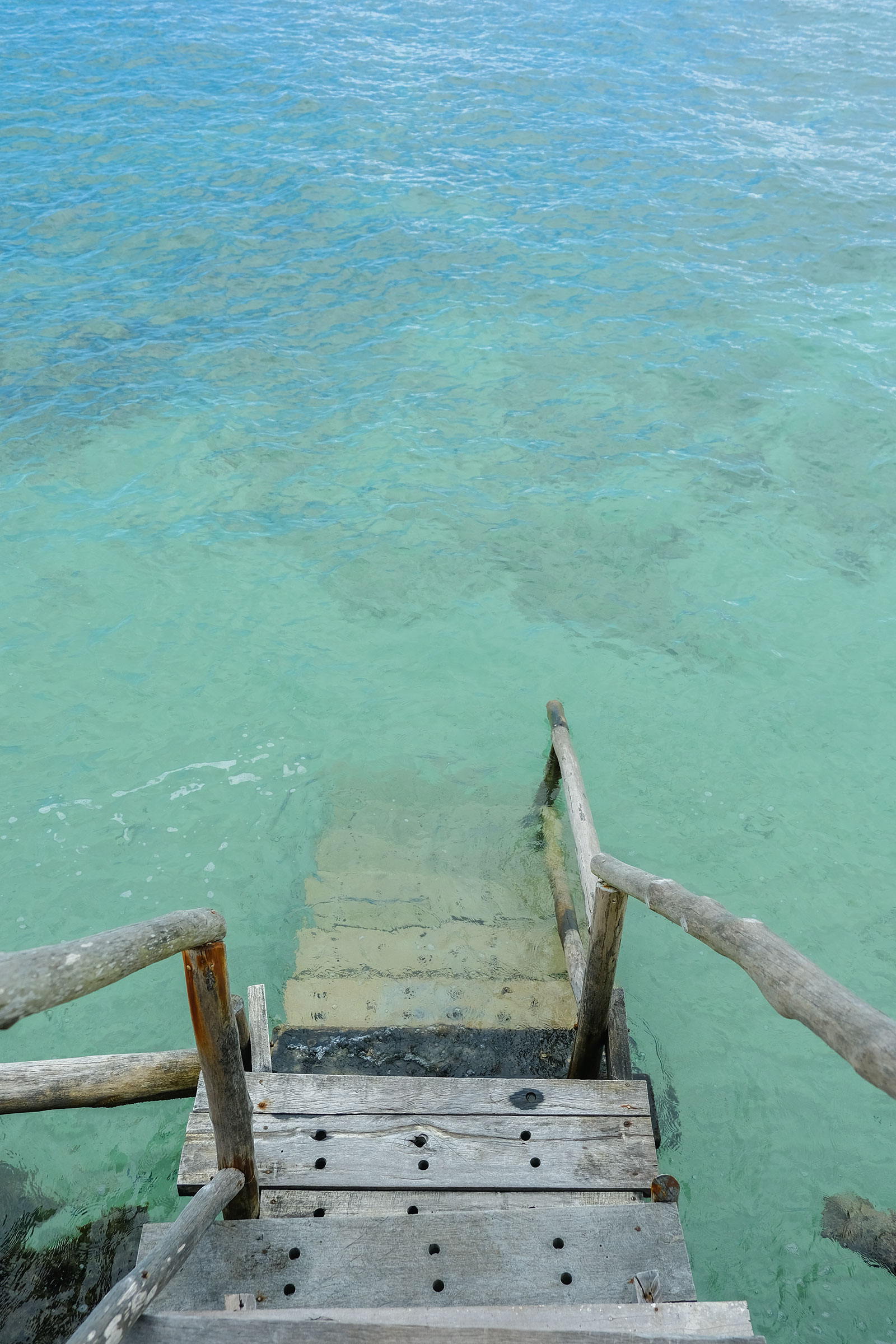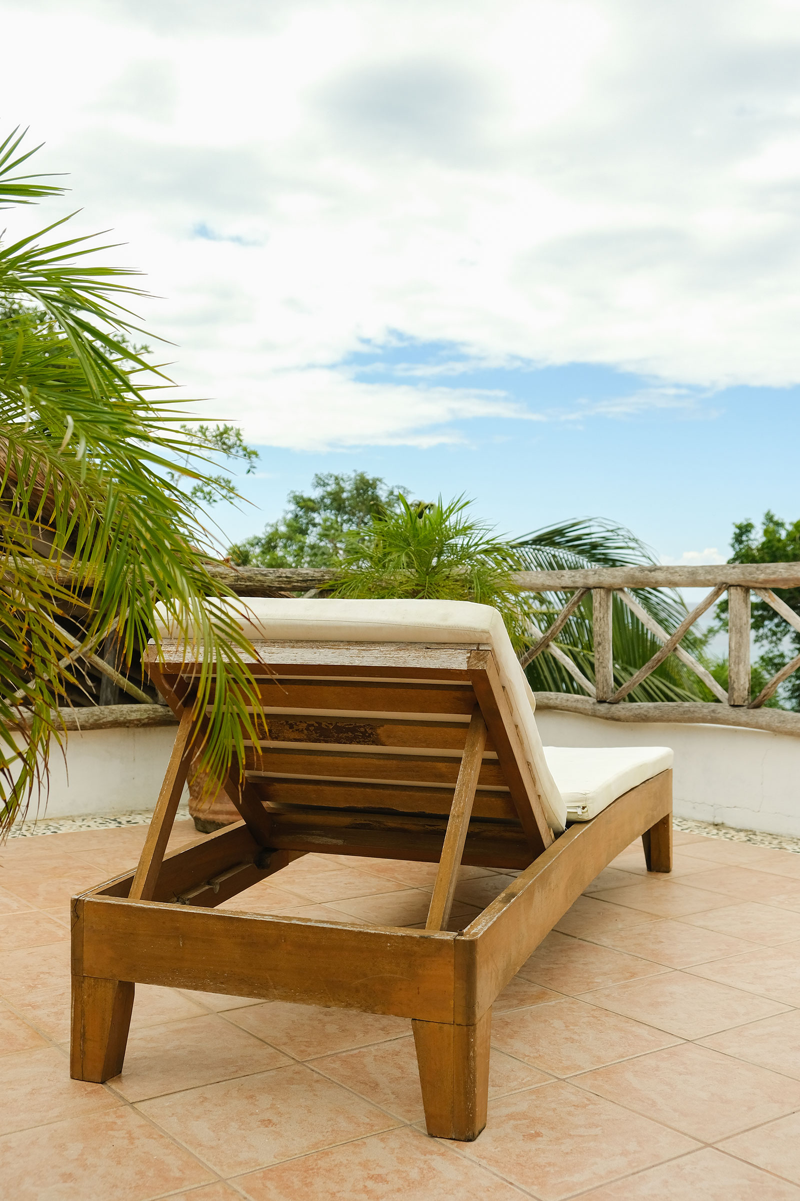 Daily life here naturally flows outdoors, where multiple terraces and lounging areas invite long, unhurried days by the sea. Two wooden decks set on the rocky coast provide direct access to the water via short ladders, leading into a shallow, sandy-bottomed area suited to snorkeling. In the lush backyard, a 32-foot swimming pool and a handmade hot tub by the palapa create a casual focal point for gathering, while the rooftop garden, with its lounge chairs, offers an additional open-air space for unwinding.