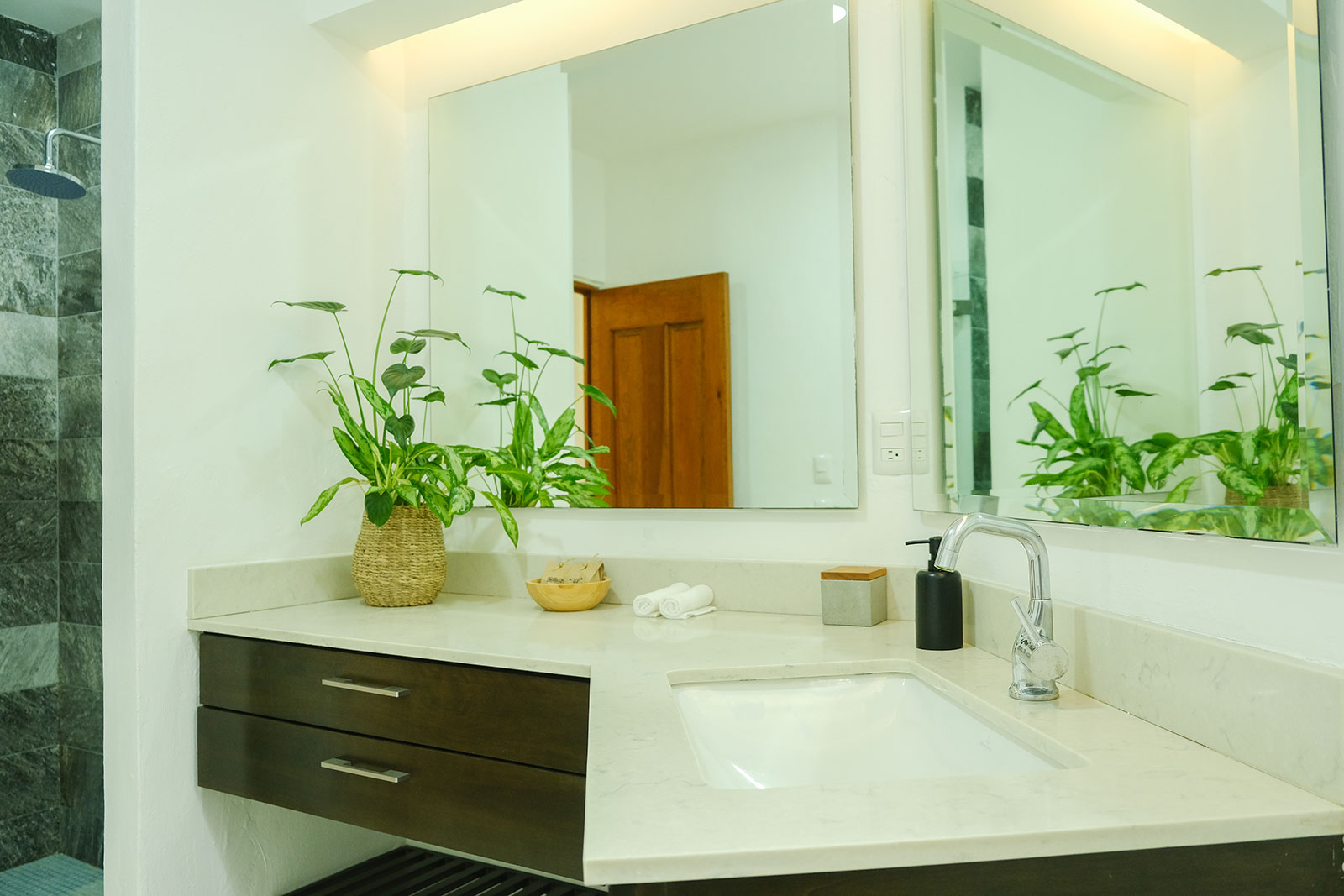 With capacity for up to 10 guests in five bedrooms, the home is well suited to shared stays where everyone still enjoys their own space. Each bedroom faces the ocean and includes an ensuite bathroom, offering a consistent level of comfort and privacy across the accommodation. Designer furnishings and thoughtful finishes give the suites an upscale yet relaxed personality that aligns with the villa’s overall feel.