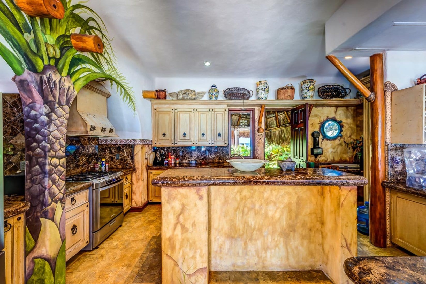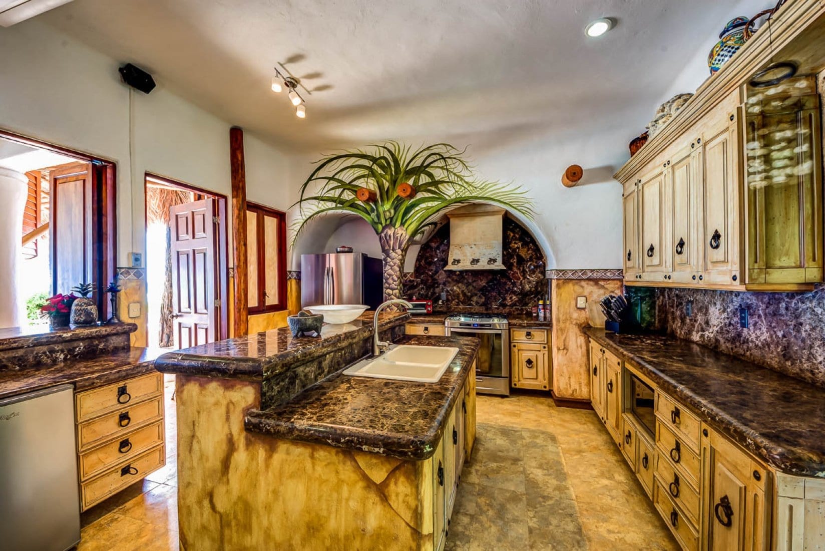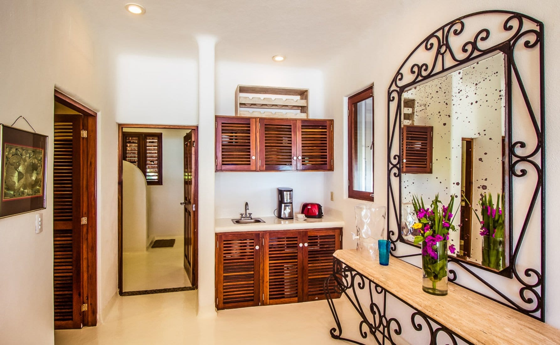Designed as a generous private estate, this luxury villa in the Mayan Riviera accommodates up to ten guests in five bedrooms, with spaces that are thoughtfully arranged for both togetherness and retreat. Several suites incorporate sitting areas and kitchenettes, allowing for added independence and comfort. Throughout, the architecture and interiors reflect a concept that blends modern amenities with organic touches, including handcrafted elements that echo the surrounding landscape.