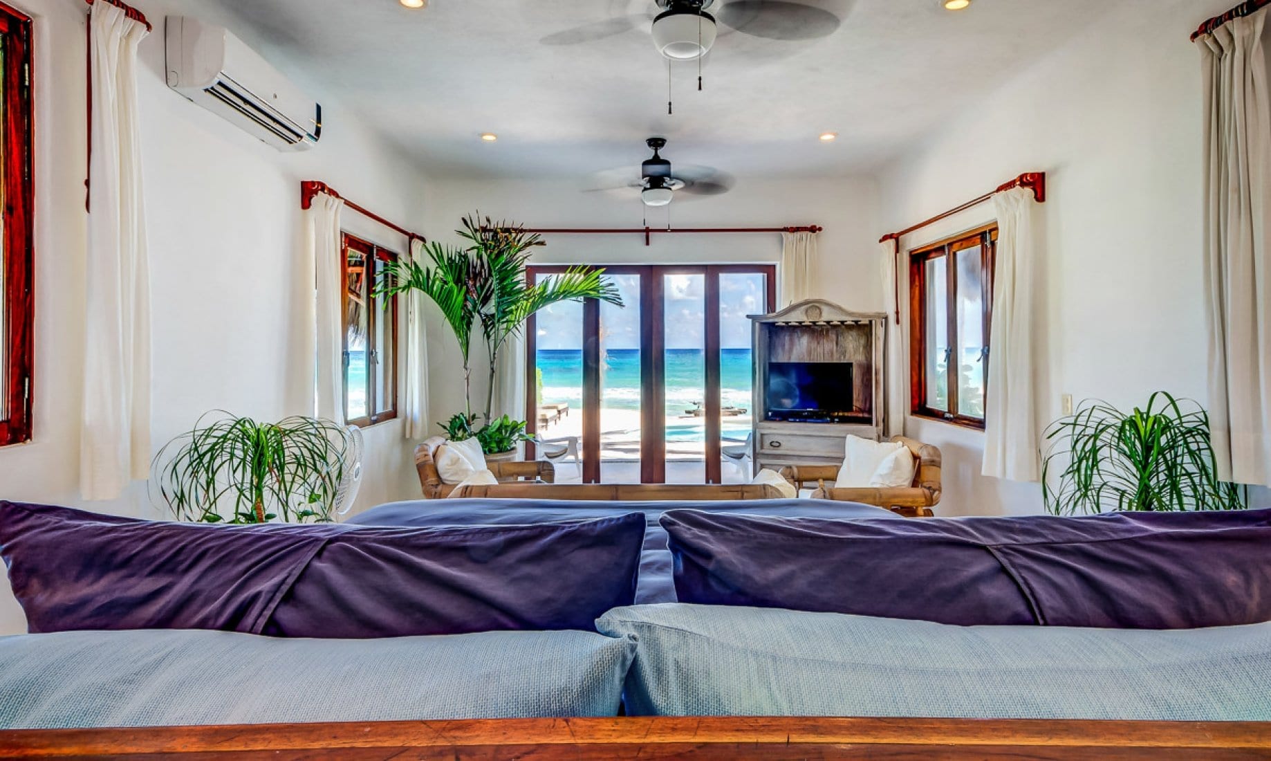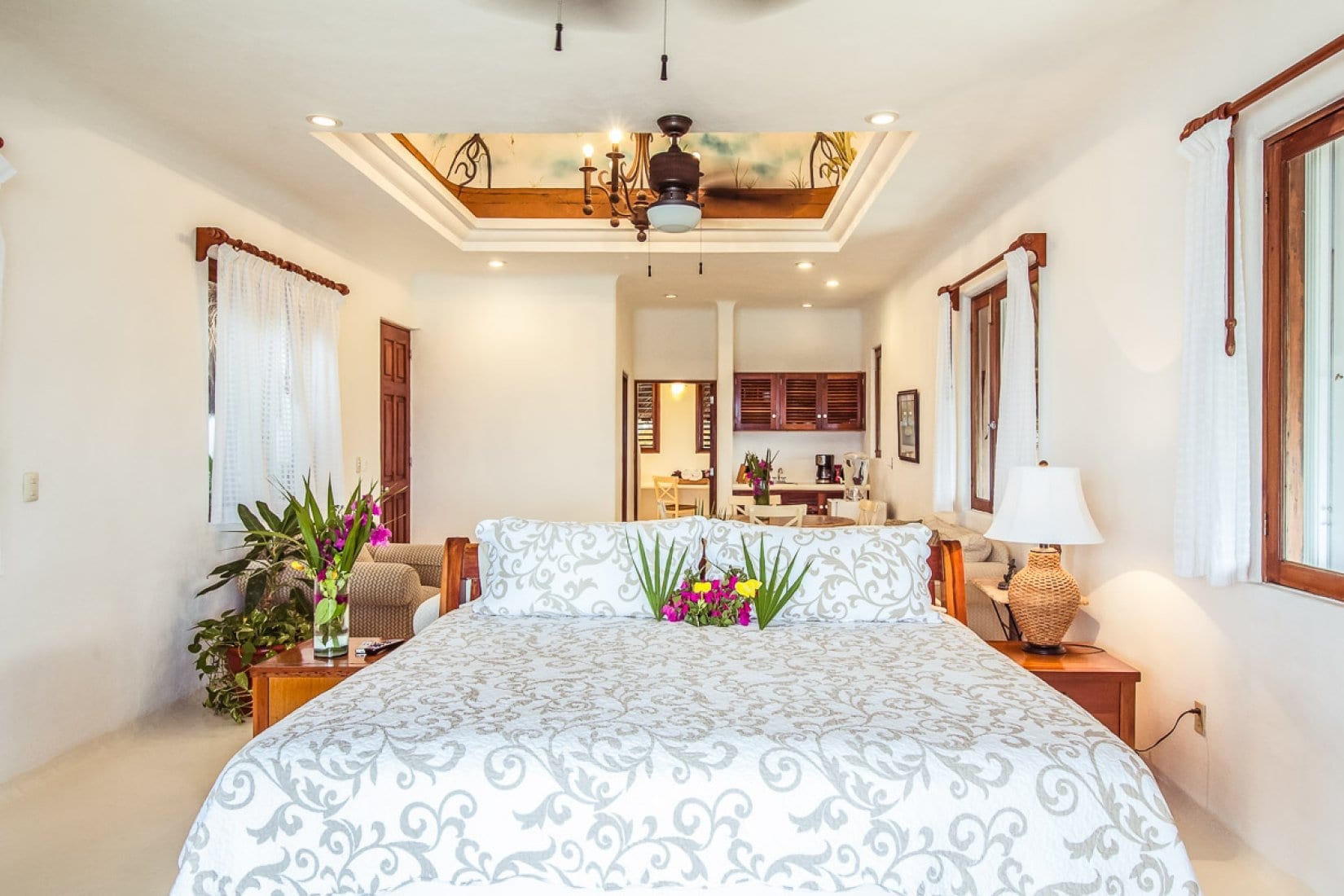 King size bed, Air conditioning, Ceiling fan, Coffee maker, Dual vanity, Jacuzzi, Kitchenette, Mini fridge, Ocean views with private terrace, Outdoor bed, Toaster, Toiletries, TV