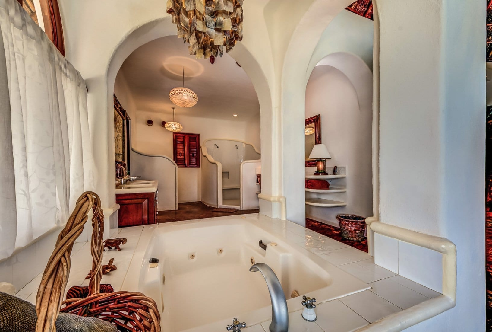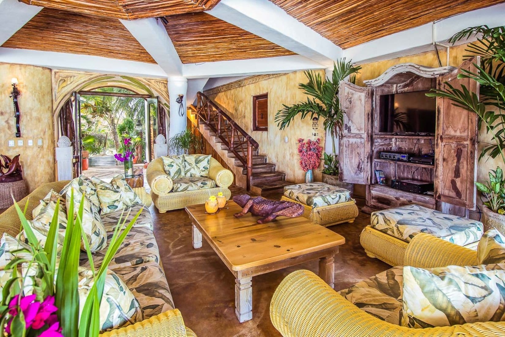 The villa’s setting on Playa del Secreto, or “Secret Beach,” places it within a carefully preserved residential enclave dedicated to maintaining an exclusive and immaculate coastline. White sand, turquoise water and lush jungle lagoon create a striking natural backdrop, with a sense of being tucked away from the everyday. The atmosphere is one of quiet seclusion, where the focus is on privacy, nature and the gentle cadence of a low-key beach community.