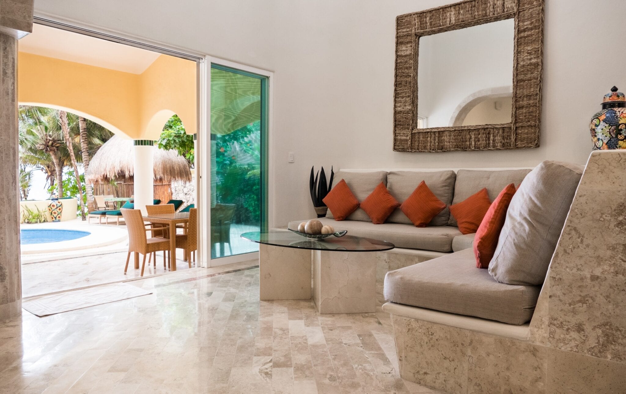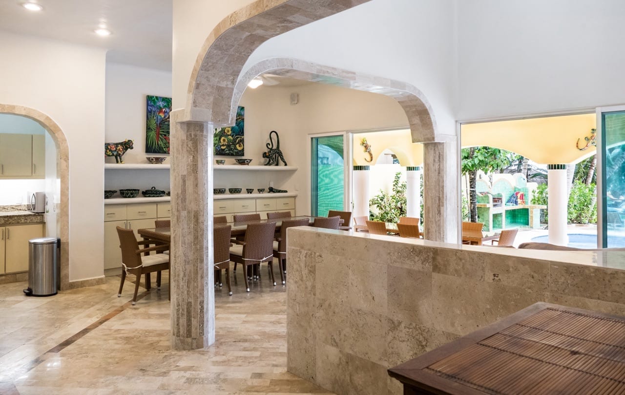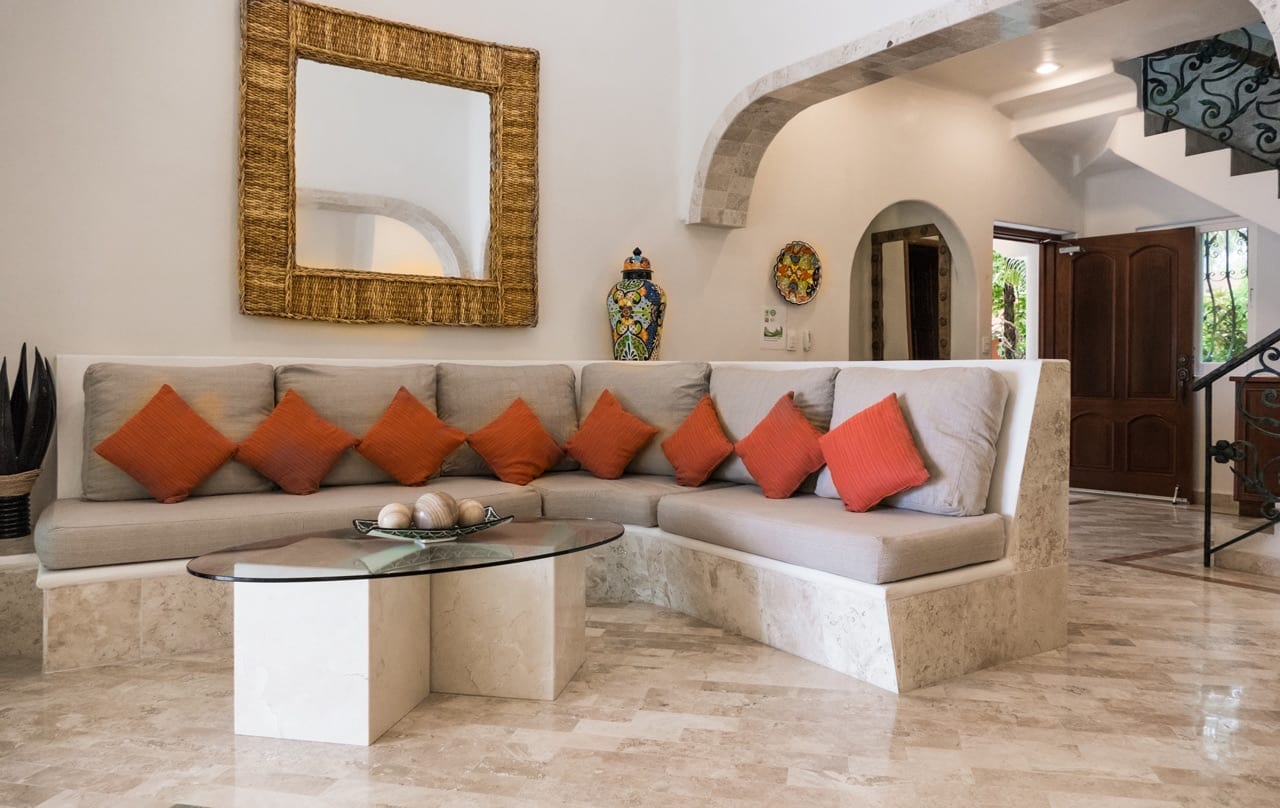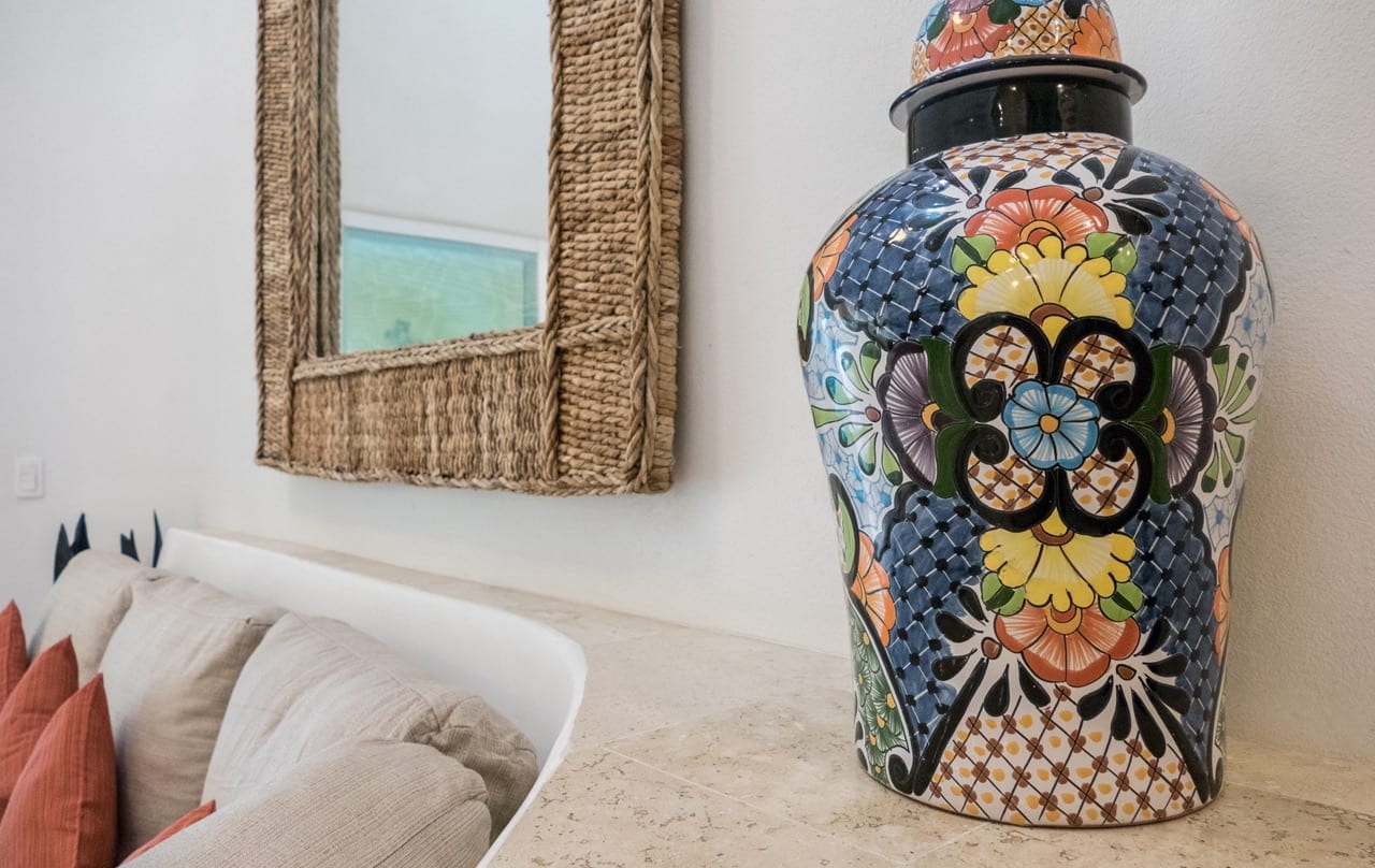 Villa Iguana’s interiors are thoughtfully designed to blend contemporary comforts with authentic Mexican style, creating a warm and inviting atmosphere.