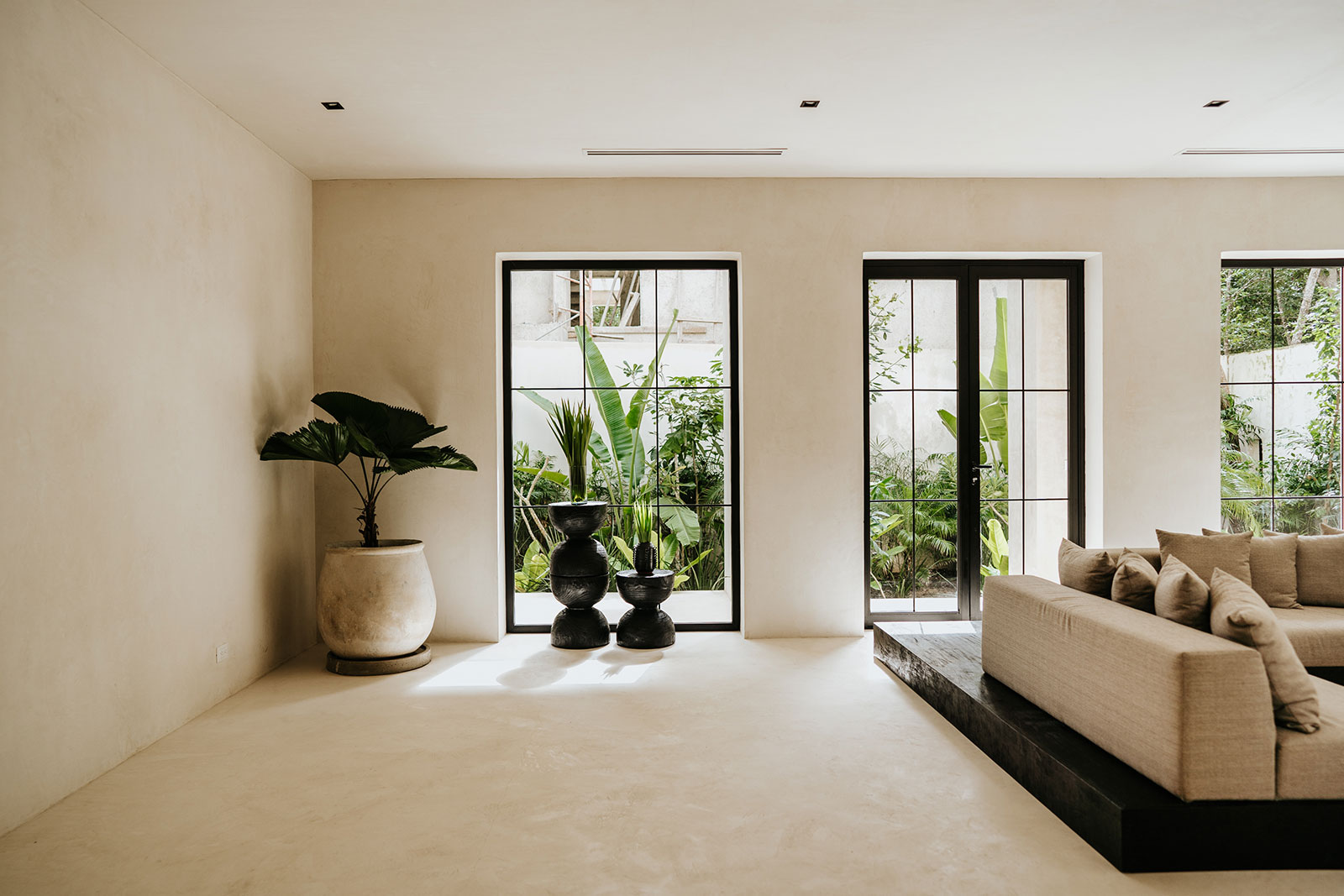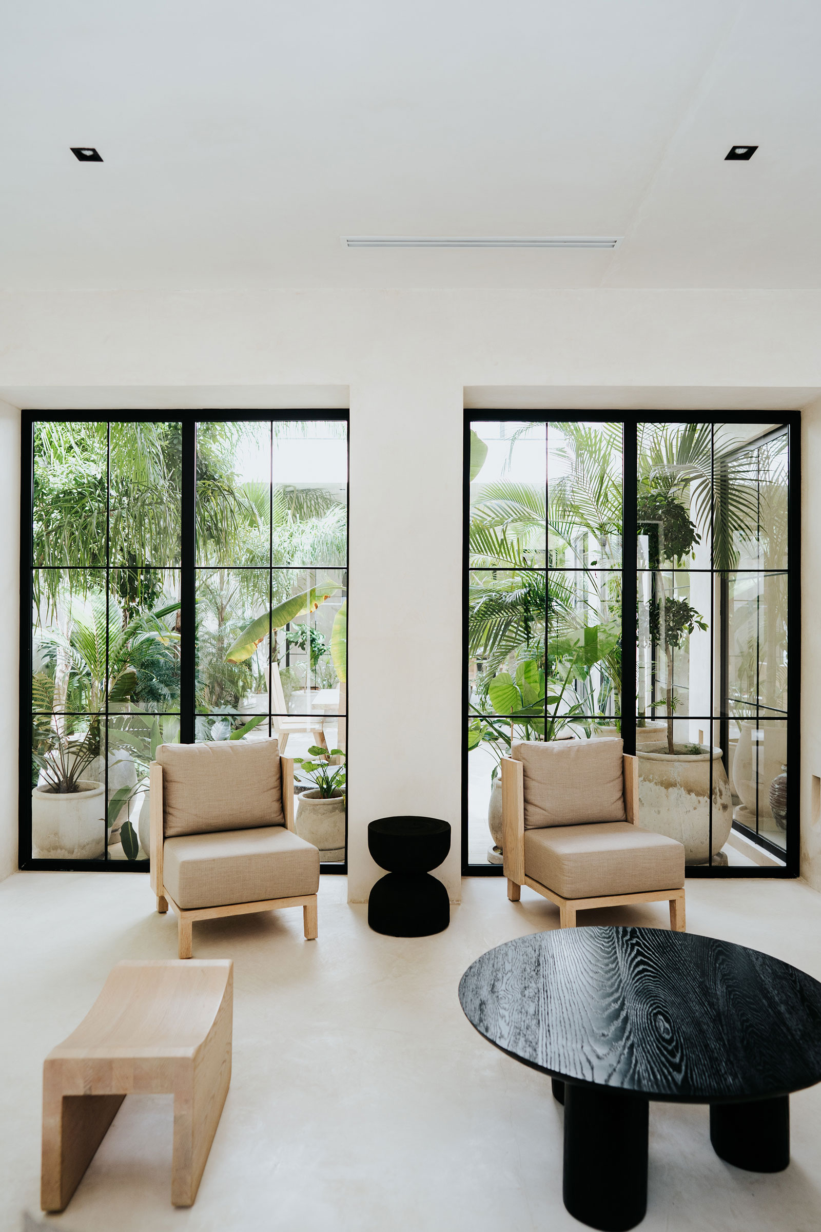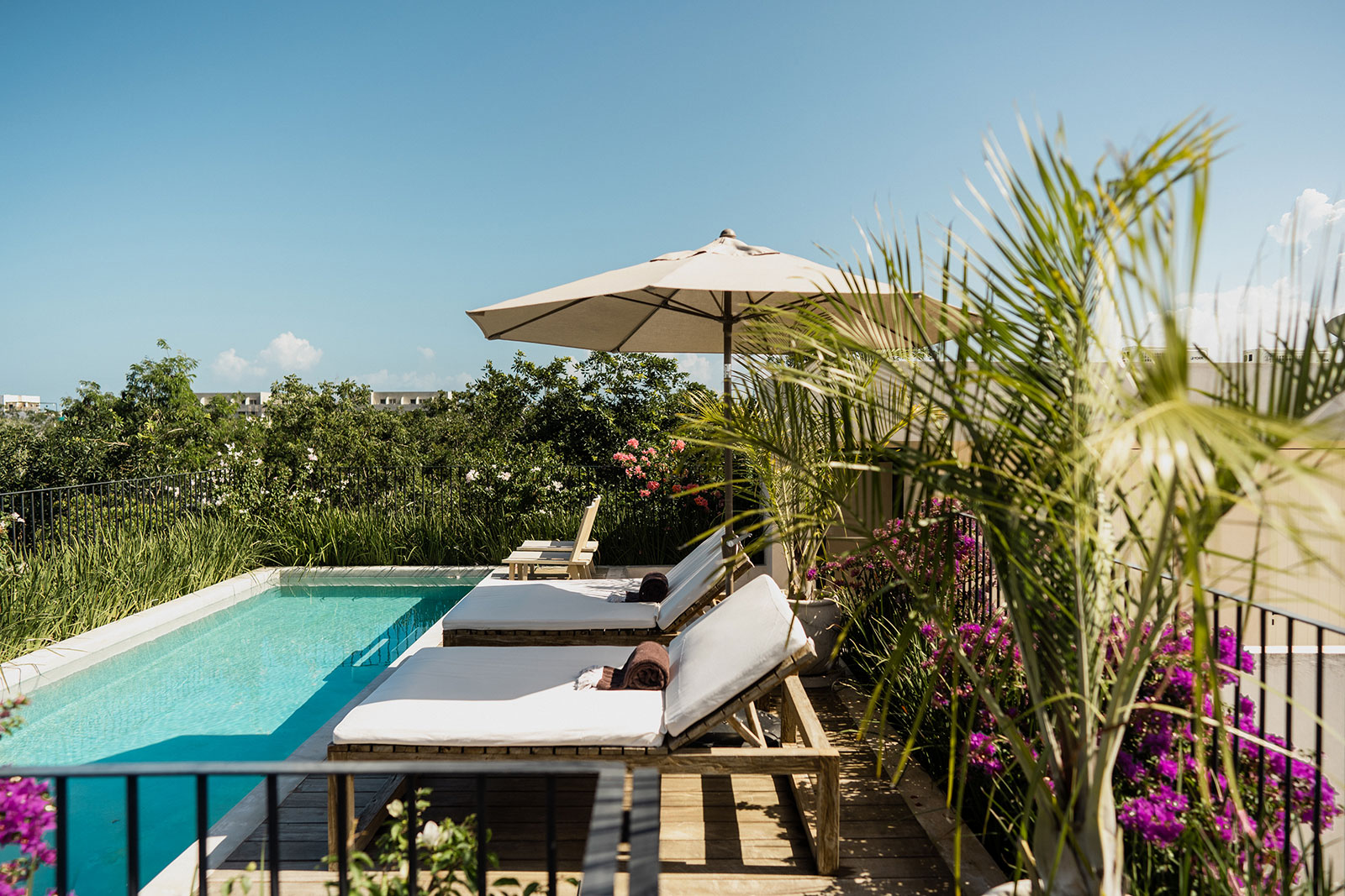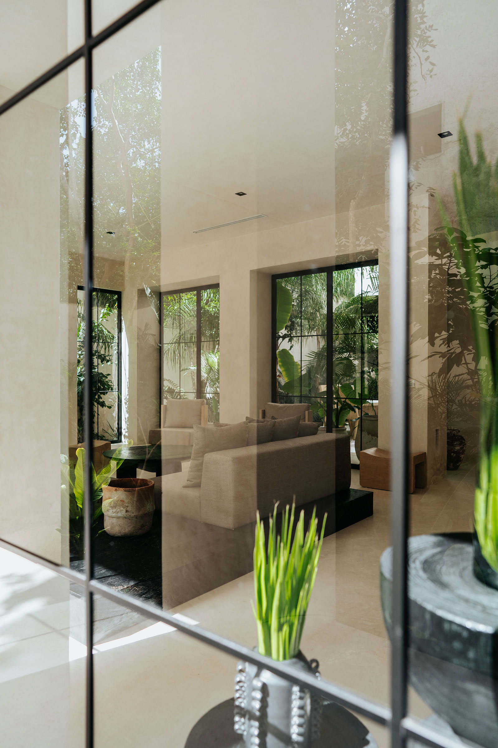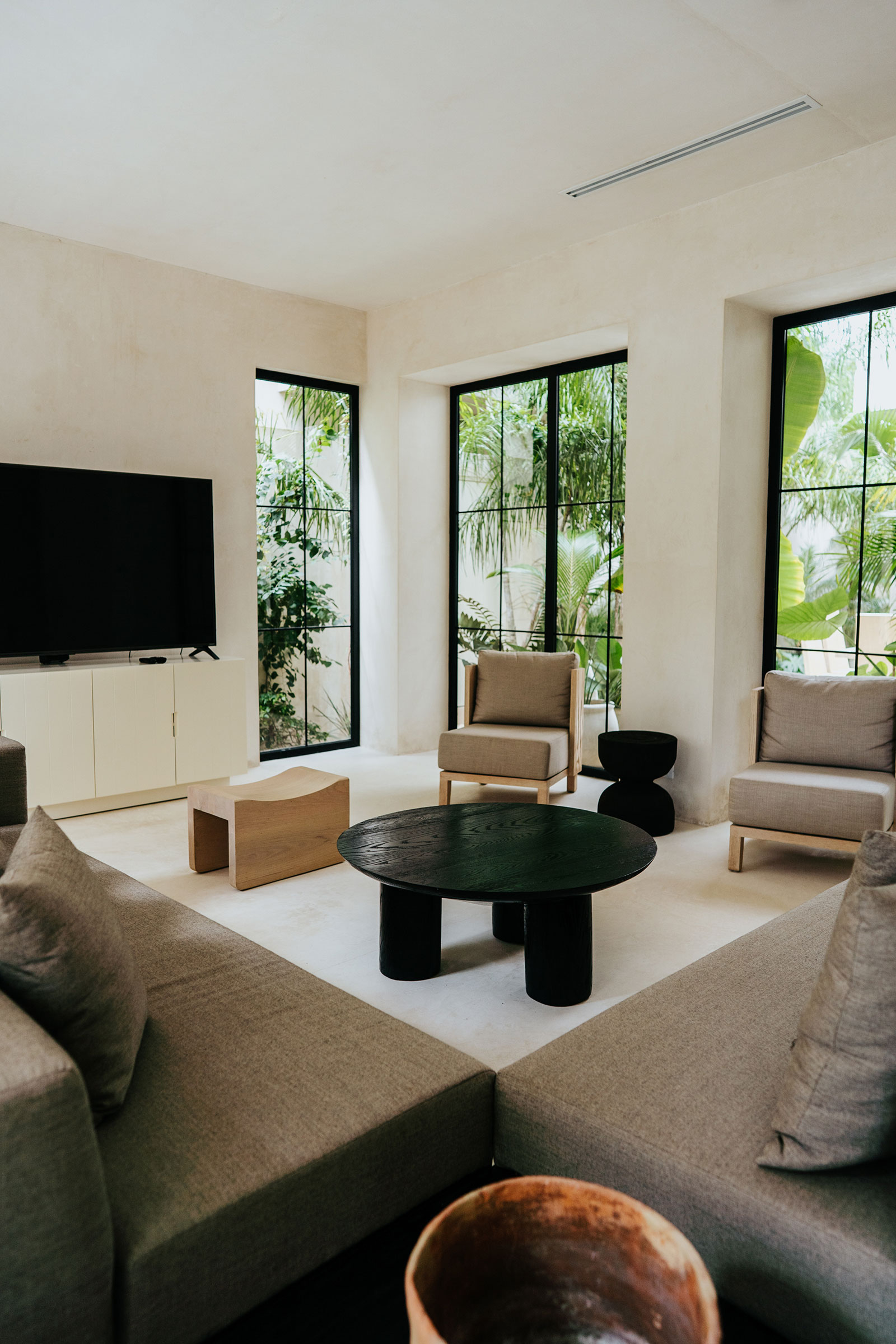Set within La Privada, an exclusive gated community in the upscale Aldea Zama neighborhood, the villa sits in a discreet enclave that balances privacy with access to Tulum’s energy. The surroundings are defined by curated landscaping and endemic vegetation, creating a sense of being immersed in a tropical environment while remaining within a refined residential context. This combination of seclusion and neighborhood sophistication underpins the calm, residential character of the stay.