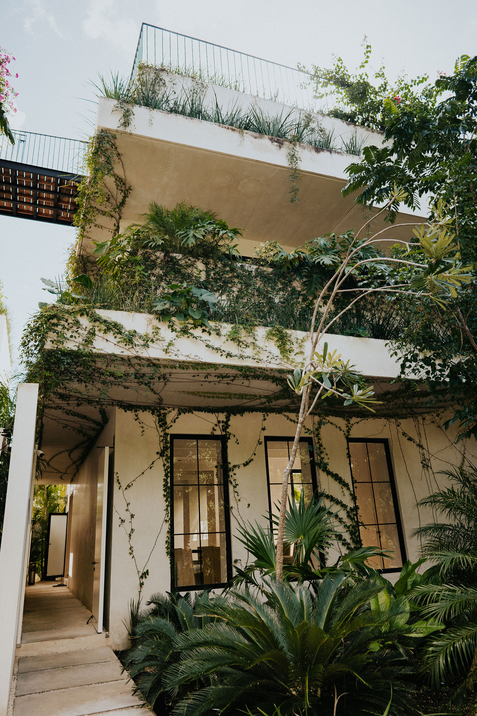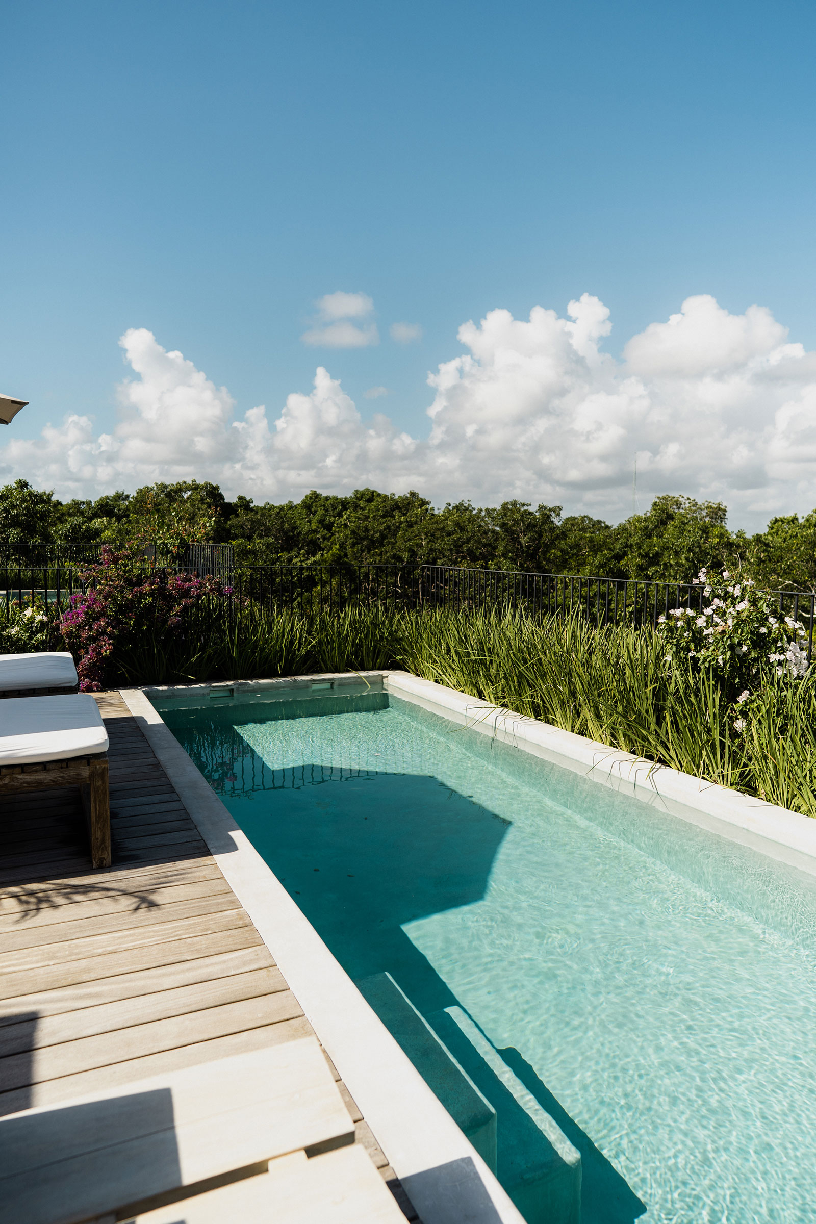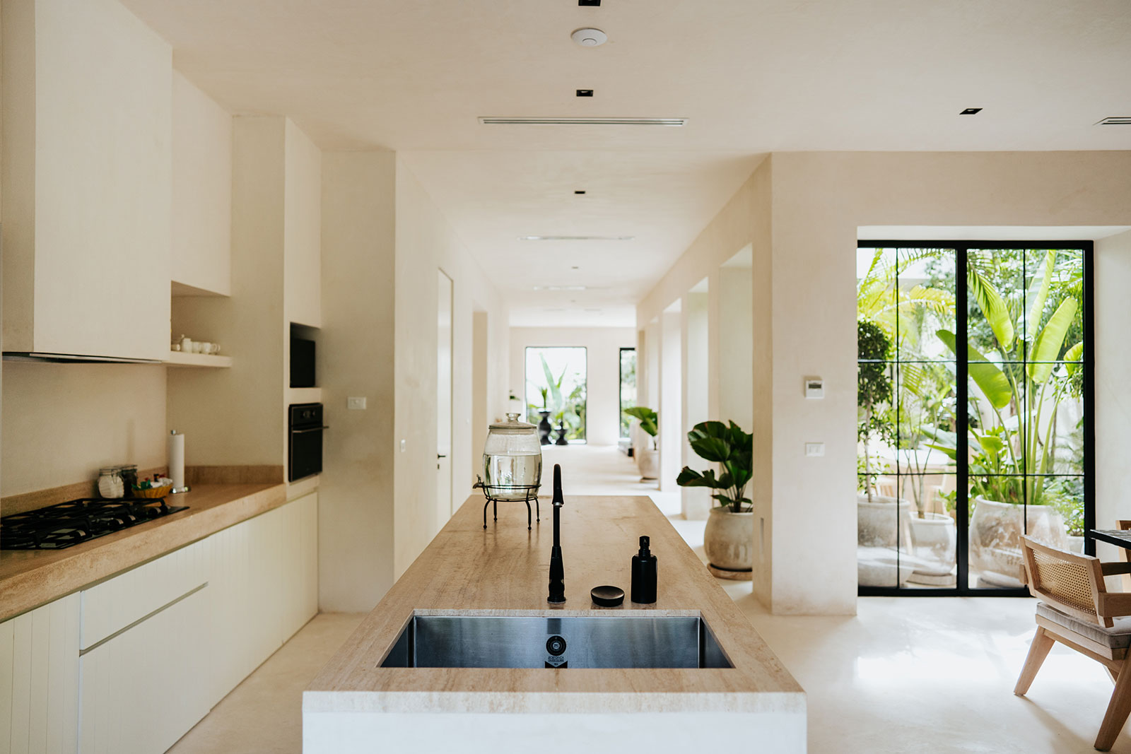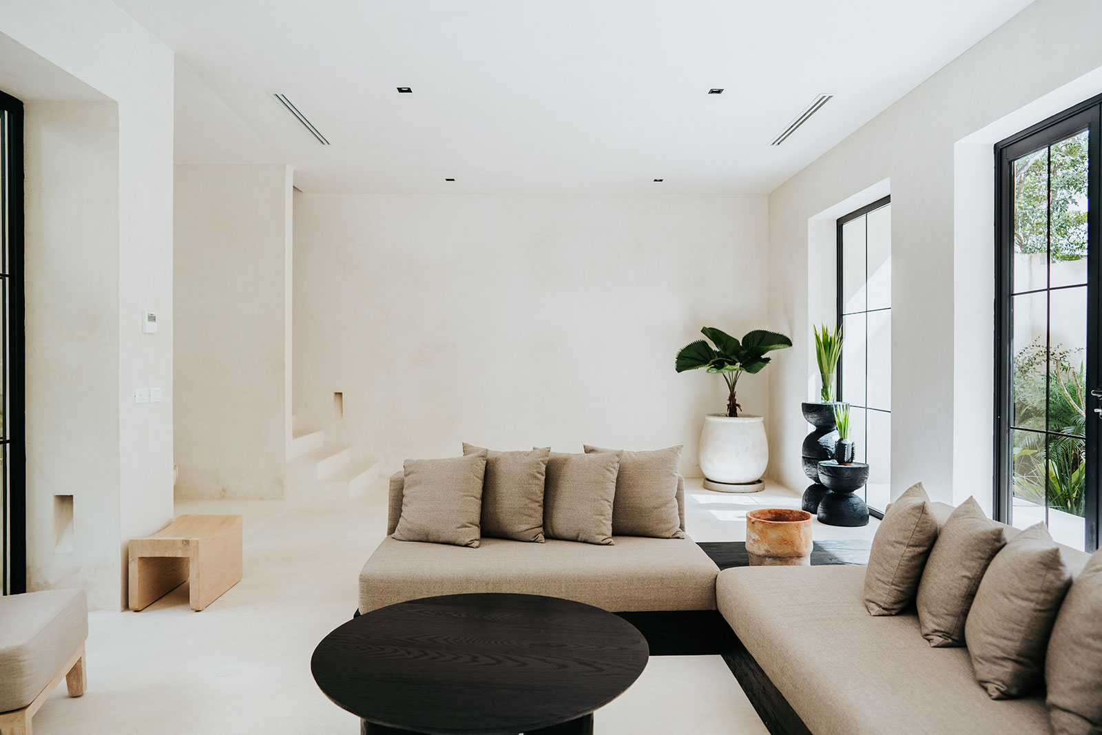 Set within La Privada, an exclusive gated community in the upscale Aldea Zama neighborhood, the villa sits in a discreet enclave that balances privacy with access to Tulum’s energy. The surroundings are defined by curated landscaping and endemic vegetation, creating a sense of being immersed in a tropical environment while remaining within a refined residential context. This combination of seclusion and neighborhood sophistication underpins the calm, residential character of the stay.