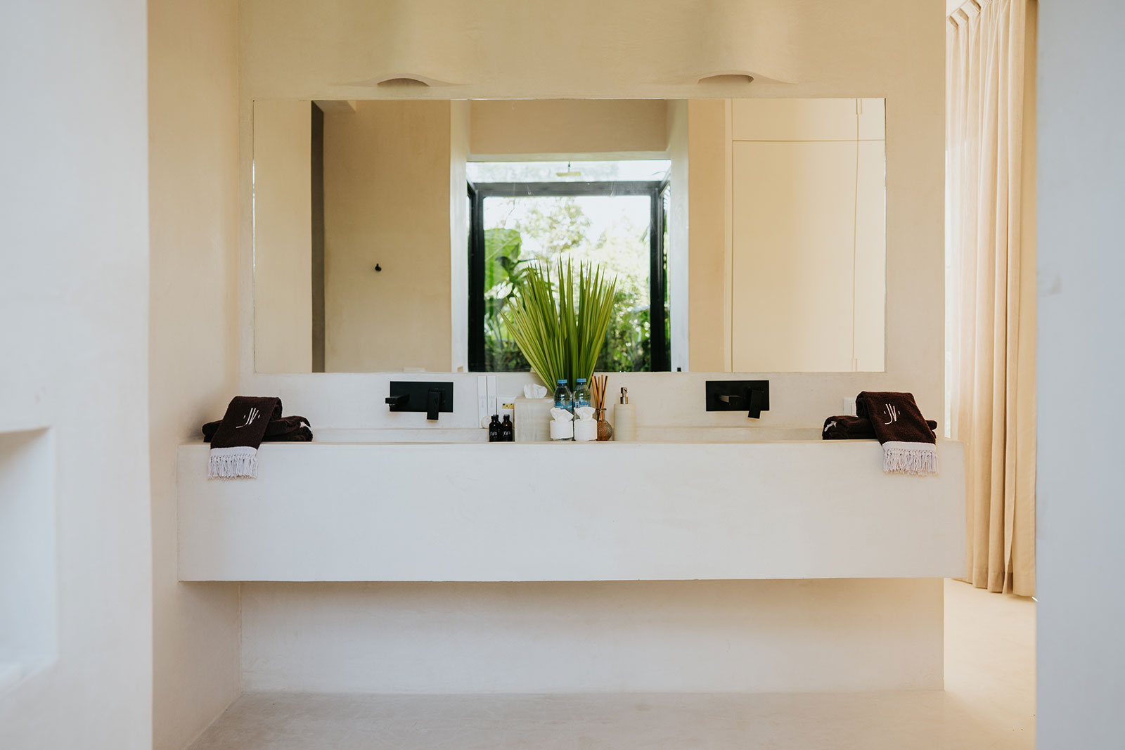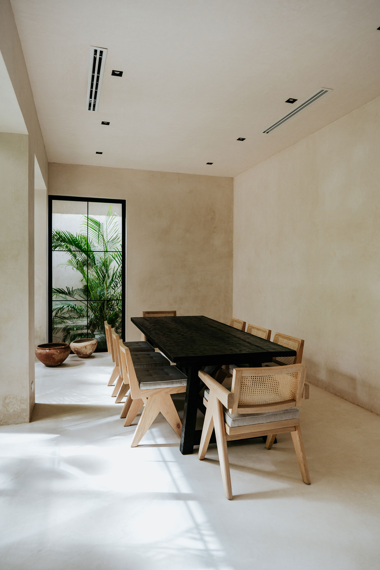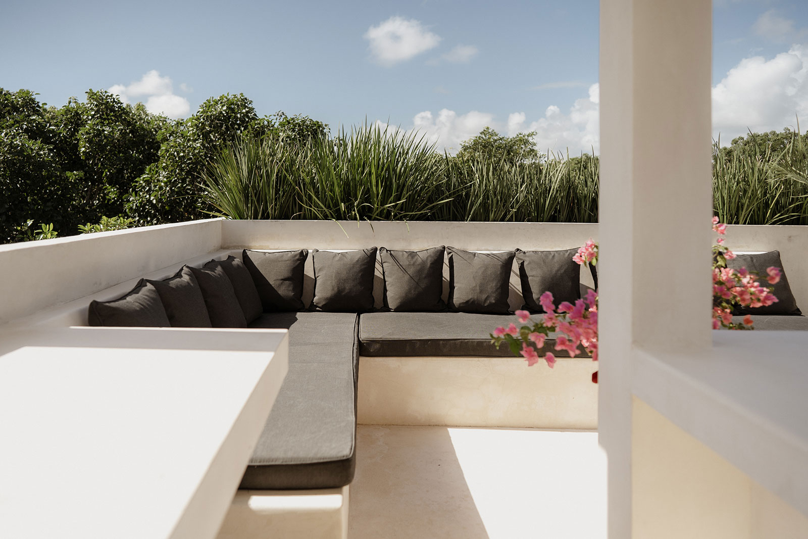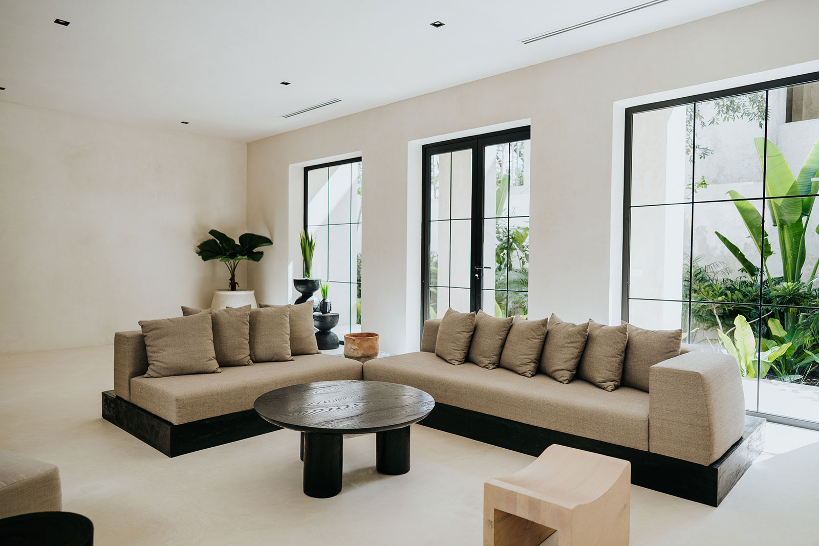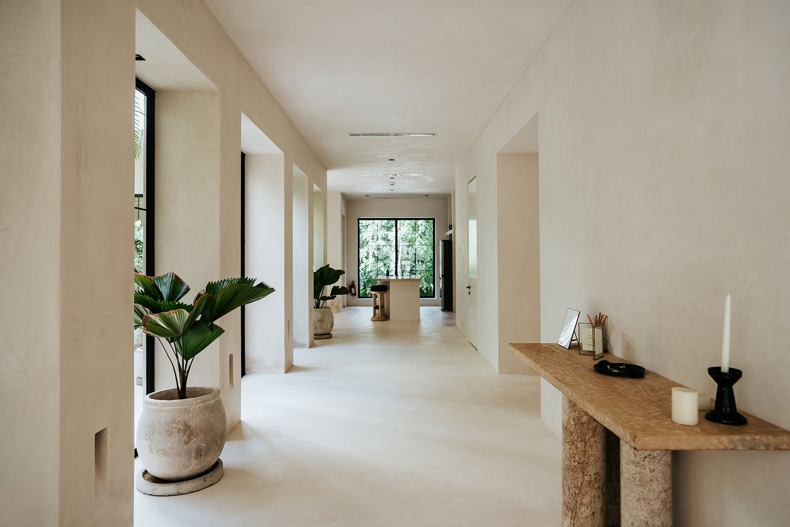 Set within La Privada, an exclusive gated community in the upscale Aldea Zama neighborhood, the villa sits in a discreet enclave that balances privacy with access to Tulum’s energy. The surroundings are defined by curated landscaping and endemic vegetation, creating a sense of being immersed in a tropical environment while remaining within a refined residential context. This combination of seclusion and neighborhood sophistication underpins the calm, residential character of the stay.