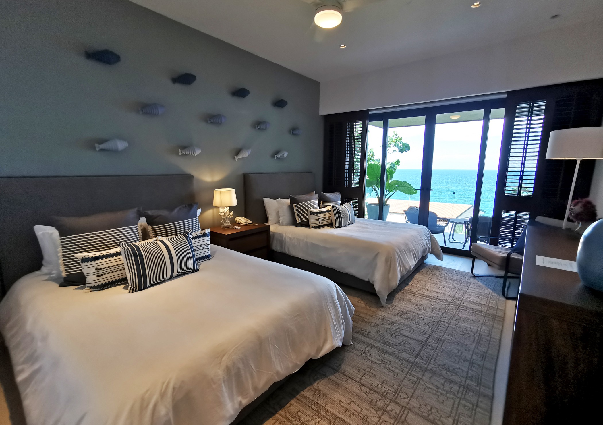 Bedroom 2: 2 Double-size beds, En-suite bathroom, Ocean view