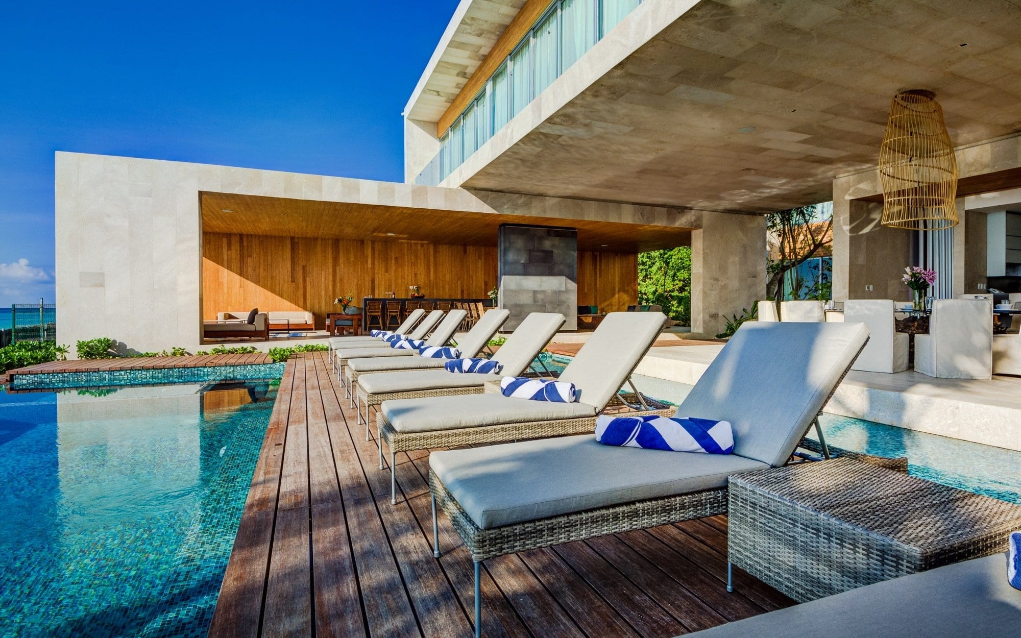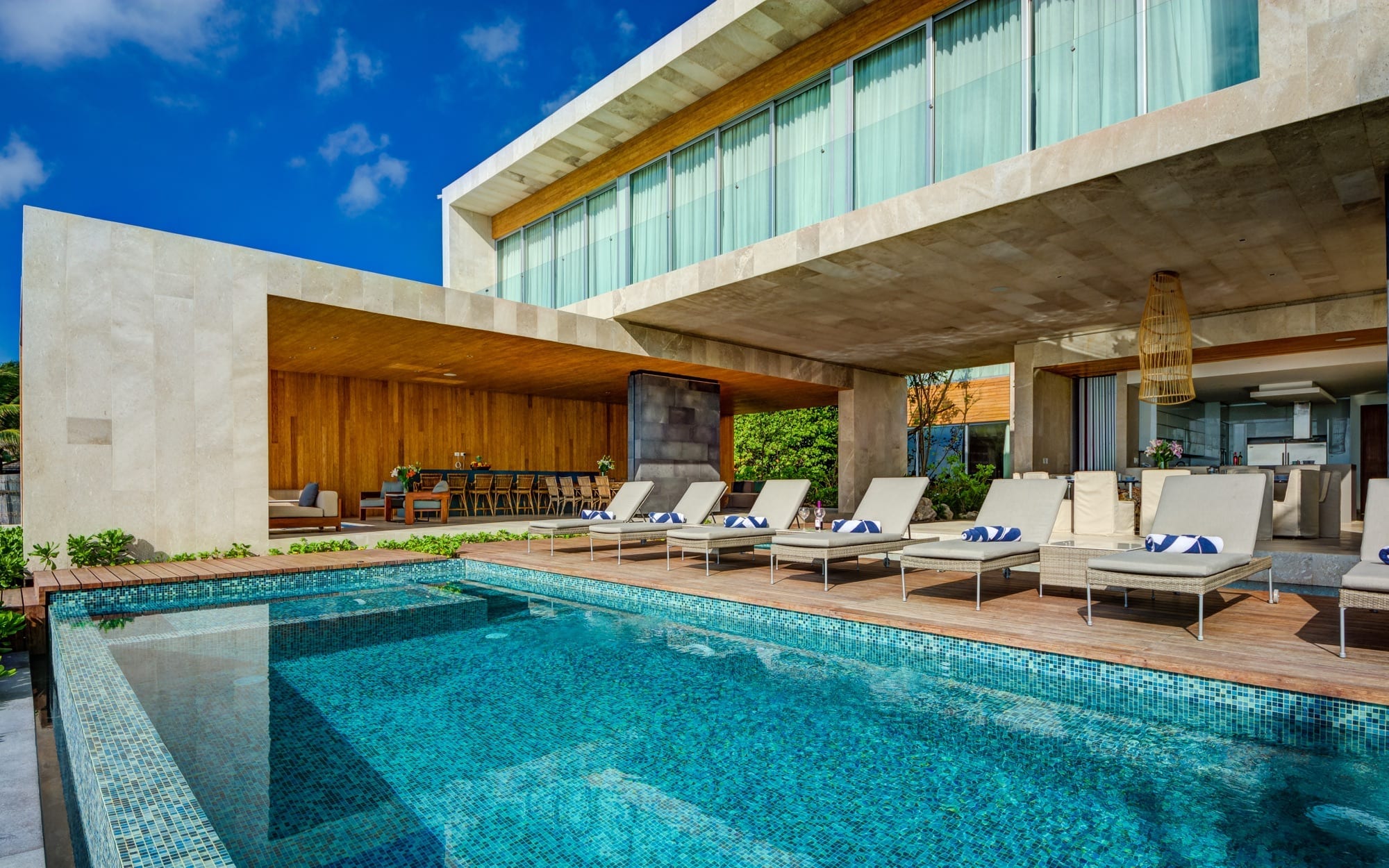 Part of the Villa Experience curated collection, Villa Kin Ich introduces a contemporary beachfront retreat in Playa del Carmen with a distinctly refined, coastal character. Architecturally dramatic yet relaxed in spirit, it blends clean modern lines with Mexican-inspired spaces to create a private villa oasis. This is a home designed for guests who value both style and ease, where the Caribbean setting and thoughtful interiors work together to frame an unhurried stay.