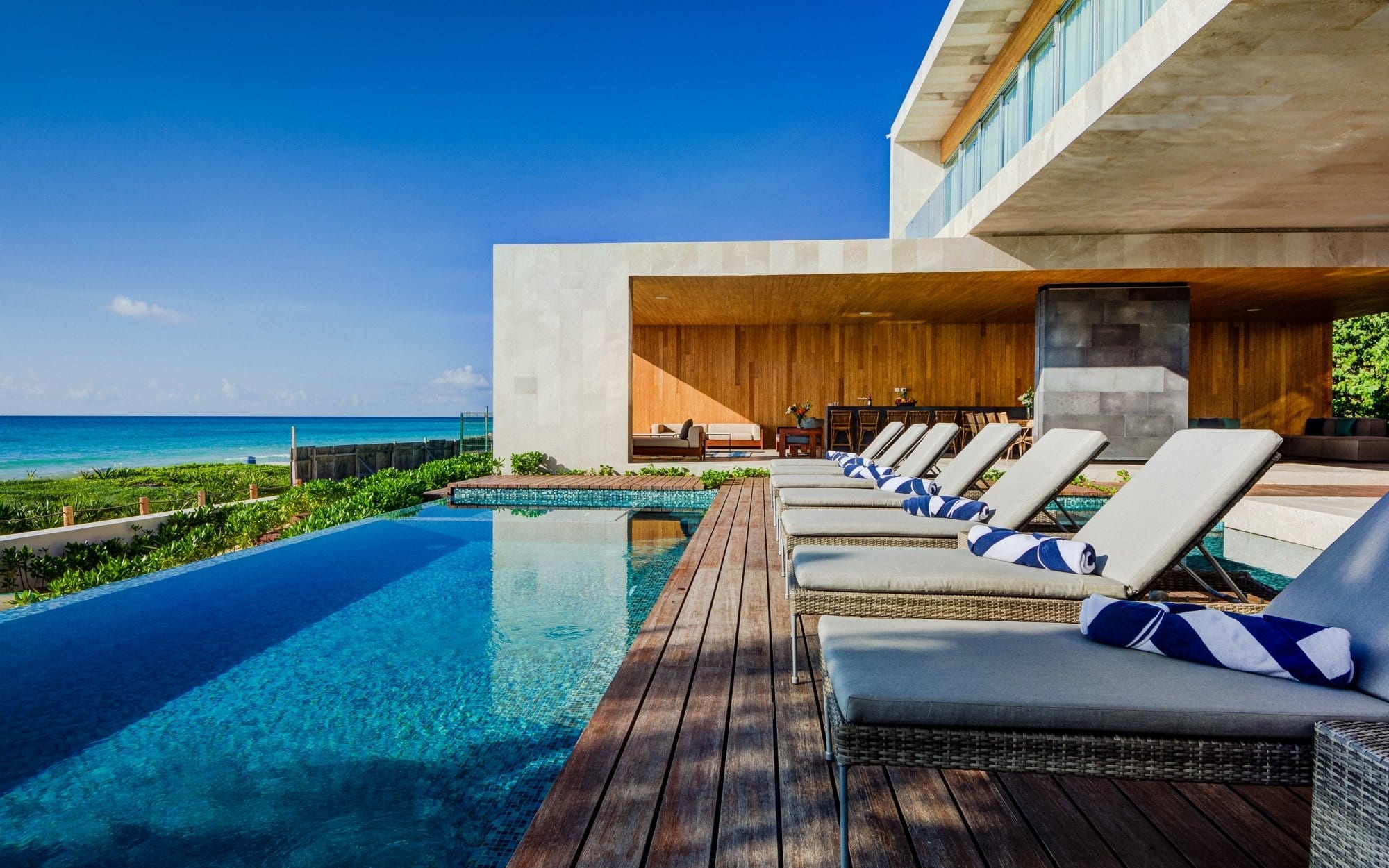Within the Villa Experience portfolio, this home stands out for its combination of beachfront setting and proximity to Playa’s famed 5th Avenue, placing dining, boutiques, and nightlife within convenient reach while preserving the sanctuary of a private residence. Daily chef and butler services underscore the serviced-villa concept, allowing guests to enjoy a tailored culinary experience without leaving home. It is a considered, fully serviced stay, shaped for travelers who appreciate curated comfort and seamless support throughout their time on the Riviera Maya.