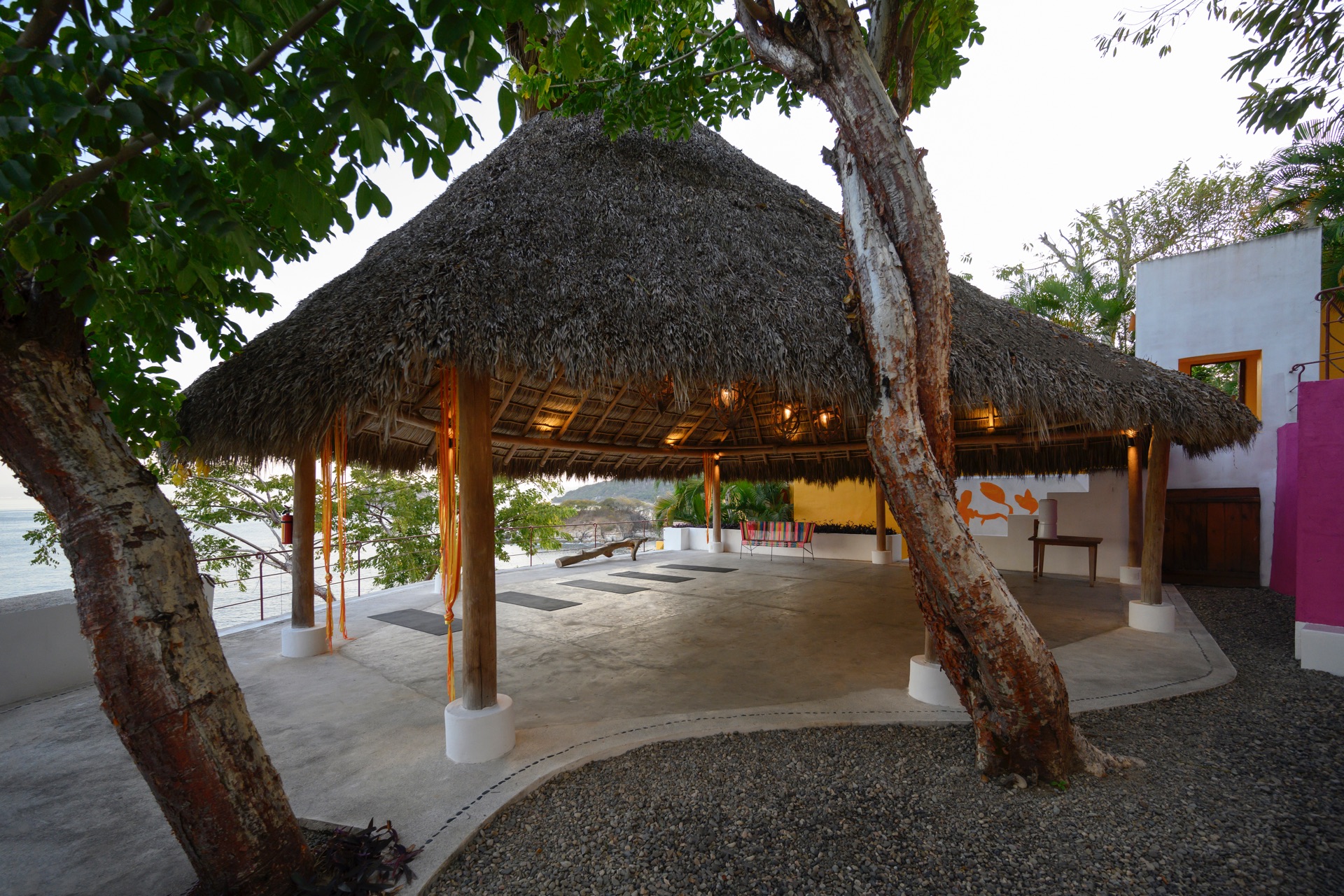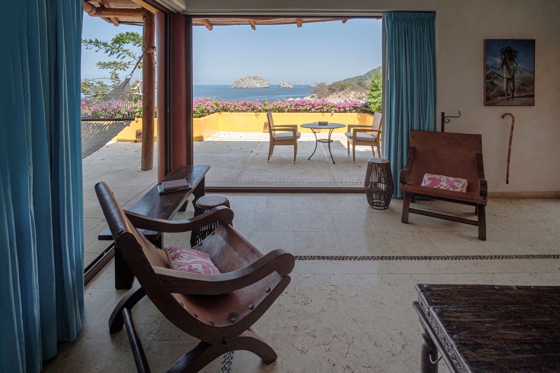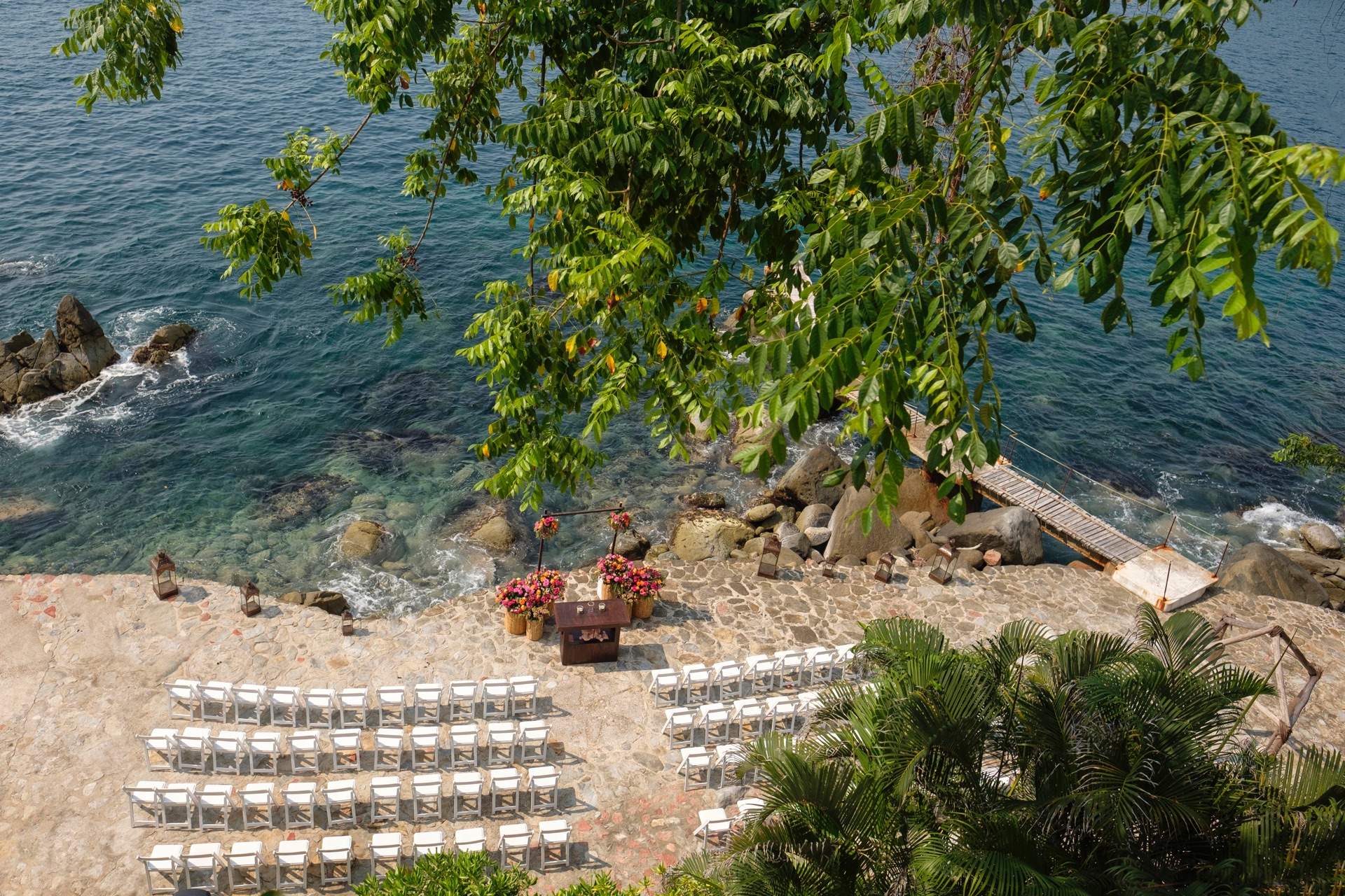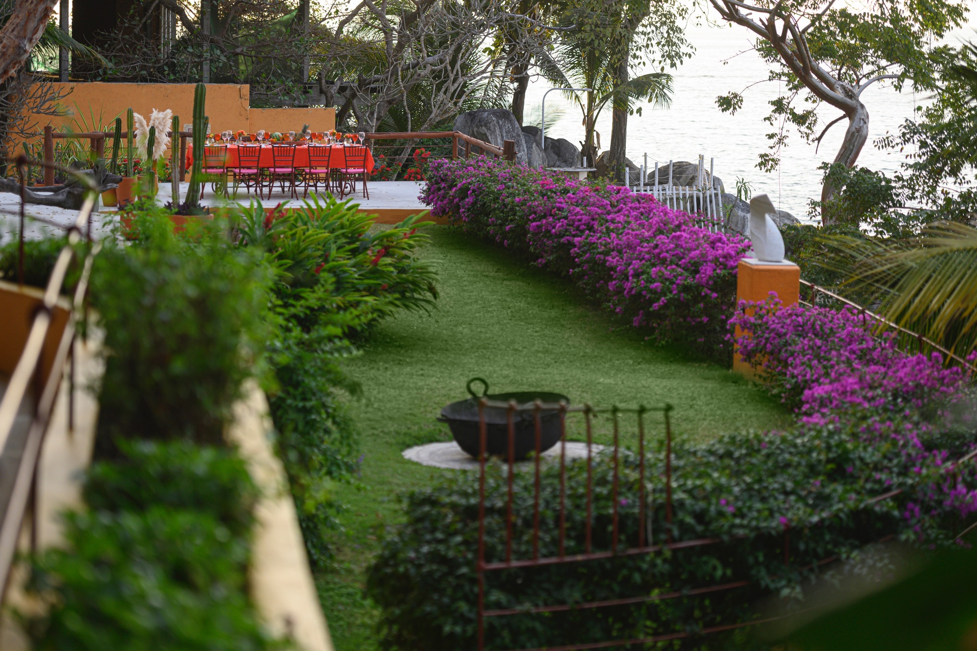 The villa is set along the city’s exclusive south shore, just past Mismaloya Beach, in an environment defined by greenery, water, and a strong sense of seclusion. Outdoor areas are oriented around the coastline, with terraces, gardens, and a private pier shaping the connection to the sea. The atmosphere is that of a private compound, with distinct zones for quiet relaxation, socializing, and events, all framed by the natural landscape.