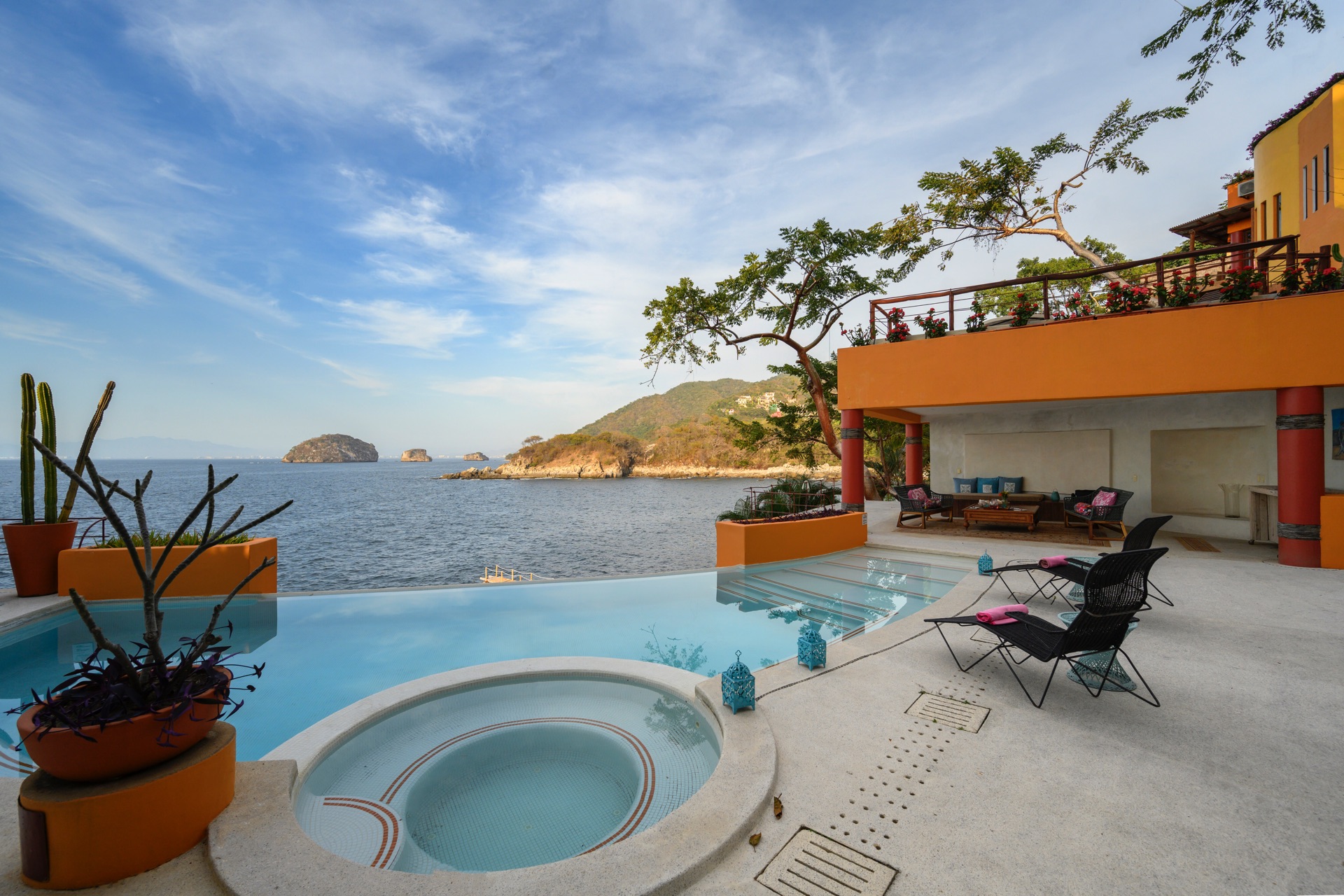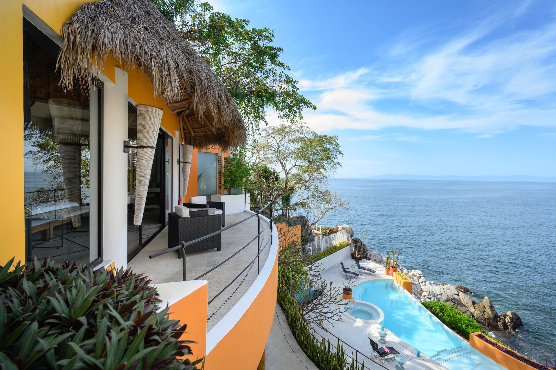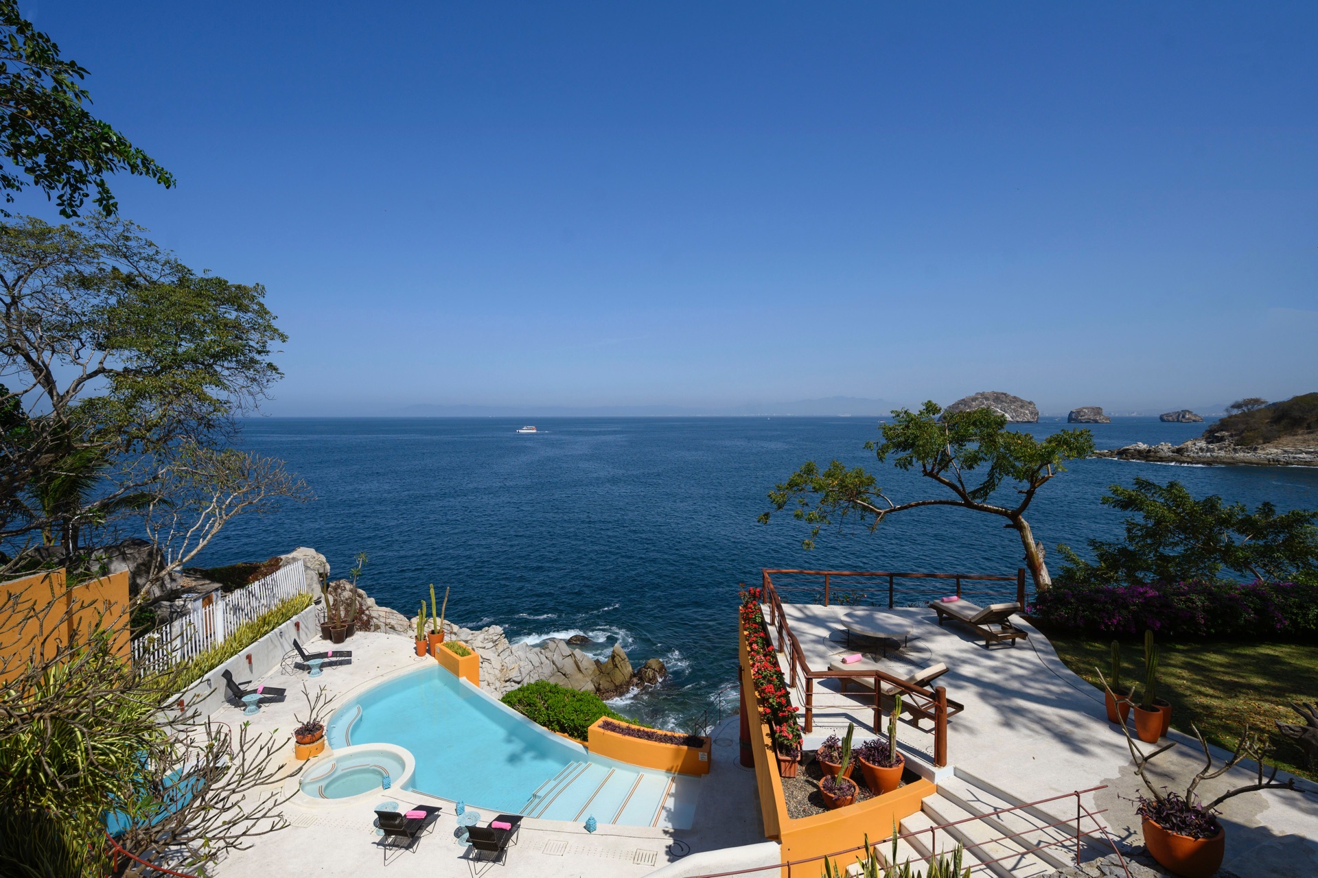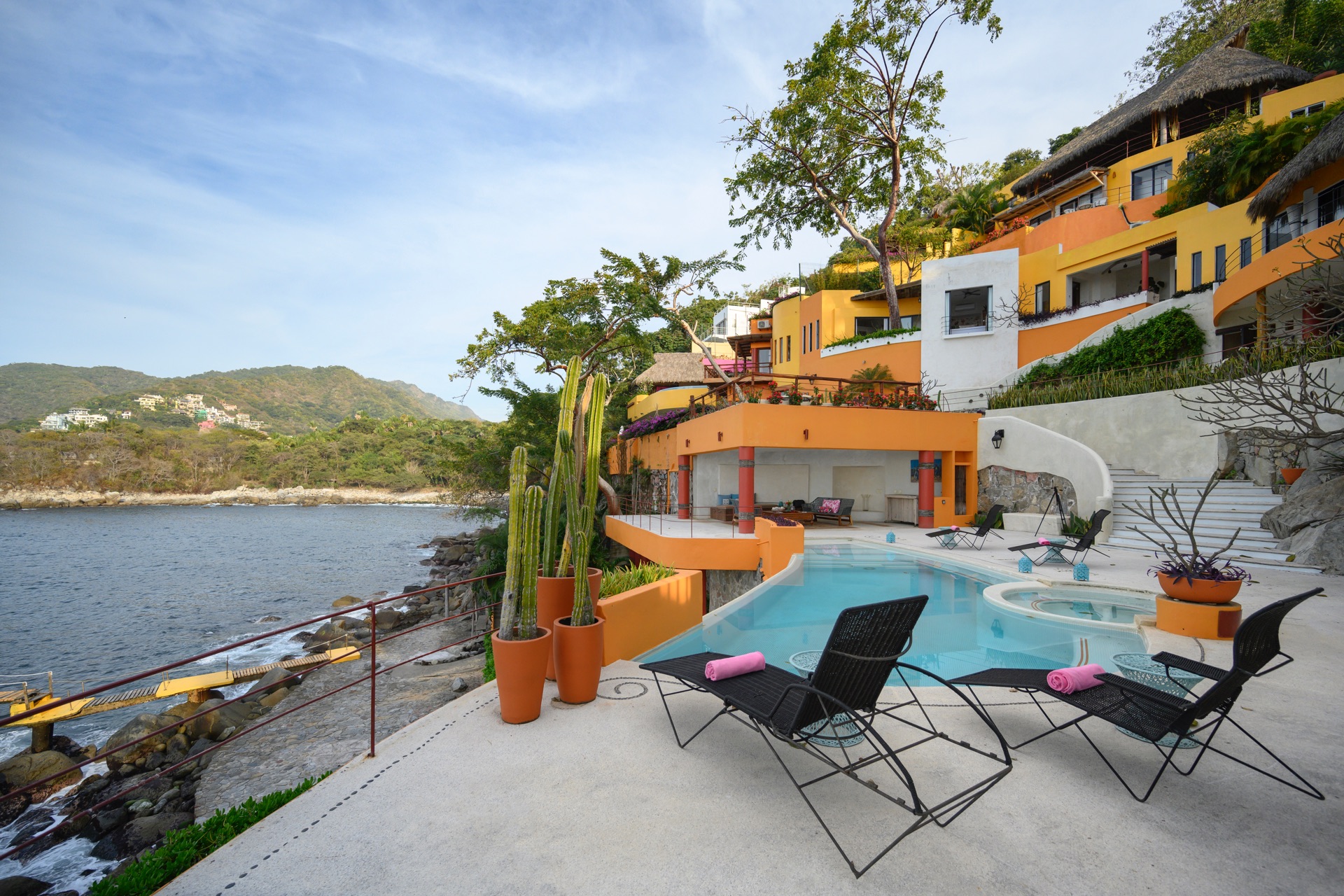 As part of the Villa Experience collection, Villa Mandarinas introduces a substantial, fully serviced private estate in Puerto Vallarta, designed for guests who value space, privacy, and attentive hospitality. This oceanfront property combines lush tropical surroundings with a thoughtful service structure, creating a setting that works equally well for relaxed family time, executive gatherings, and larger celebrations. The overall character is that of a self-contained retreat, where daily logistics are handled discreetly in the background.