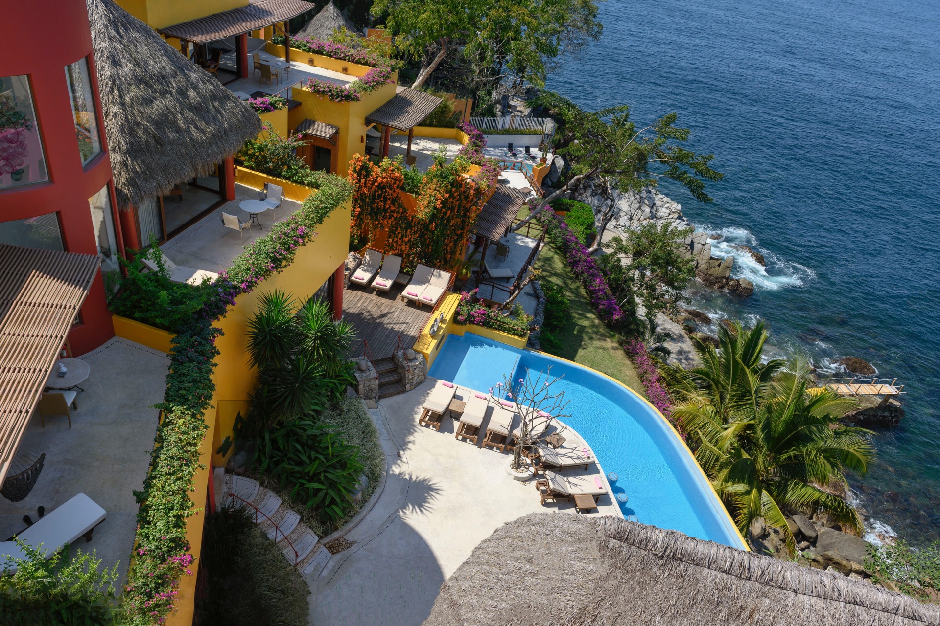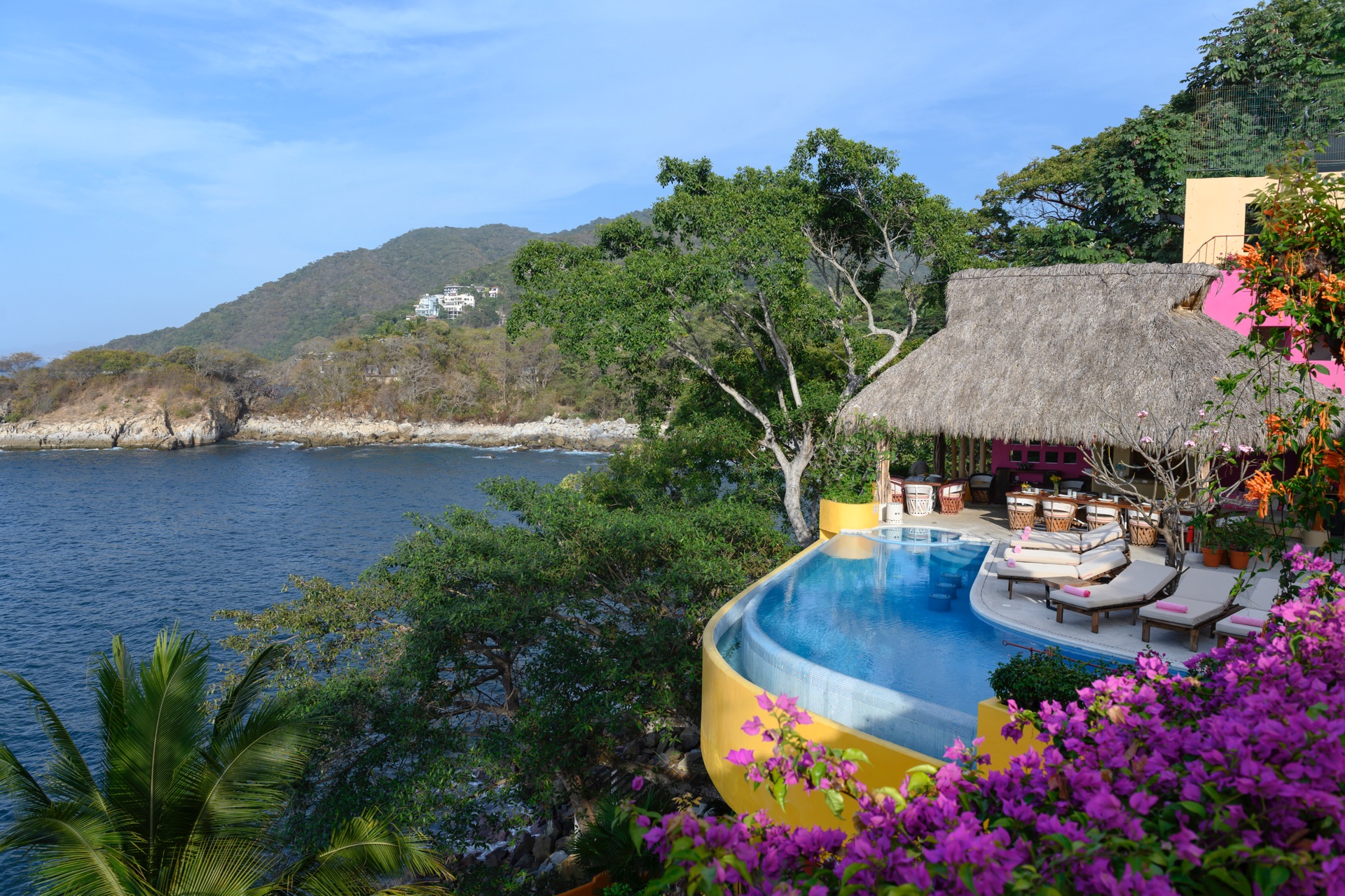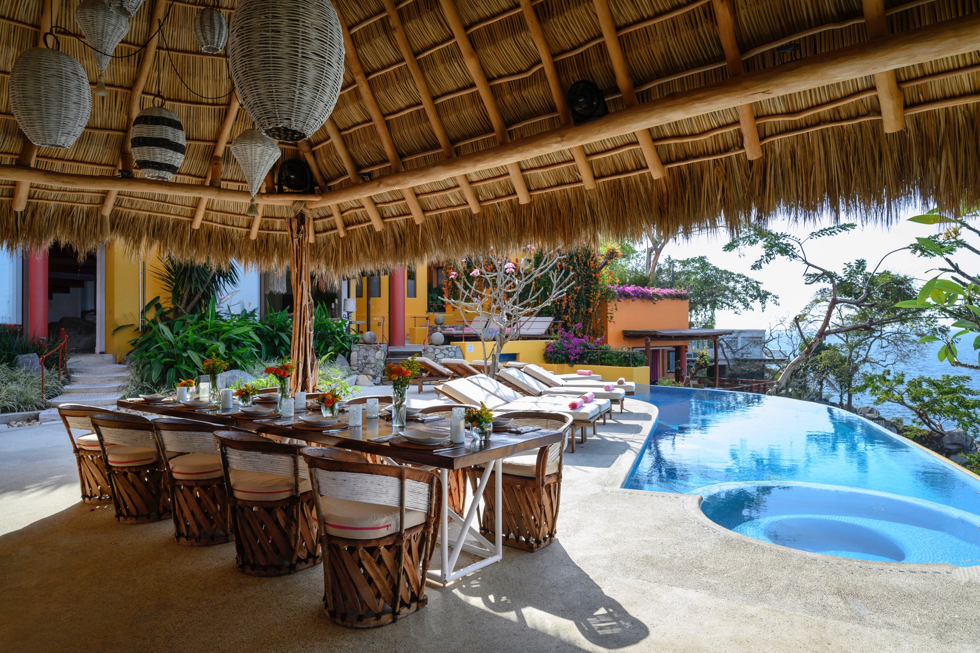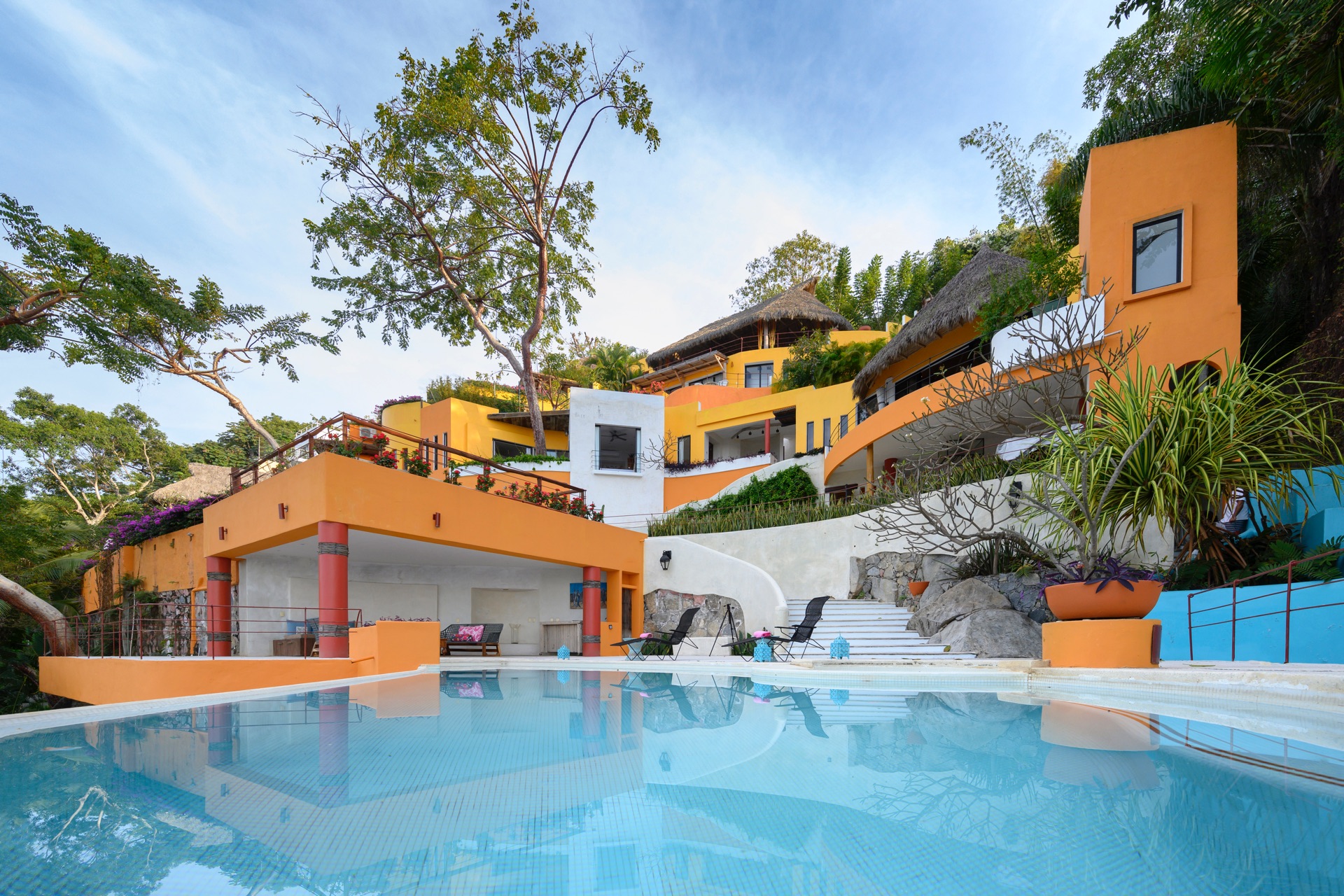 As part of the Villa Experience collection, Villa Mandarinas introduces a substantial, fully serviced private estate in Puerto Vallarta, designed for guests who value space, privacy, and attentive hospitality. This oceanfront property combines lush tropical surroundings with a thoughtful service structure, creating a setting that works equally well for relaxed family time, executive gatherings, and larger celebrations. The overall character is that of a self-contained retreat, where daily logistics are handled discreetly in the background.