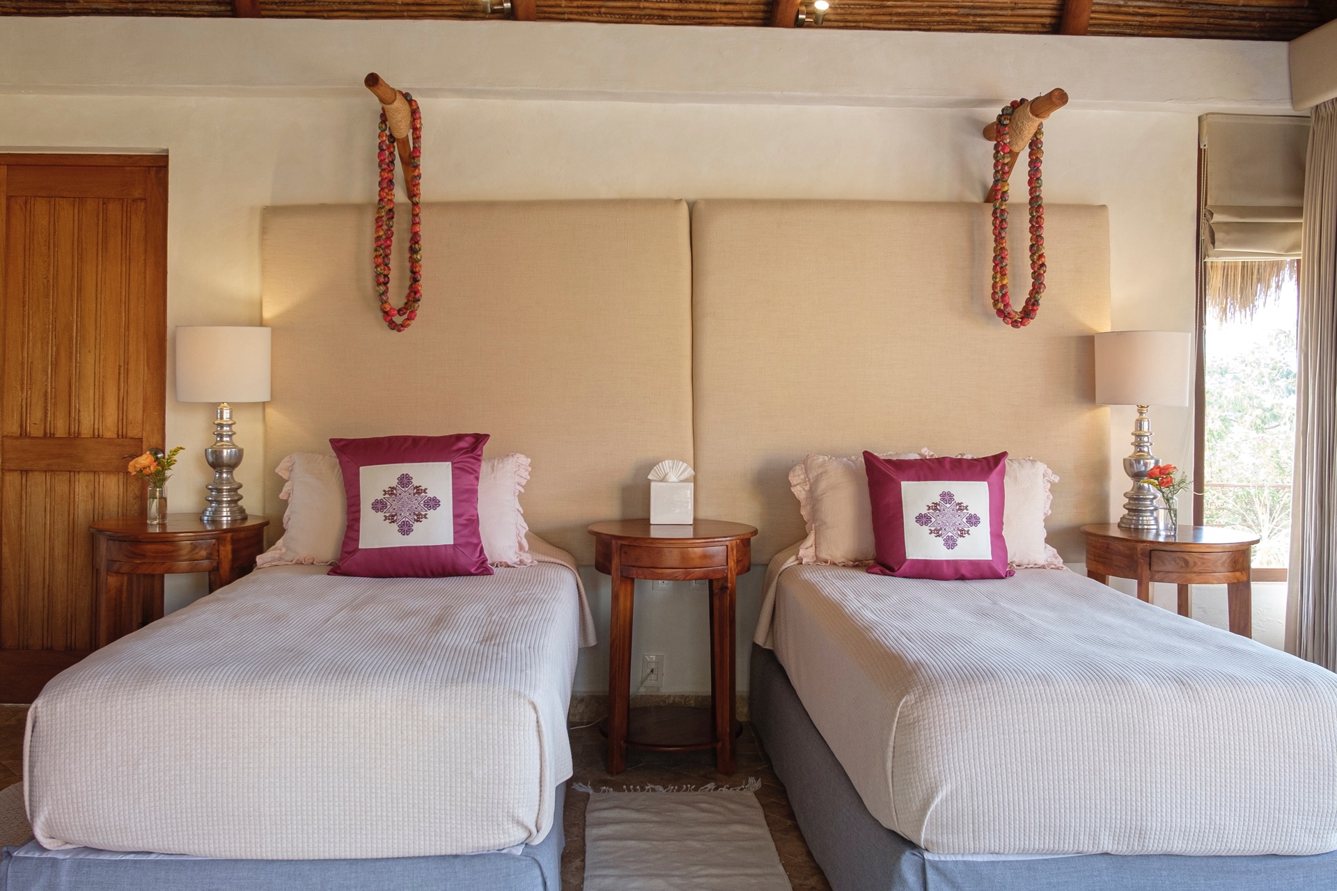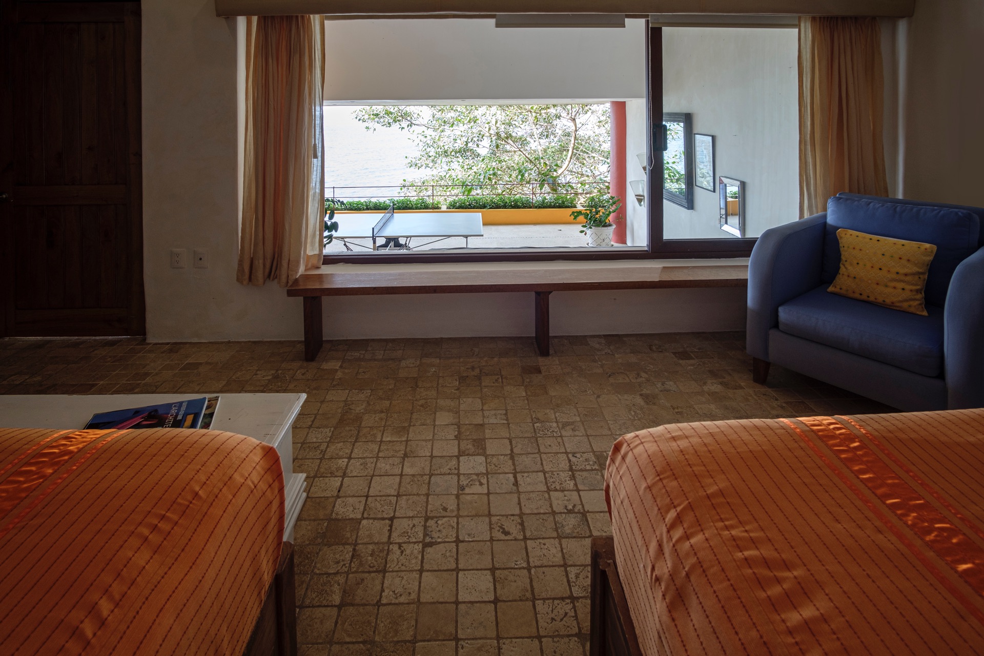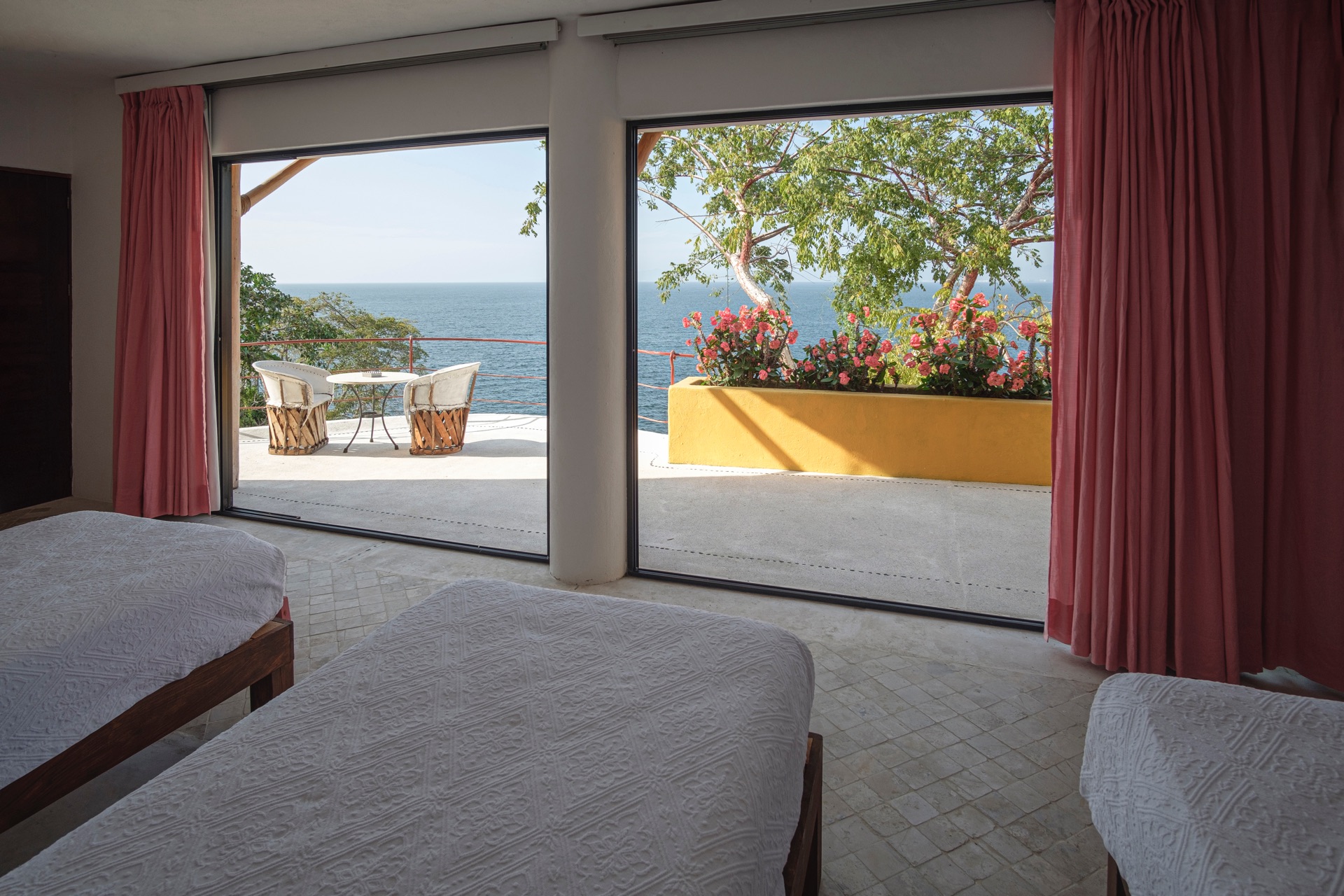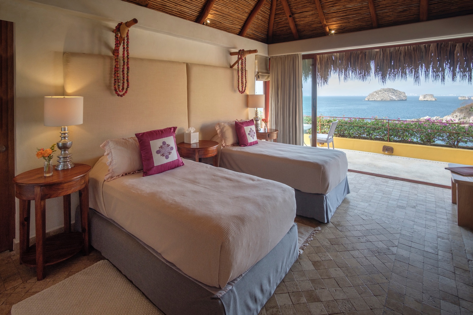 Two king-size beds (each convertible to two twin beds), two en-suite bathrooms, terrace, ocean view.