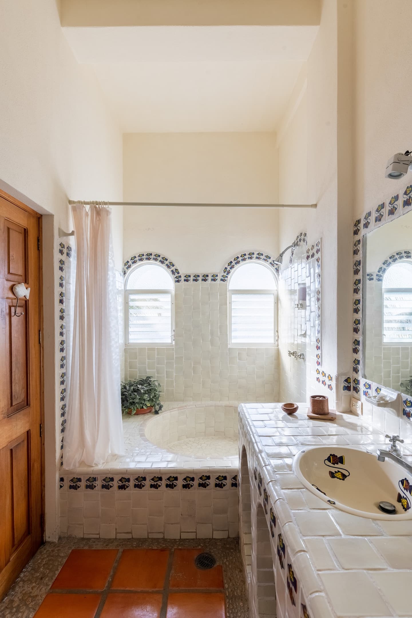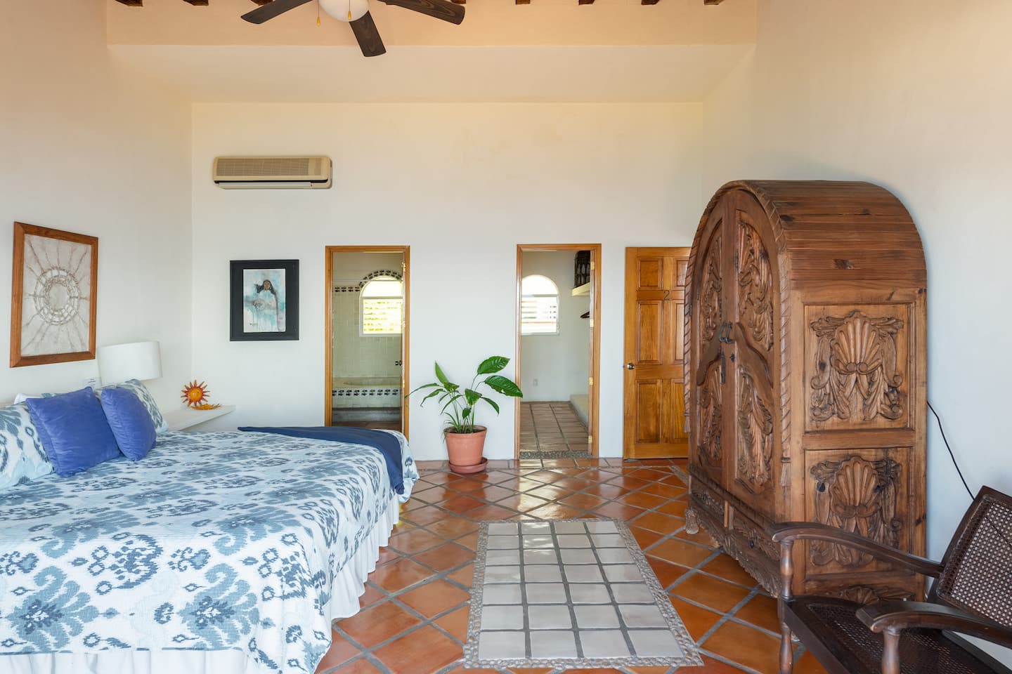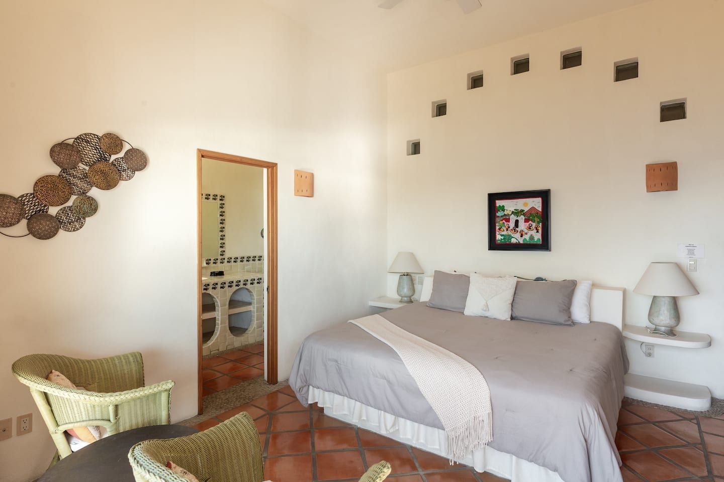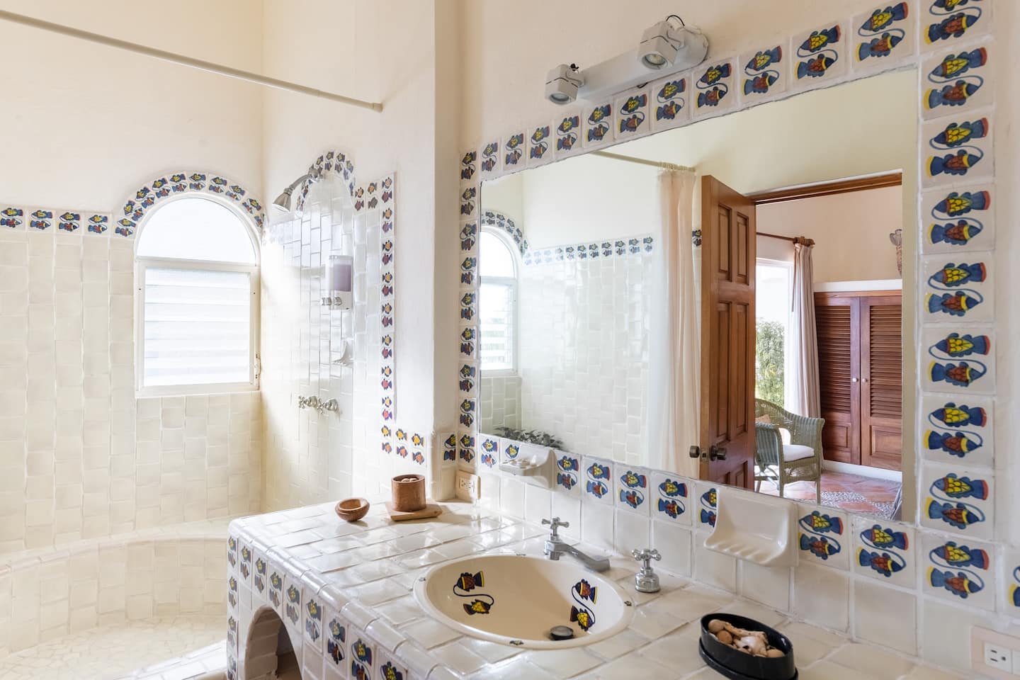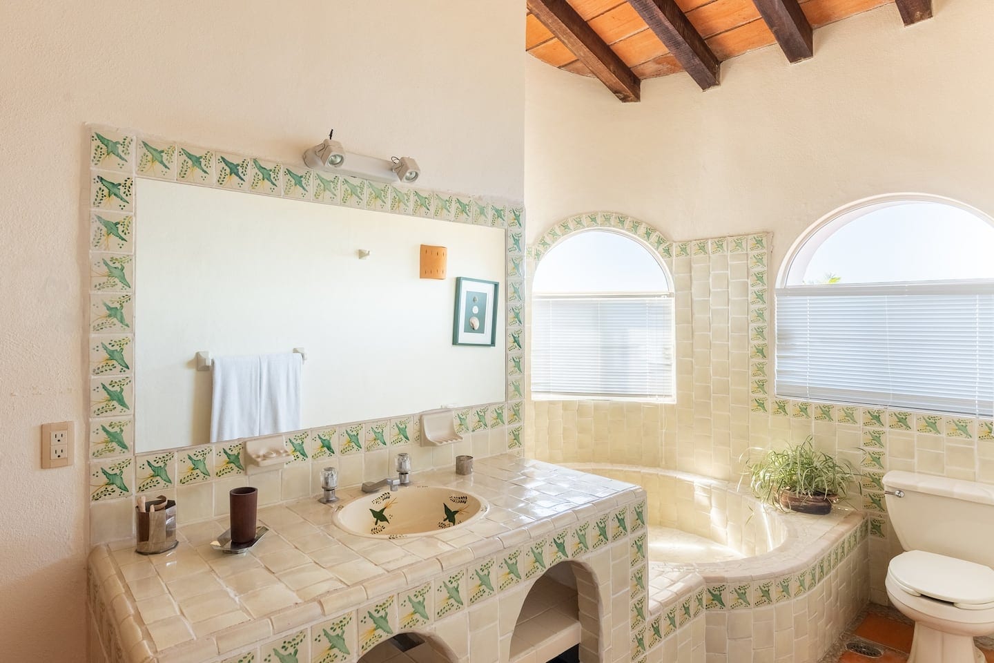 Six rooms provide en-suite bathrooms, each showcasing beautifully painted tiles. The remaining two share a bathroom, a design choice perfect for families or larger groups.