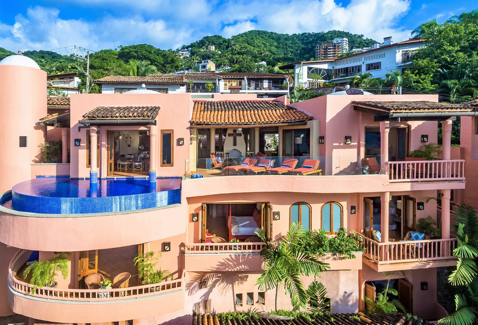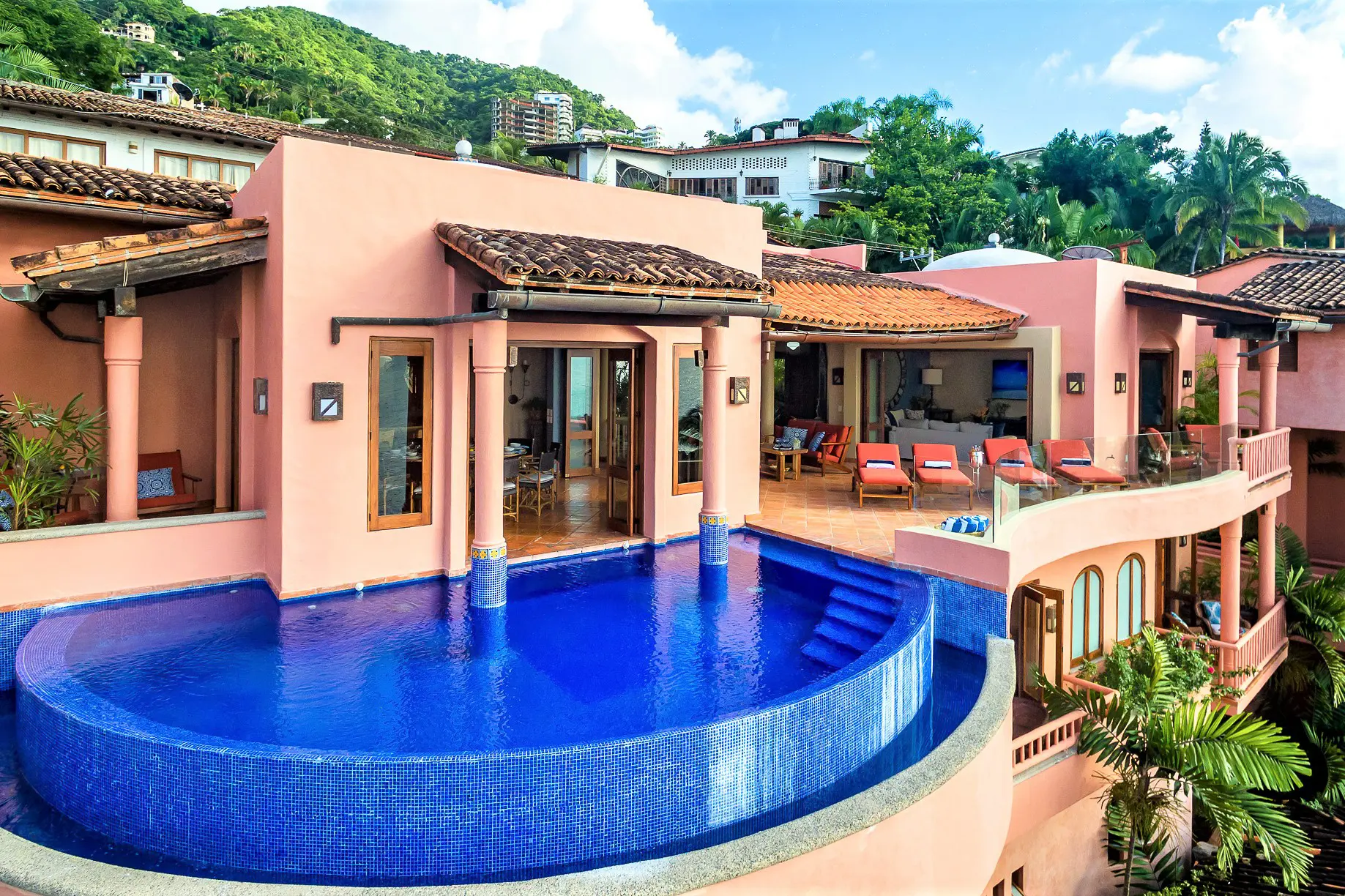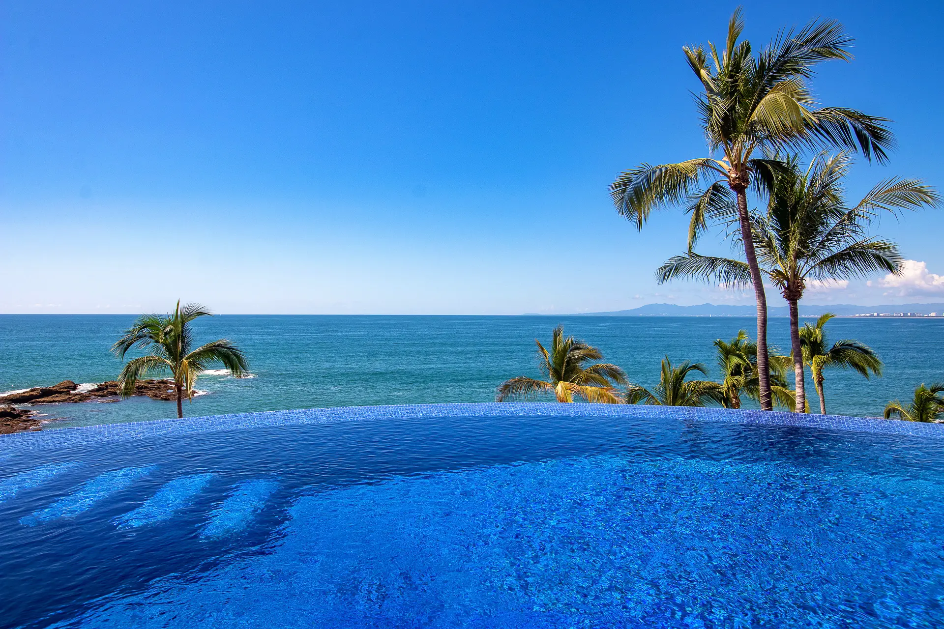 Nestled within the prestigious Lower Conchas Chinas community, Villa Marea Alta promises elegance and seclusion. Mere minutes from downtown Puerto Vallarta, this beachfront gem exudes Mediterranean flair while offering unparalleled views of the sprawling Banderas Bay, Mexico’s grandest natural bay.