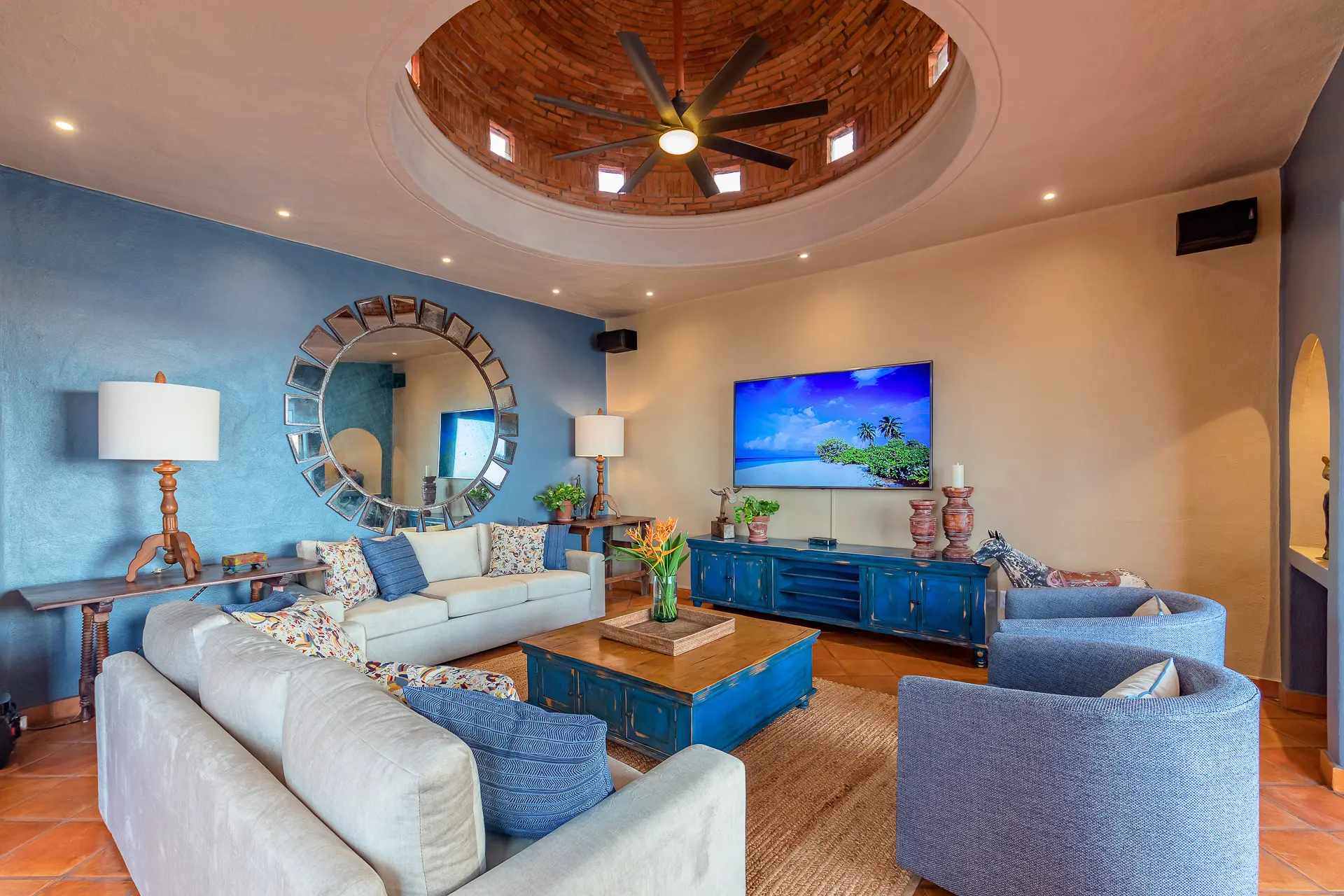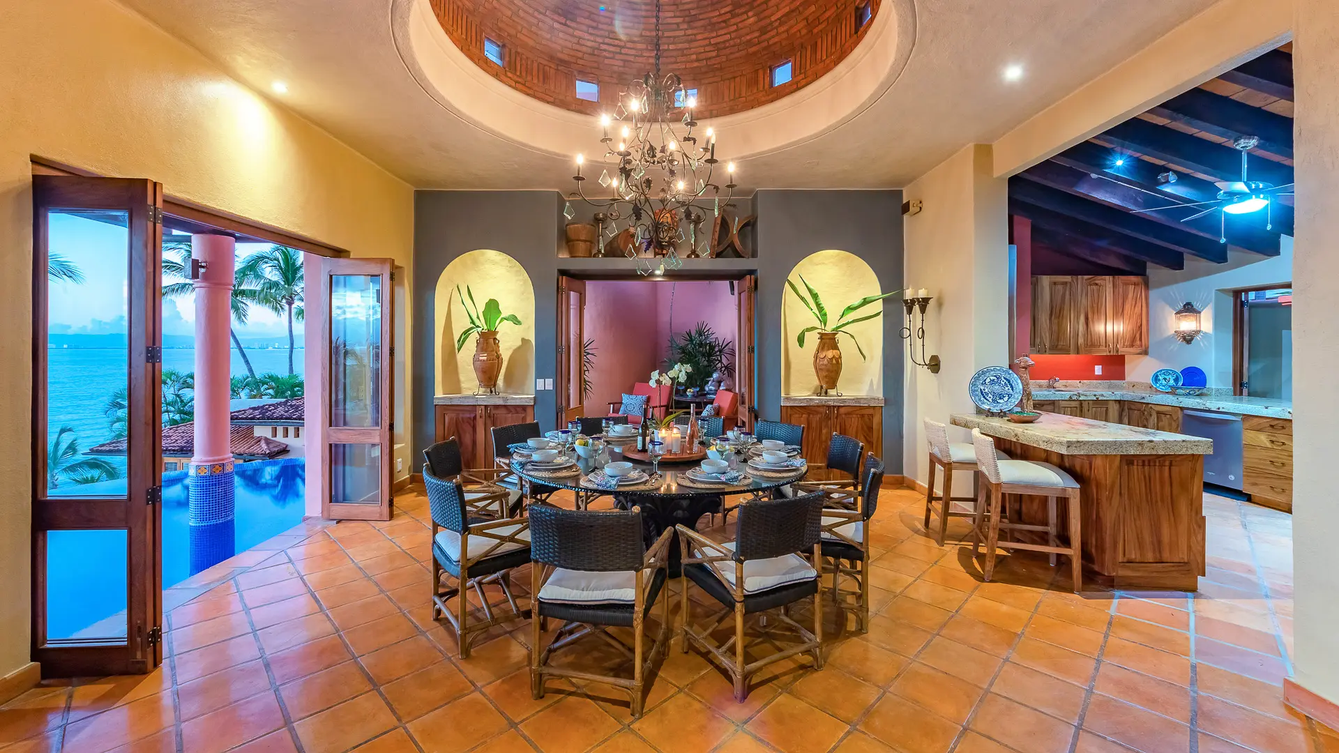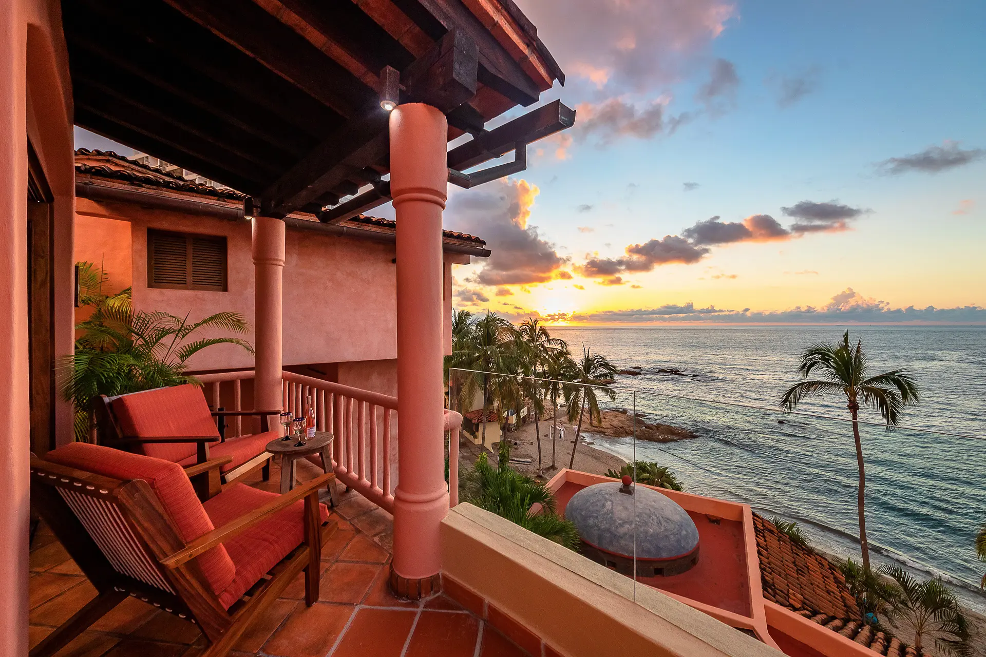 Nestled within the prestigious Lower Conchas Chinas community, Villa Marea Alta promises elegance and seclusion. Mere minutes from downtown Puerto Vallarta, this beachfront gem exudes Mediterranean flair while offering unparalleled views of the sprawling Banderas Bay, Mexico’s grandest natural bay.