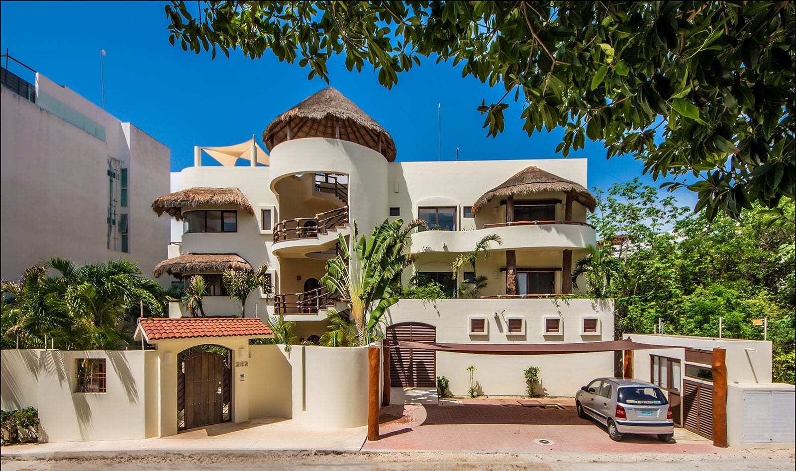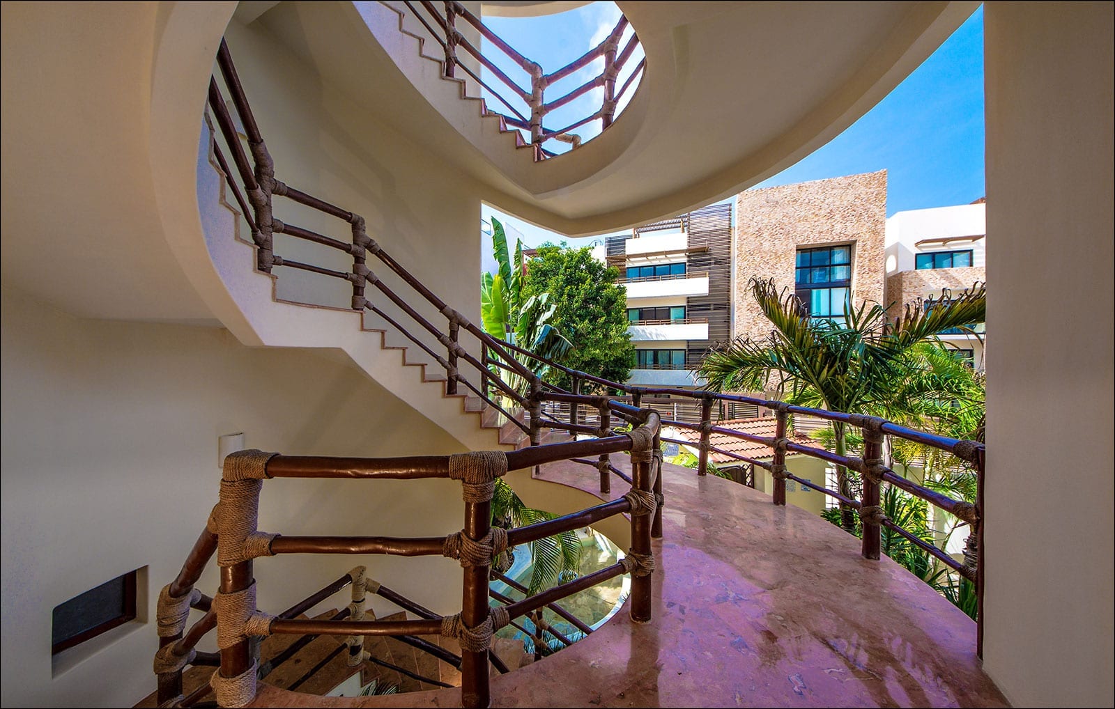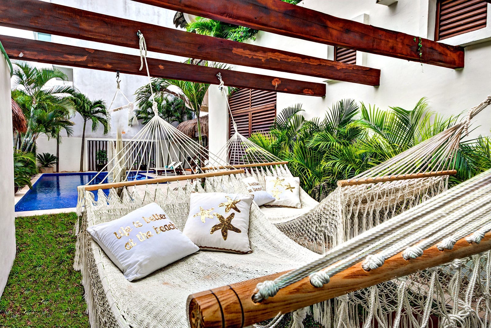 The setting places guests within the urban fabric of Playa del Carmen, surrounded by the town’s dining, shopping, and nightlife. From this central location, the tropical white sand and turquoise sea sit in one direction, while the lively Quinta Avenida lies in the other, creating a strong sense of connection to both beach and city. It is a stay that feels plugged into the destination, yet anchored in the privacy of a standalone home.