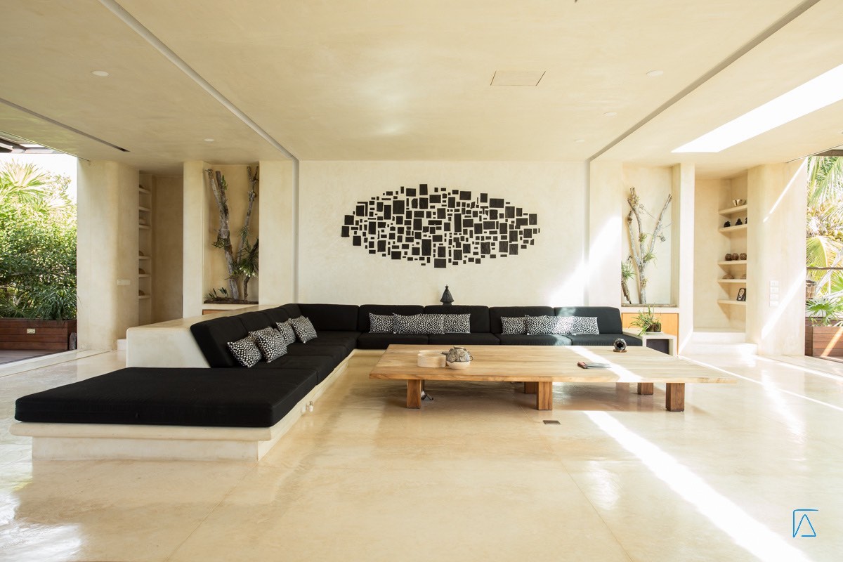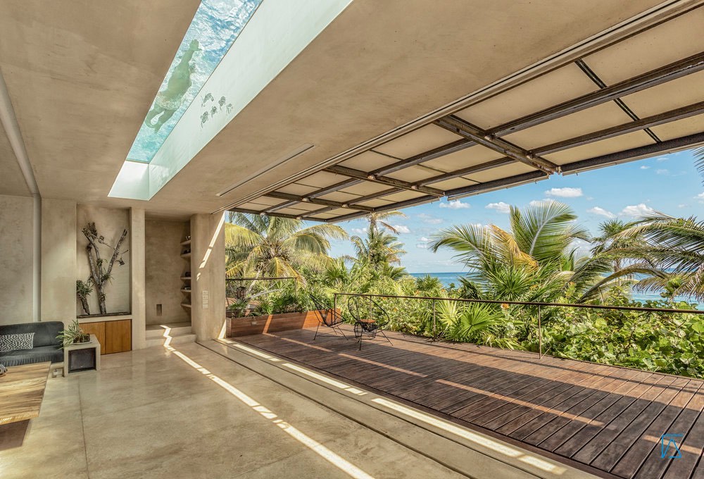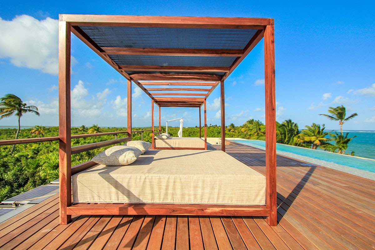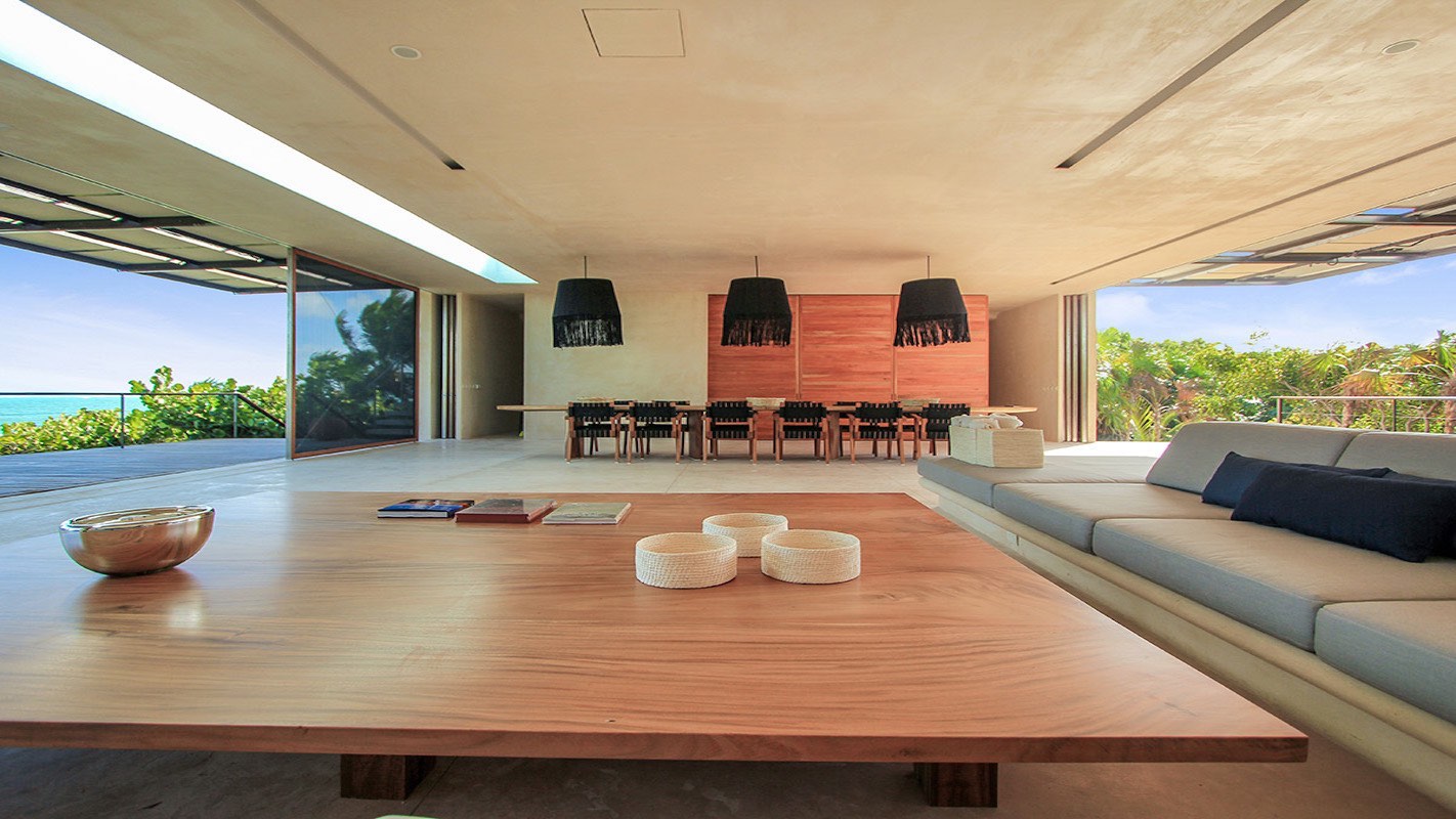 Set in the jungle on a leafy estate between the Caribbean Sea and a Mayan lagoon, the villa is surrounded by nature on all sides, with no neighbors in sight. The atmosphere is one of quiet seclusion, where the warm wind, rustling palms, and natural light define the rhythm of each day. Architectural lines and materials are contemporary, yet the property remains closely connected to its environment, from estate-grown coconuts to handmade pieces sourced from nearby Merida.