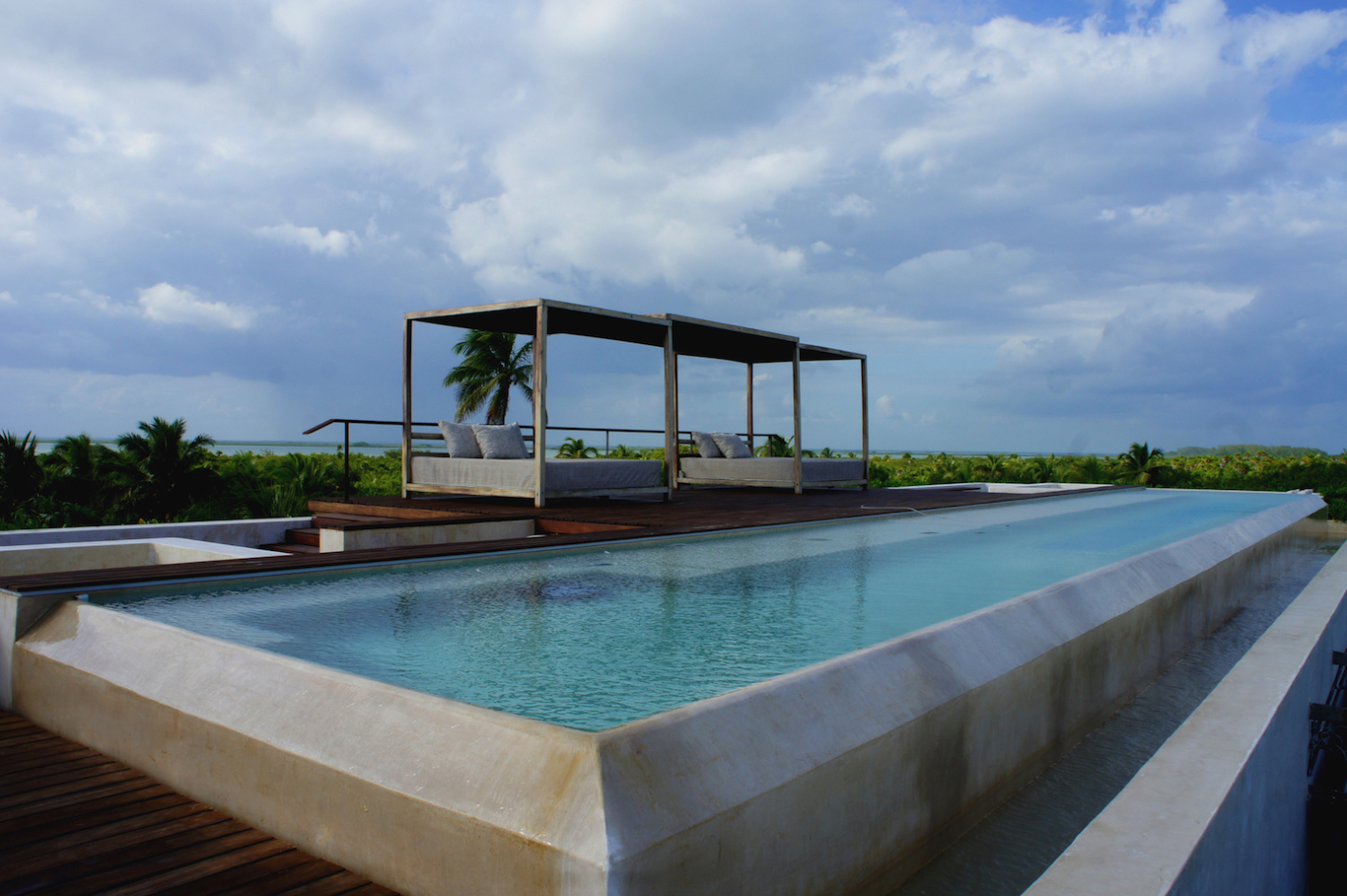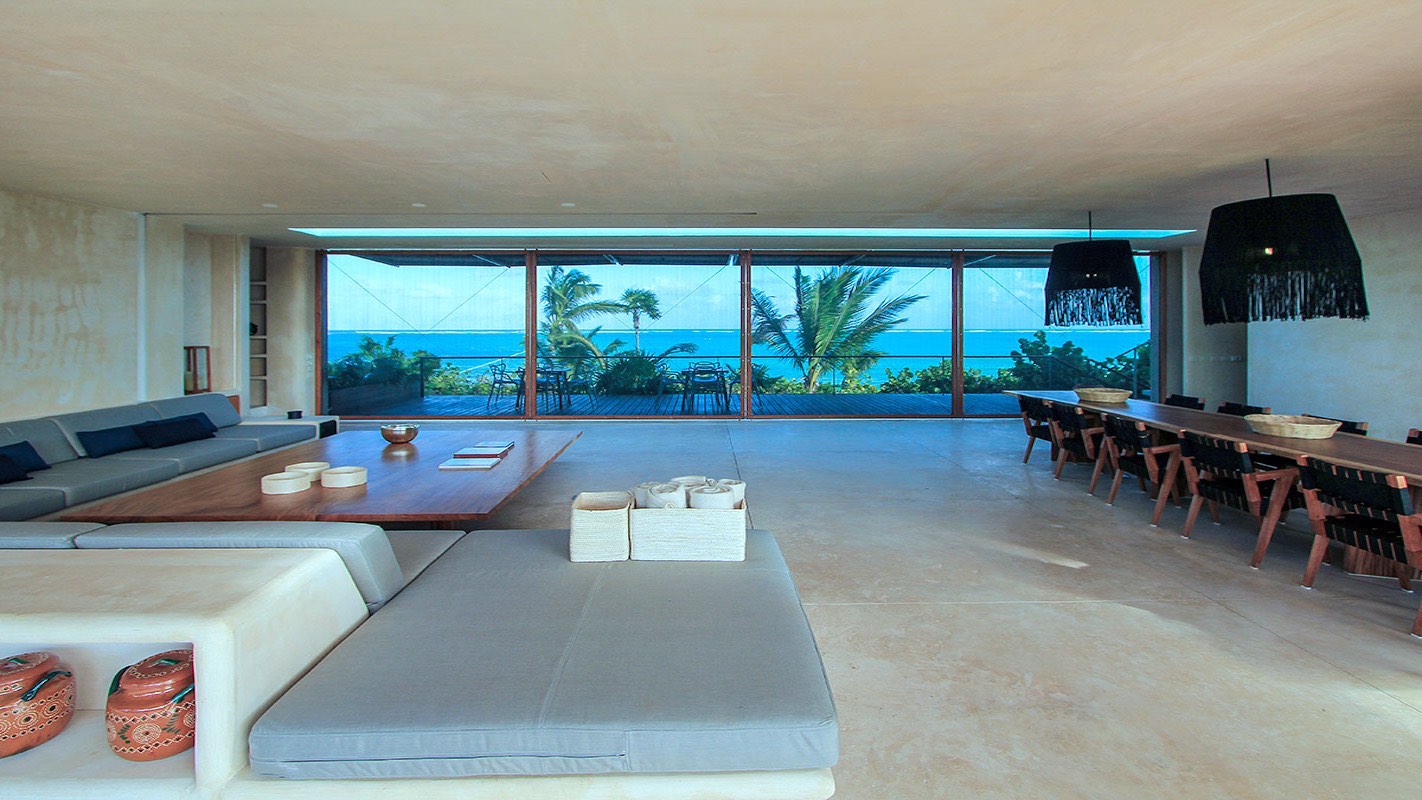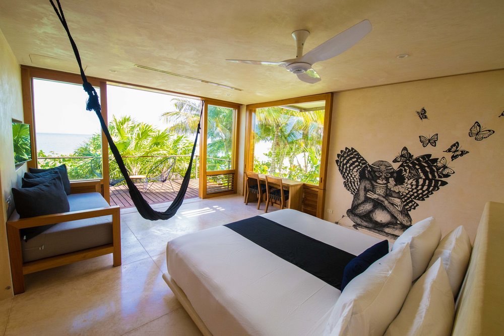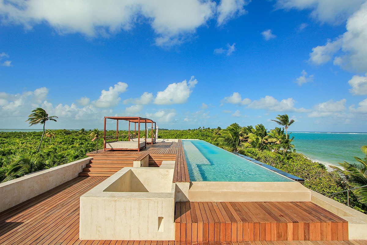 Set in the jungle on a leafy estate between the Caribbean Sea and a Mayan lagoon, the villa is surrounded by nature on all sides, with no neighbors in sight. The atmosphere is one of quiet seclusion, where the warm wind, rustling palms, and natural light define the rhythm of each day. Architectural lines and materials are contemporary, yet the property remains closely connected to its environment, from estate-grown coconuts to handmade pieces sourced from nearby Merida.