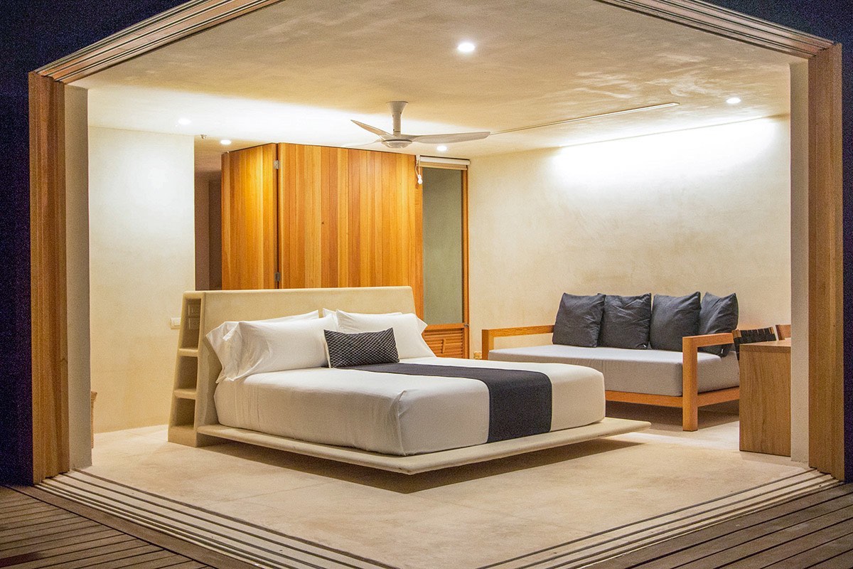 Designed on an intimate scale, the villa centers around four master suites, each conceived as a private haven within the property. Generous deck spaces extend the living areas outdoors, offering sea views and a sense of personal retreat for every guest. Shared spaces, indoors and out, are arranged to encourage both togetherness and privacy, allowing groups to gather comfortably while still finding quiet corners to unwind.