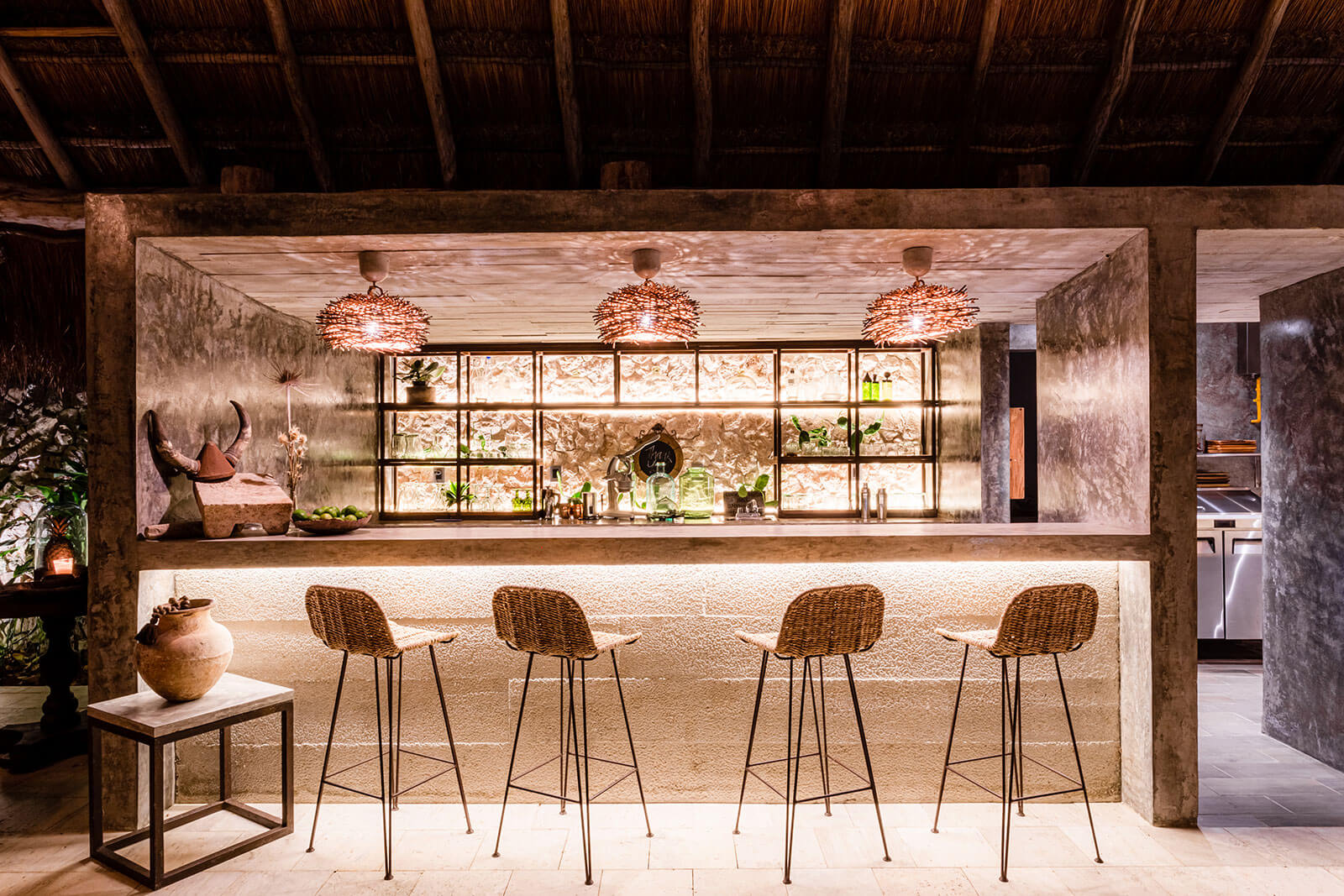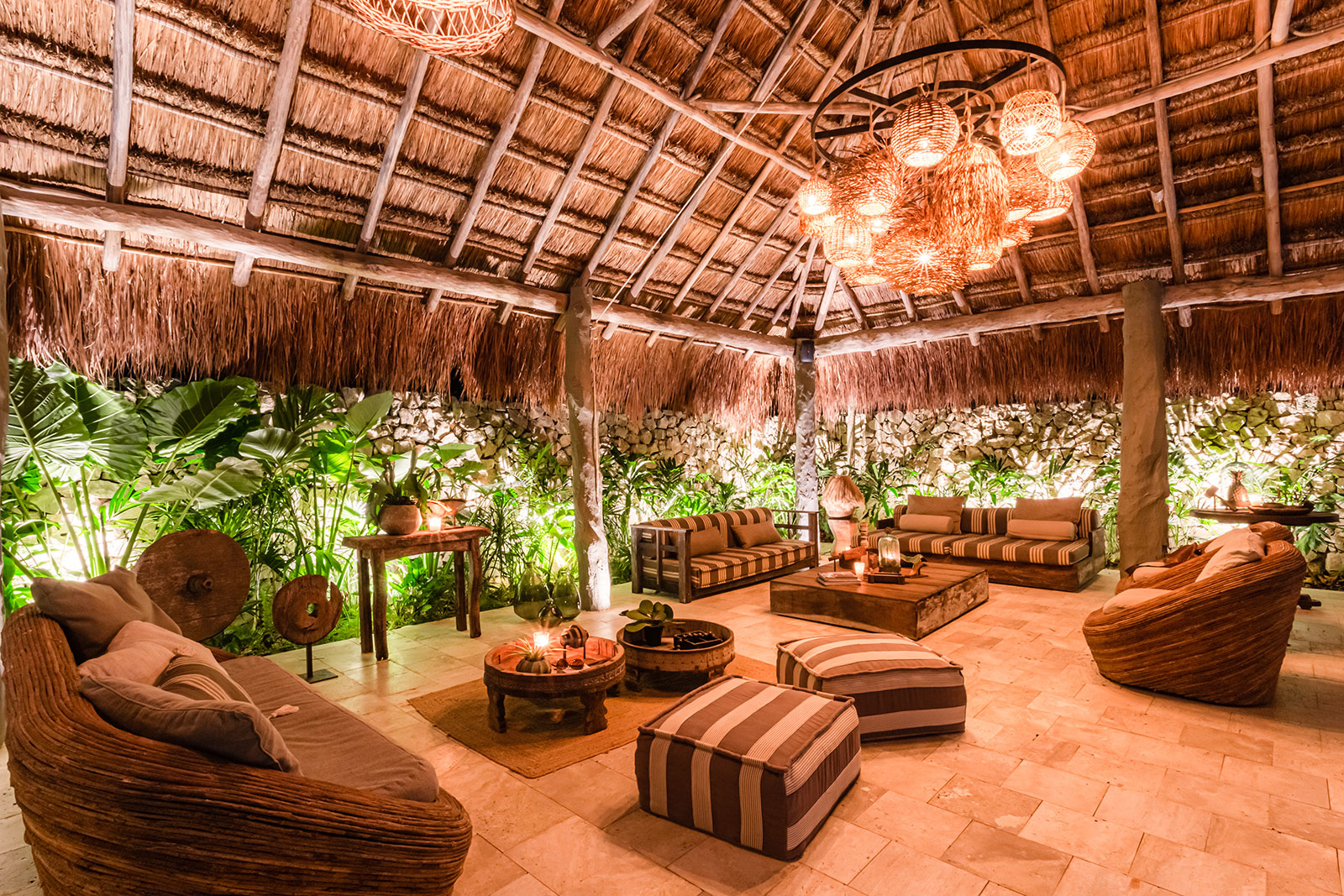 The setting brings together the serene beauty of Xpu Ha beach and the Mayan jungle, with paths that lead through lush greenery and a feeling of seclusion from the outside world. Within this landscape, the property feels discreet and tucked away, yet still within reach of the energy of Playa del Carmen and Tulum. The atmosphere is one of quiet retreat, where the surrounding gardens and jungle elements frame both everyday moments and special occasions.
