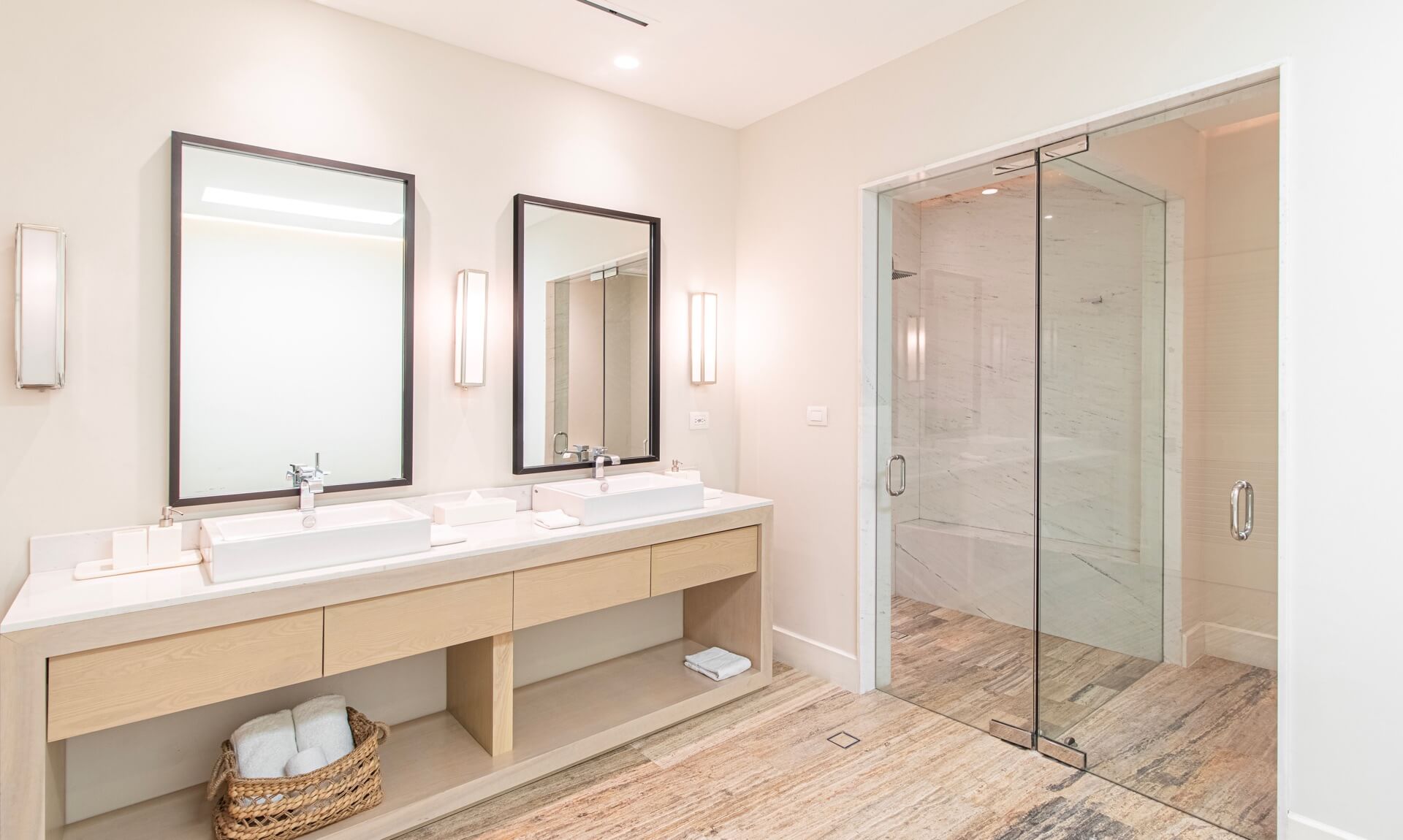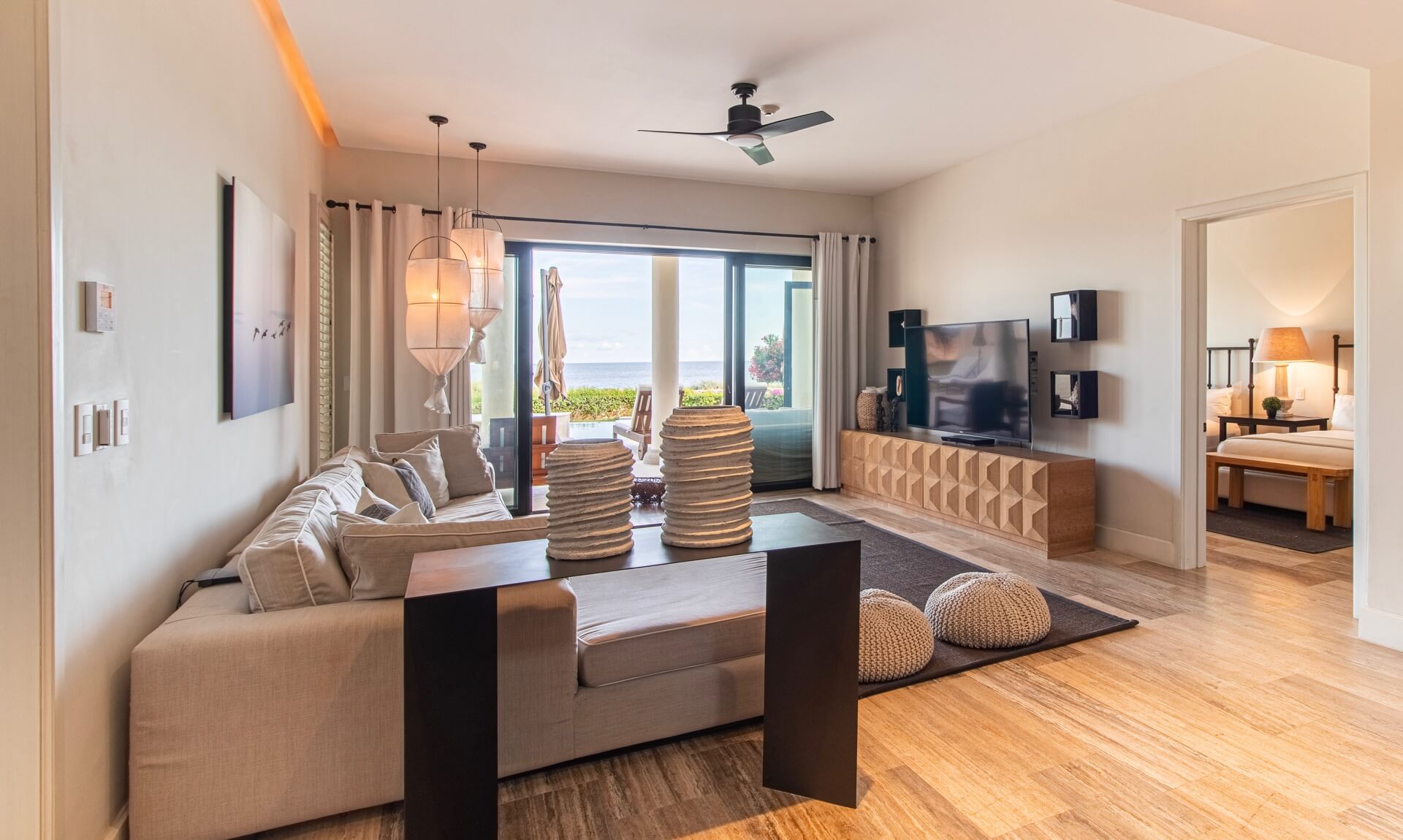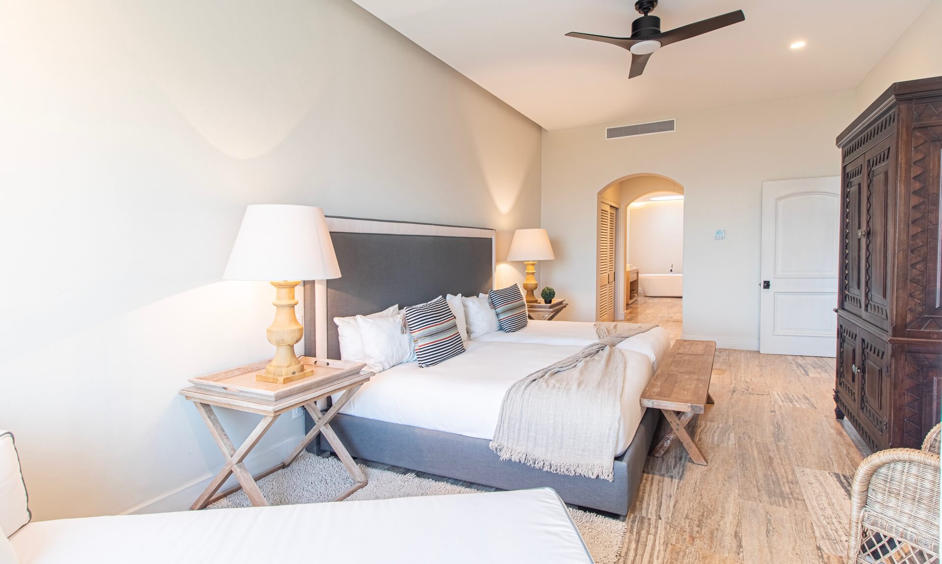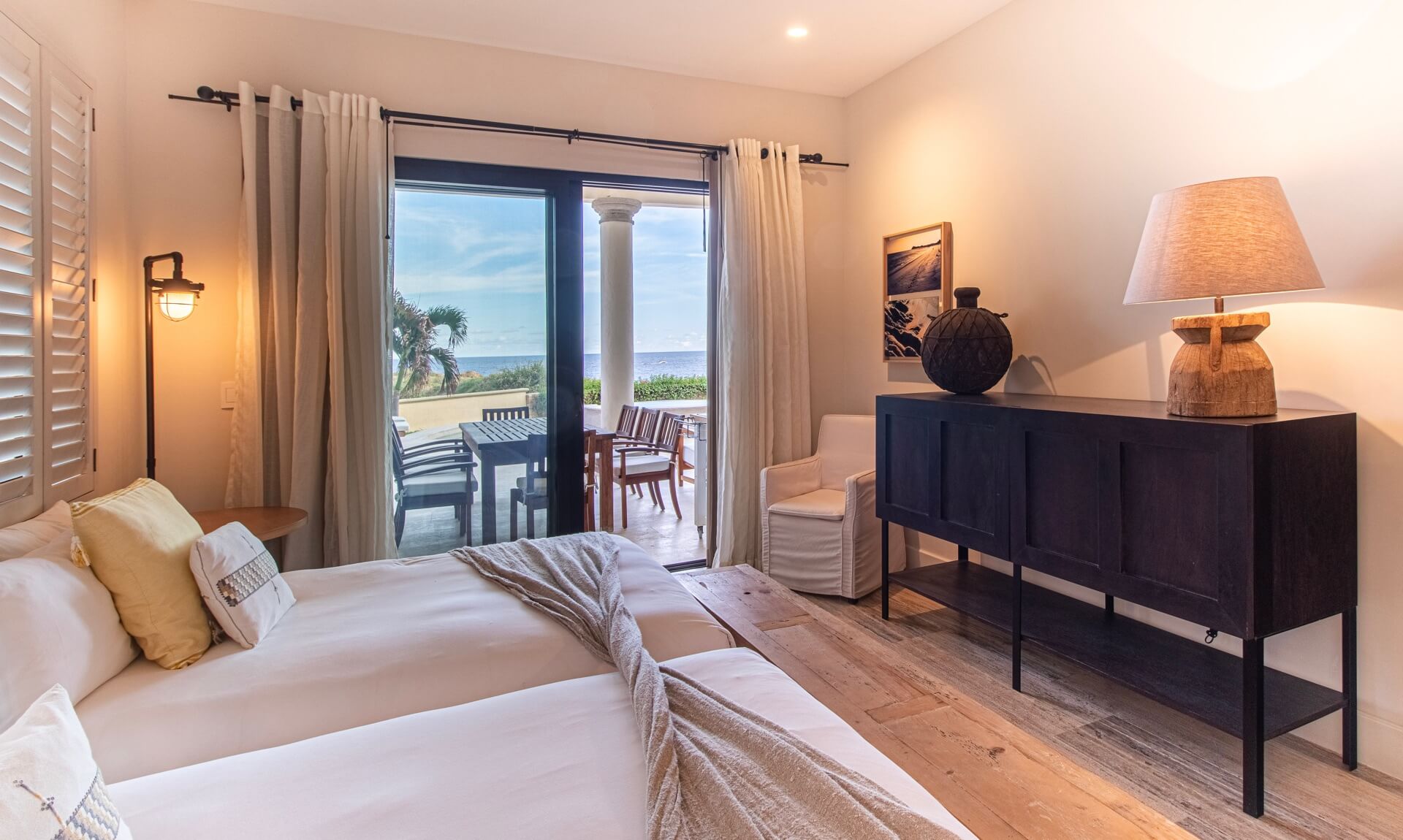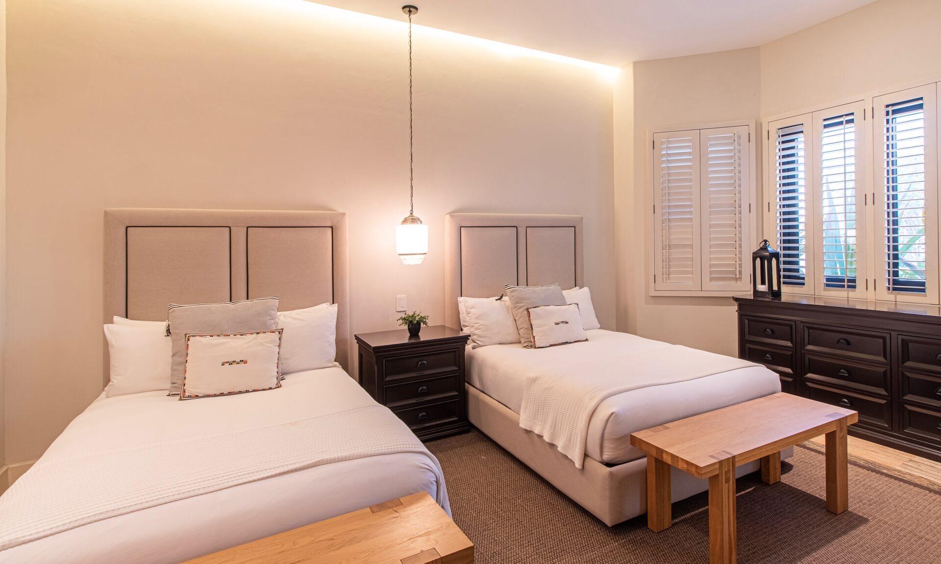 The Second Suite includes two double beds, a private bathroom, pool access, and beautiful ocean views.