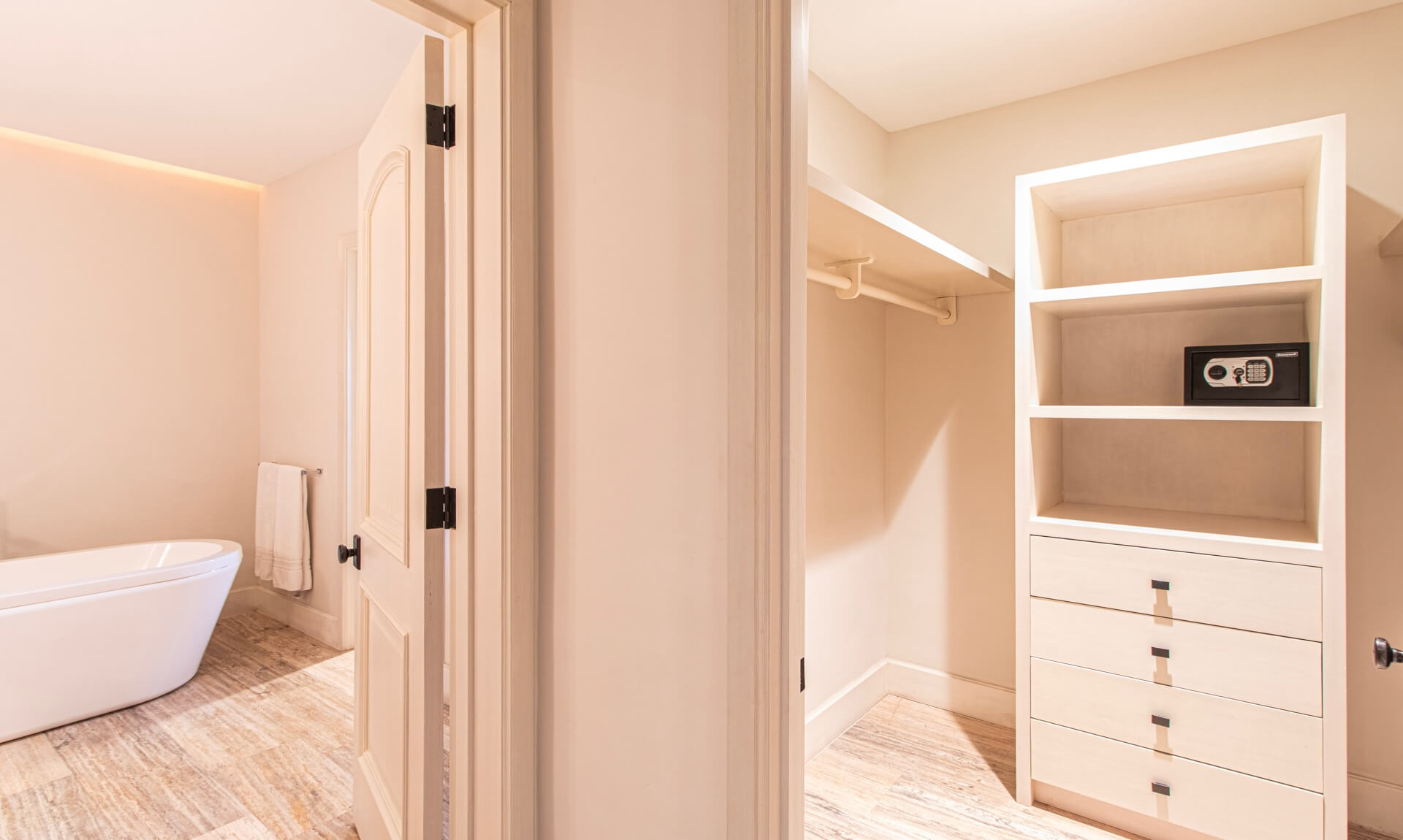 The Primary Suite features a king bed, a private bathroom with a Jacuzzi tub, and stunning ocean views.