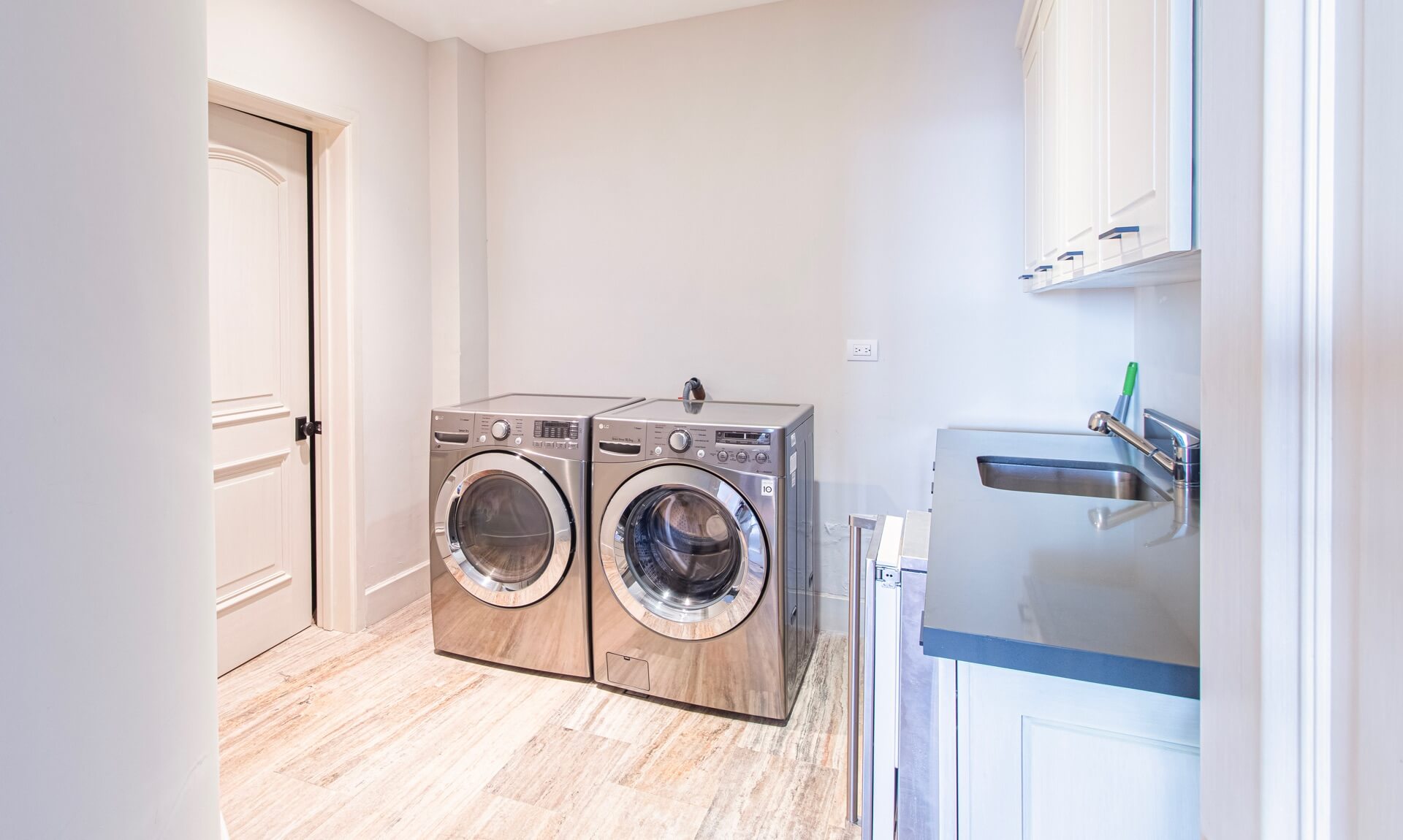 The villa features a full kitchen equipped with all the necessary amenities. There is indoor dining for eight people, plus three barstools. A wine fridge is available for guests. The living area includes a fireplace and satellite television. Central air conditioning and ceiling fans ensure a comfortable environment. Wireless internet is available throughout the villa. A washer and dryer are provided for convenience. The villa has a smoke detector and a first aid kit for safety.