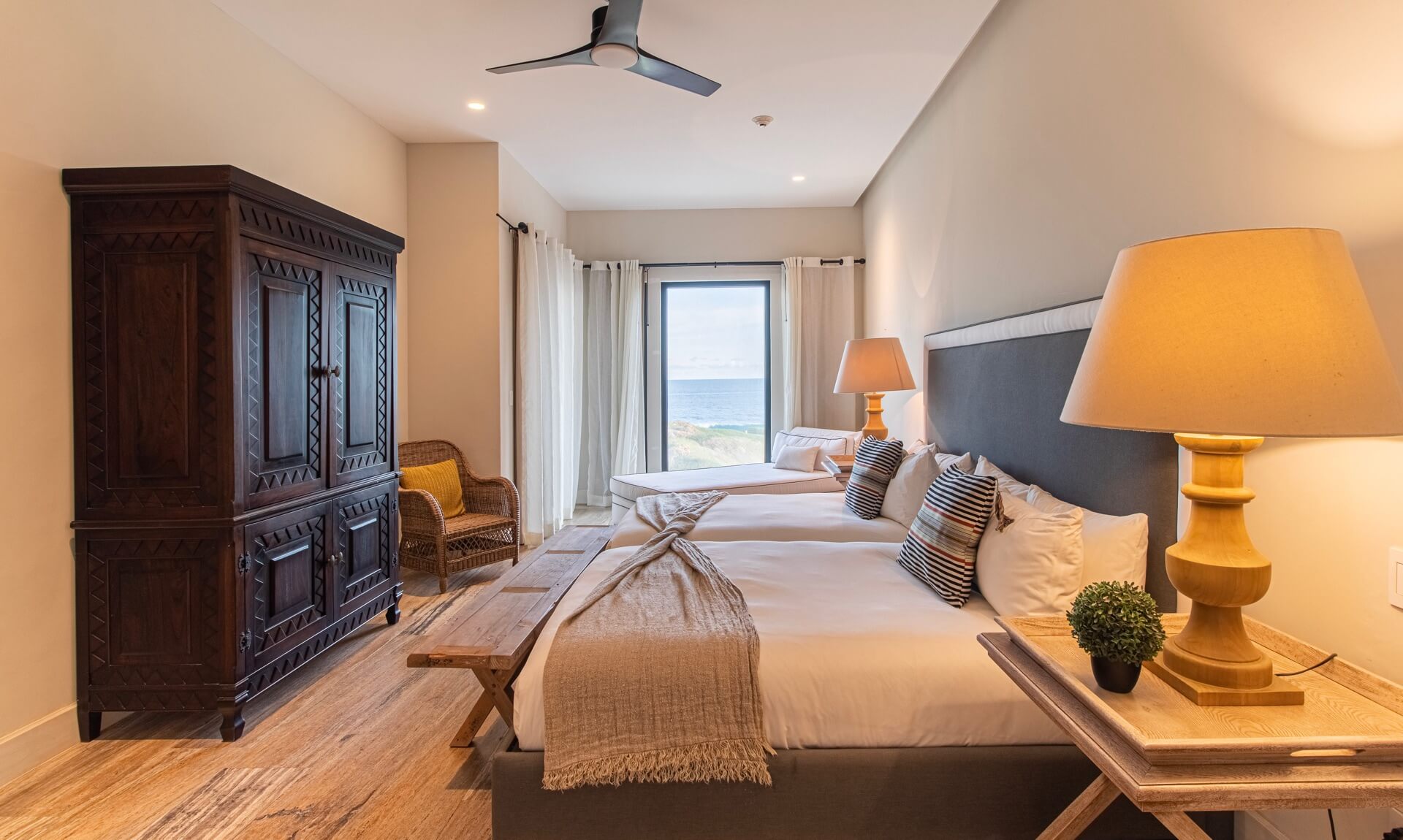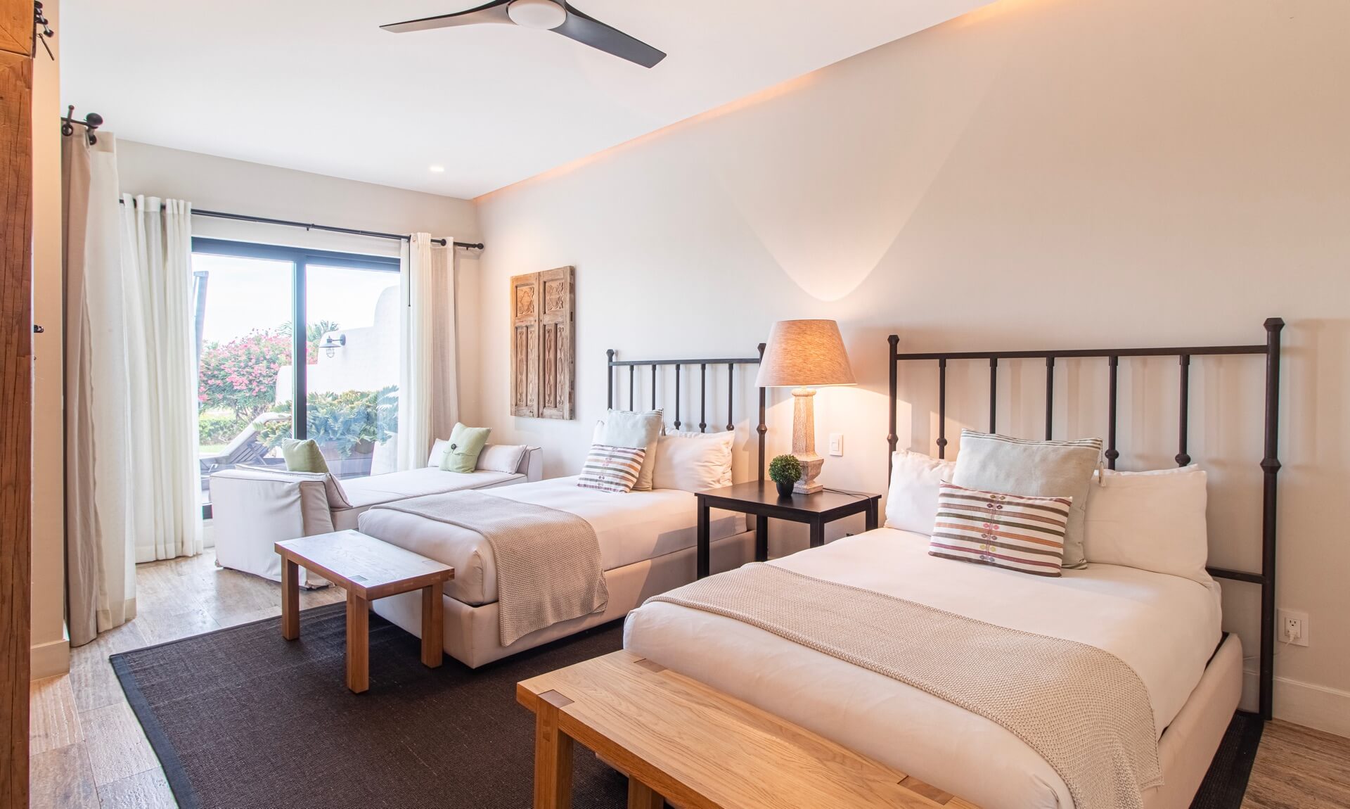 The Third Suite offers two double beds, a private bathroom, pool access, and captivating ocean views.
