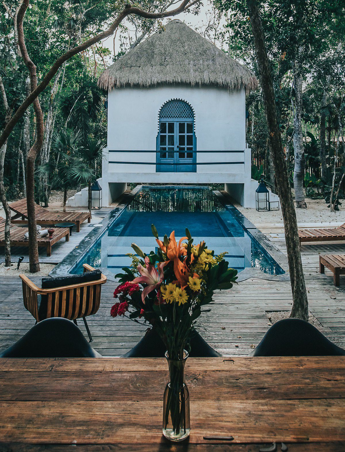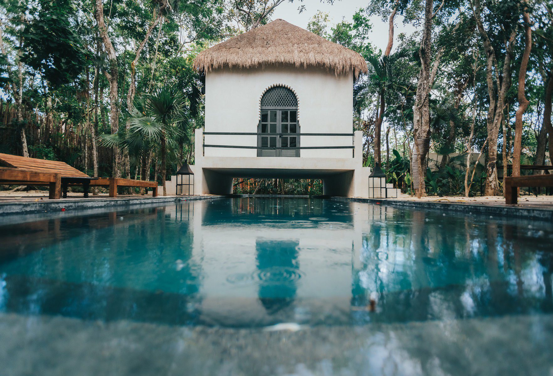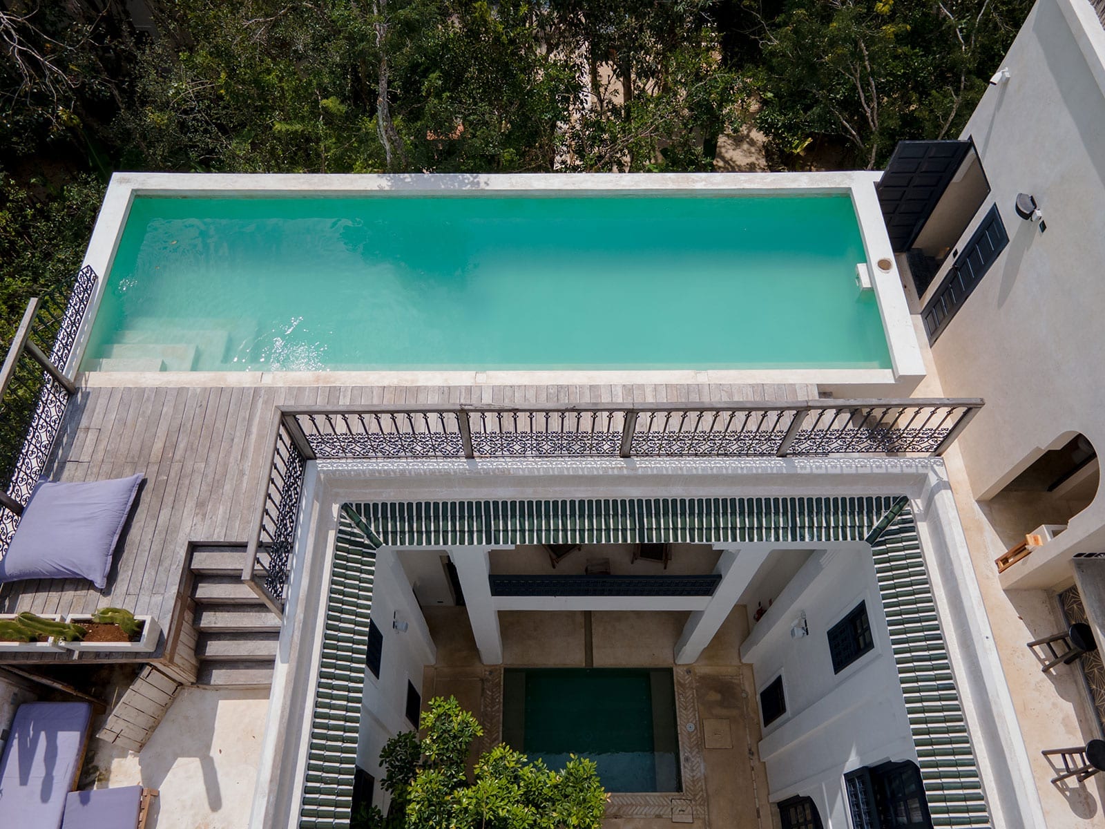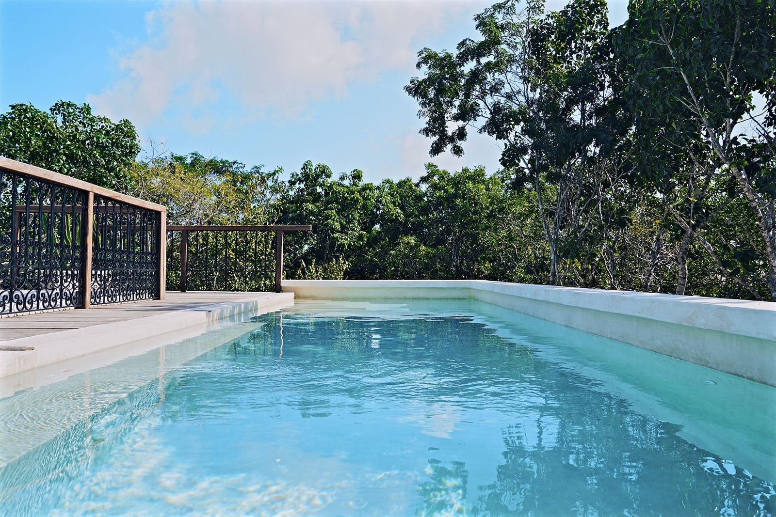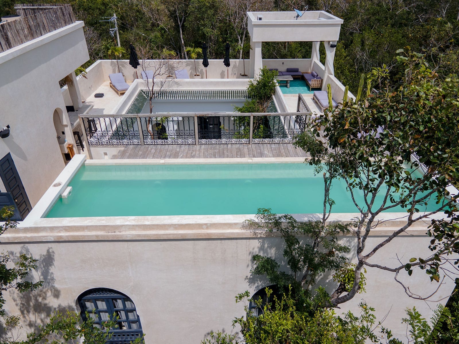 Rooftop pool with a panoramic jungle view