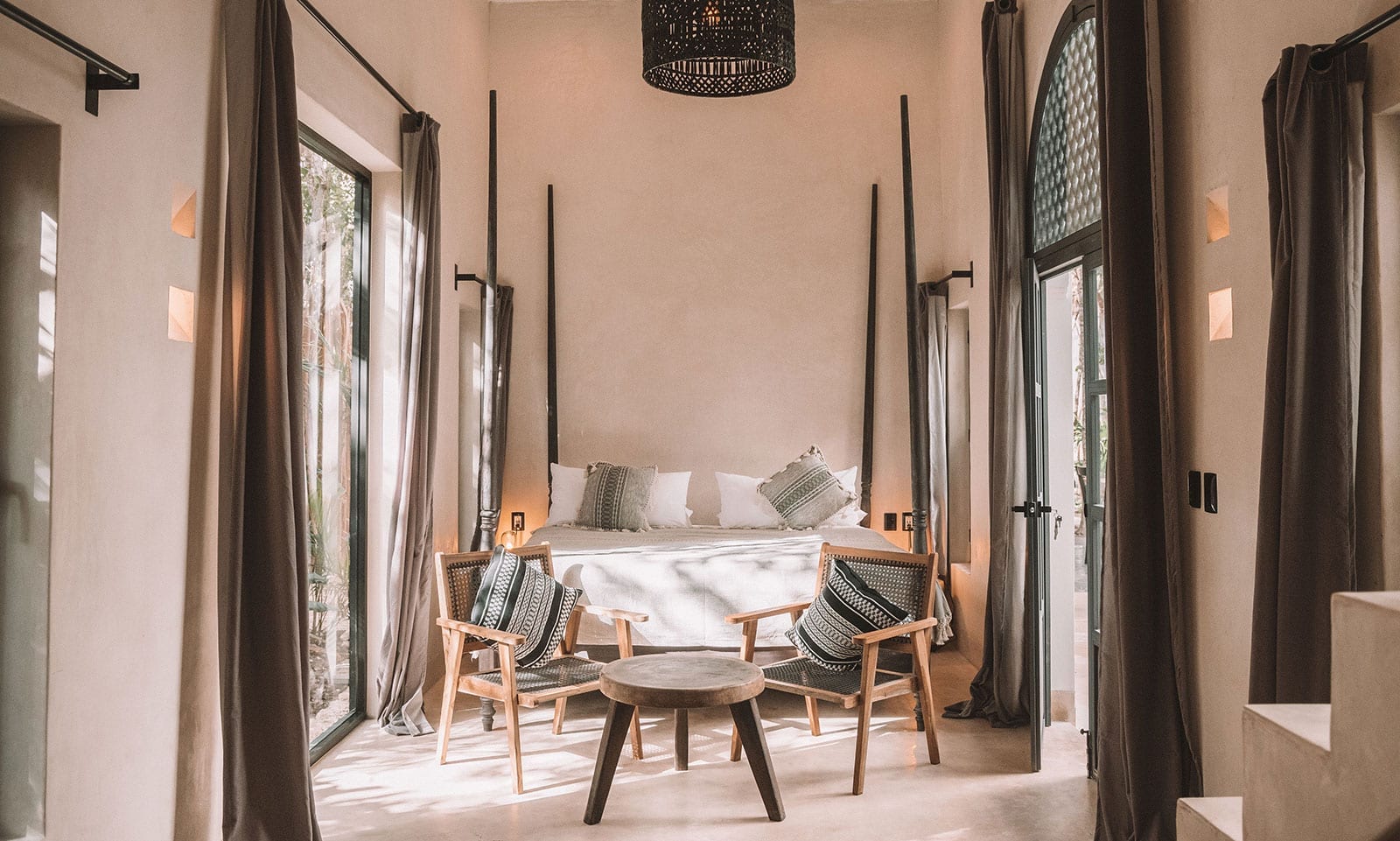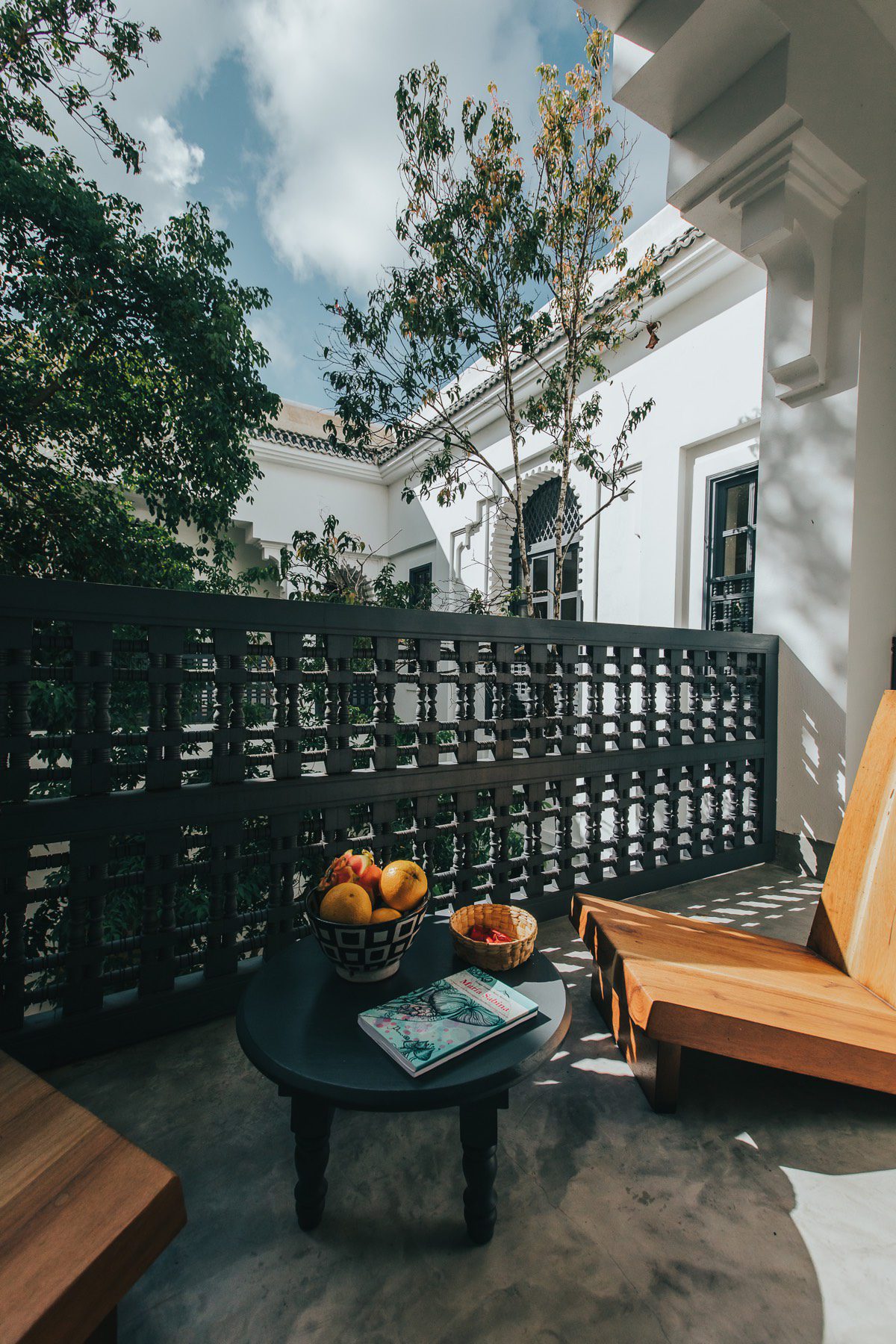 These suites are designed for comfort and privacy. They are equipped with **king-size beds**, **ensuite bathrooms**, and charming indoor balconies perfect for reading or lounging. The suites also have ceiling fans, air conditioning, and tasteful décor that reflect the villa’s unique fusion of styles.