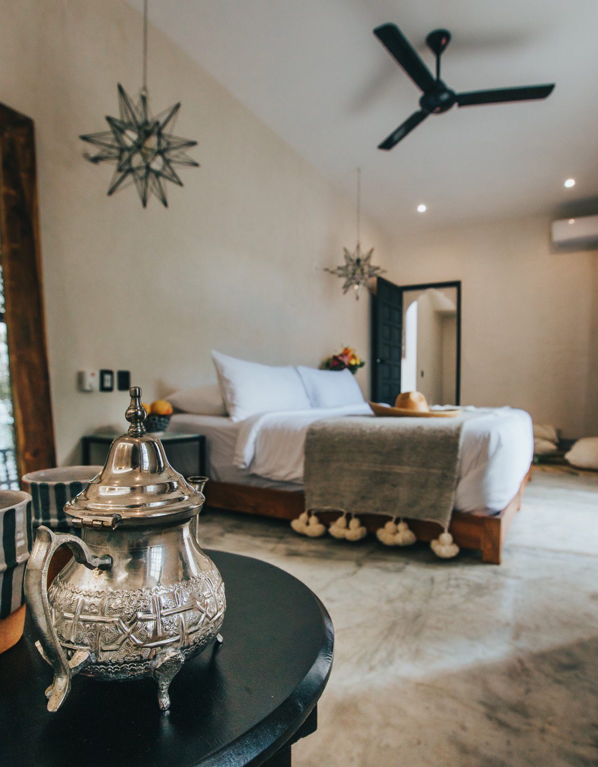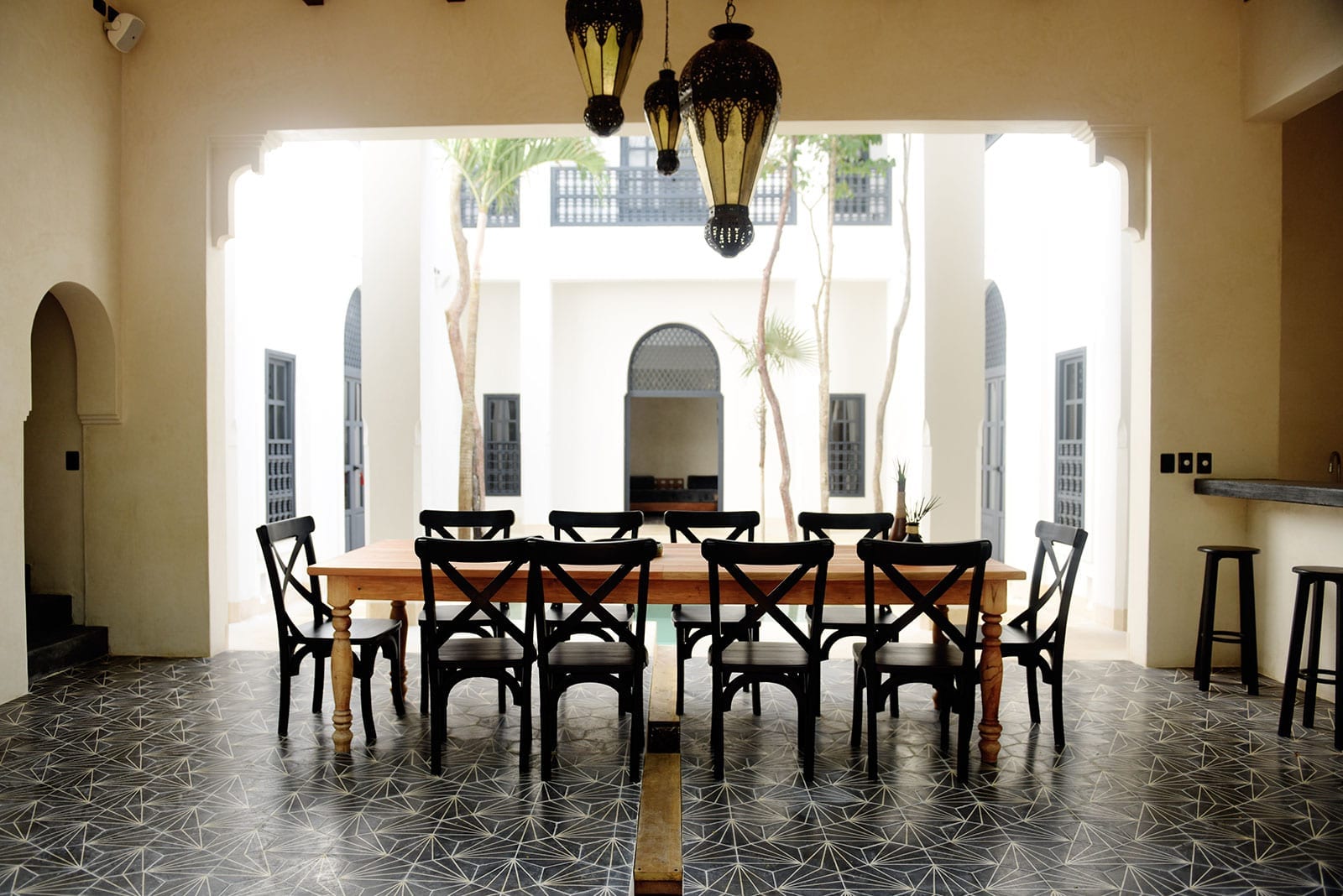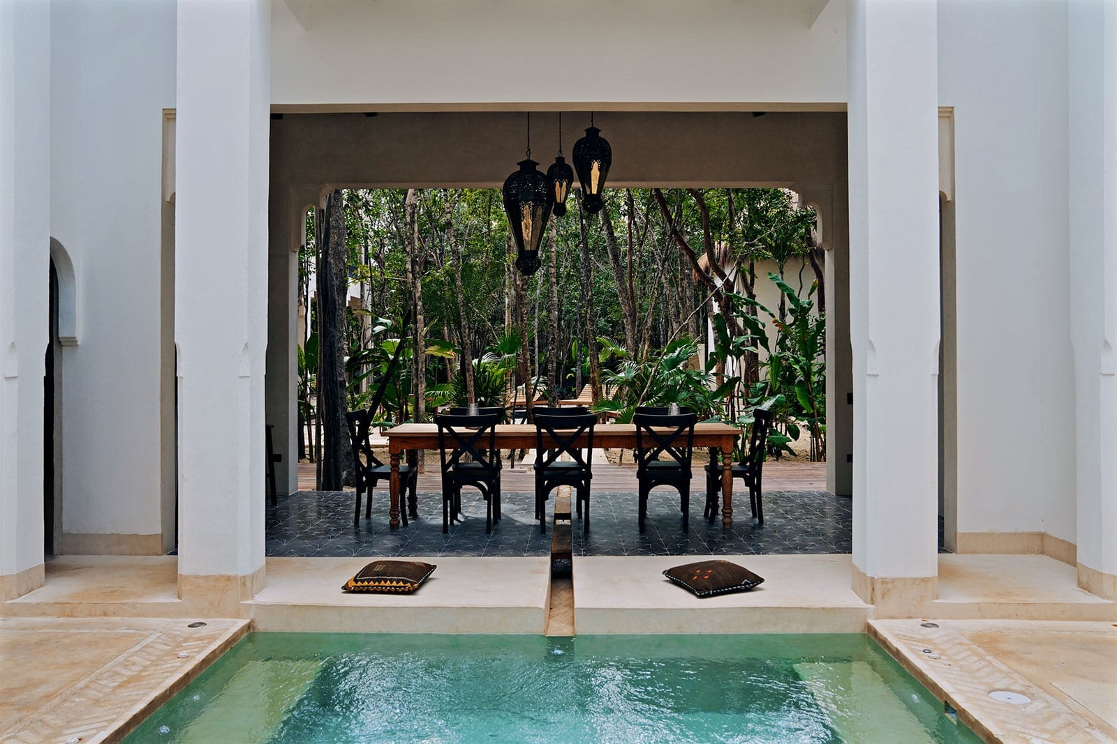 Welcome to Villa Riad Ambre et Epices, an exquisite 16-bedroom Moroccan-inspired retreat nestled in the heart of Tulum’s La Veleta neighborhood. Lush tropical landscapes surround this former boutique hotel. It offers an exclusive blend of Mexican-Moorish design and Caribbean ambiance, perfect for large family gatherings, corporate retreats, or destination weddings. With its expansive courtyards, multiple pools, and rooftop terraces, this luxurious villa invites you to experience elegance and comfort. Whether relaxing in the rooftop jacuzzi or enjoying a gourmet meal prepared by your private chef, Villa Riad Ambre et Epices ensures an unforgettable stay for up to 40 guests.