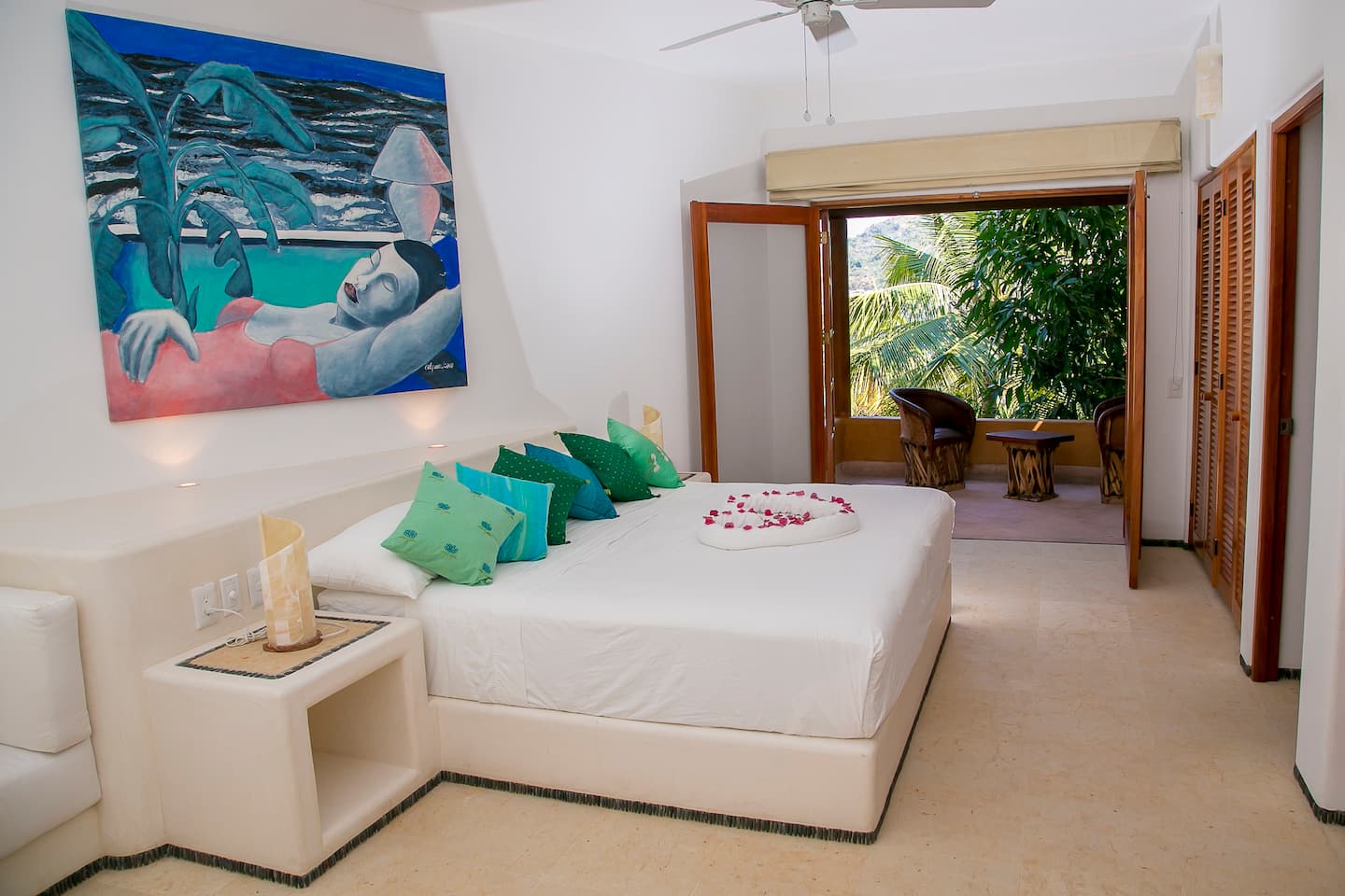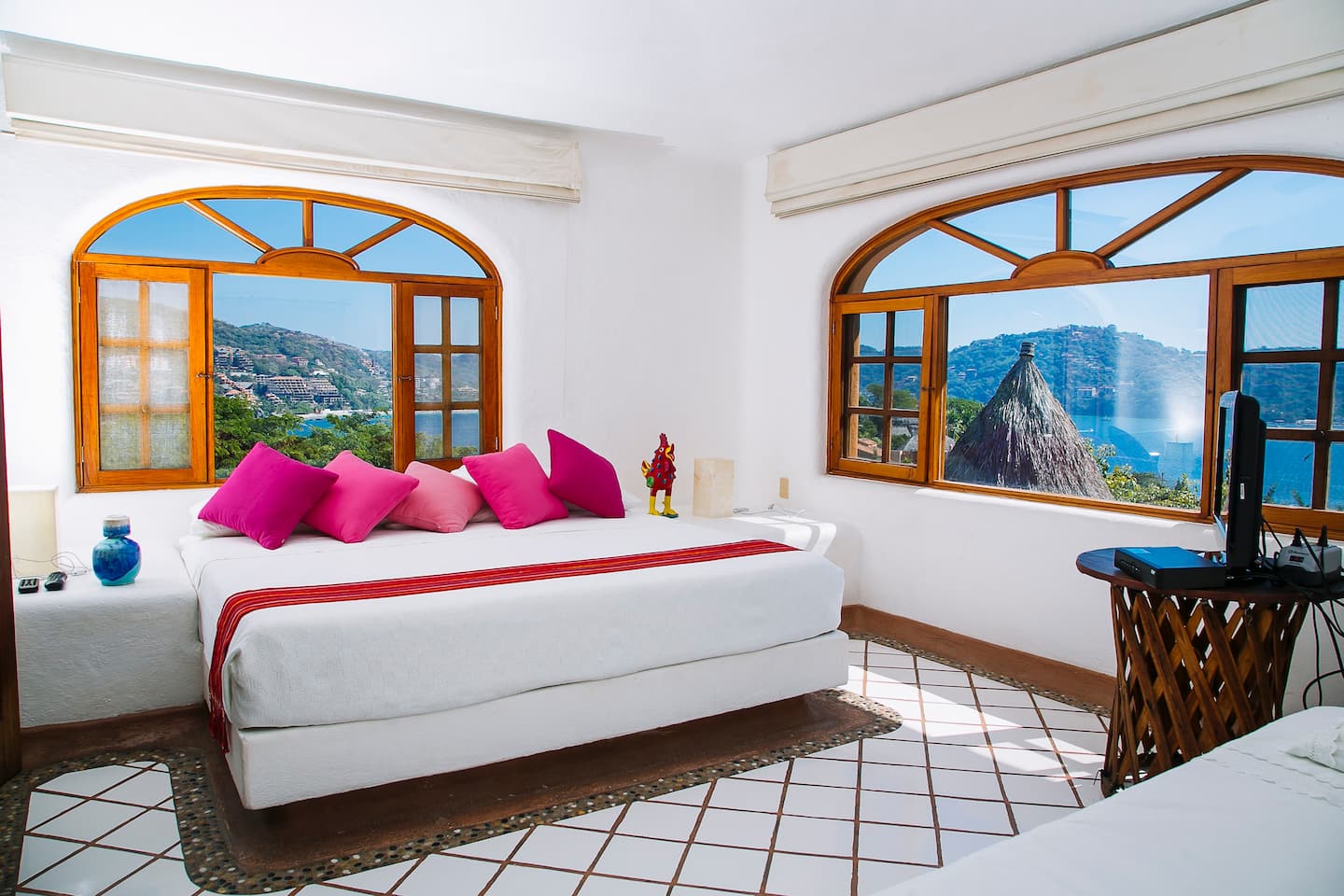 Indulge in a main bedroom where luxury meets comfort, offering a King-size bed, en-suite bathroom, and an astonishing view of the Zihuatanejo Bay.