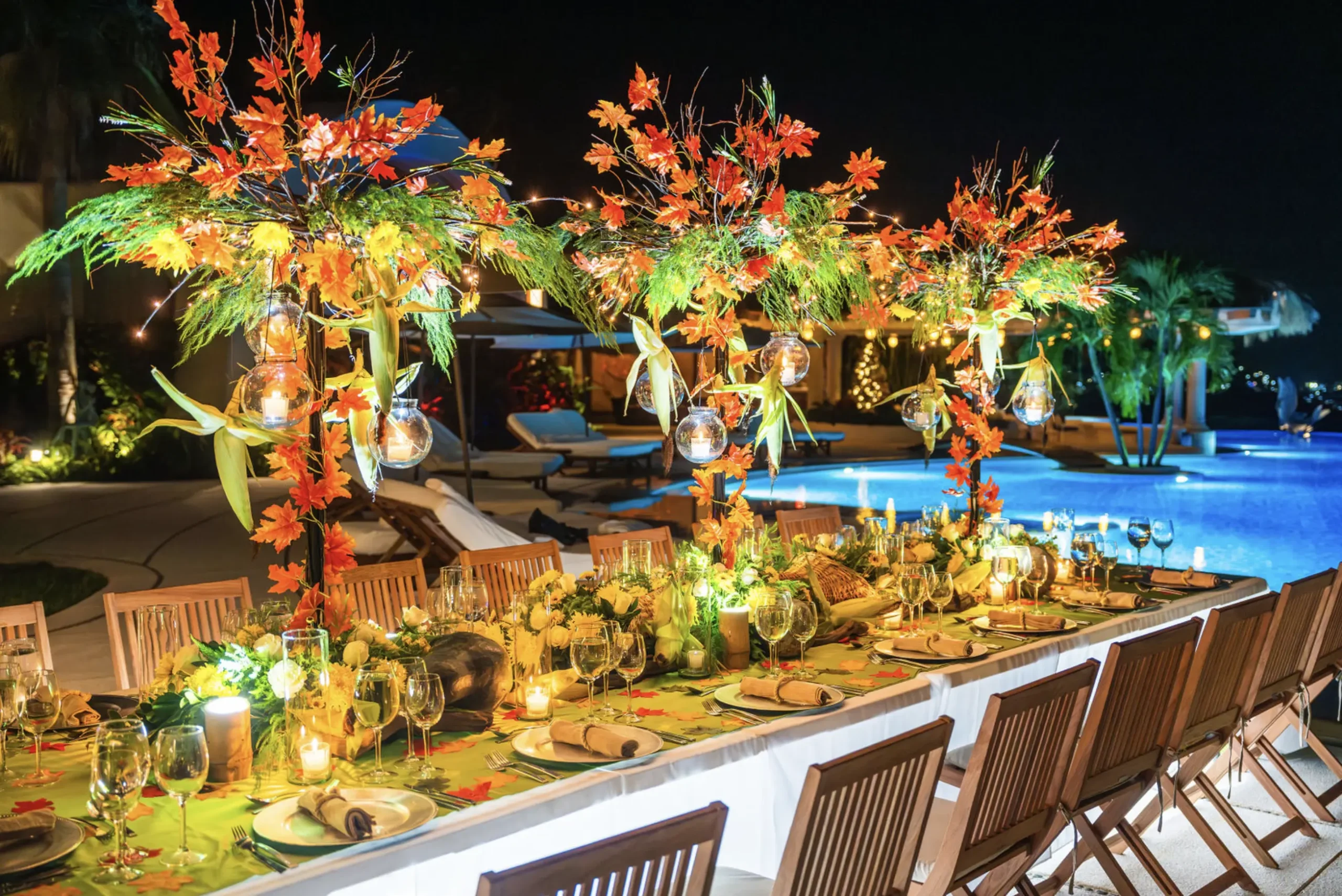 - Garden or poolside views with elegant décor