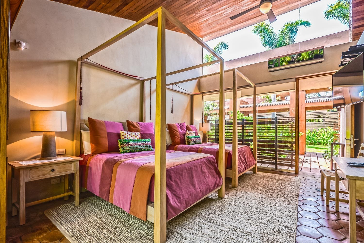 Villa Samba takes pride in its luxury casitas. Each bedroom stands out with soaring ceilings and private patios. The decor, a medley of neutral tones, draws inspiration from regional art. Ensuite bathrooms with wood and stone finishes elevate the experience. Whether you choose a garden view or the ocean, relaxation is guaranteed.