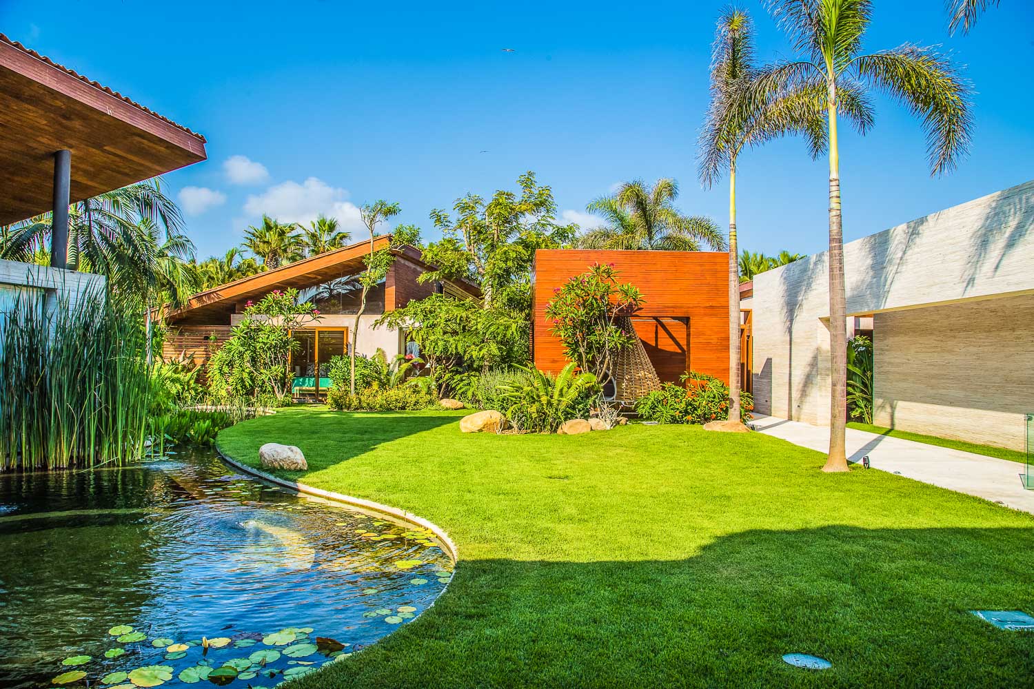The villa unveils a seamless blend of indoor and outdoor spaces as you step inside. The heart of the home, an open-concept layout, wraps around serene garden pockets. Dive into a state-of-the-art kitchen with elegant tiles, native wood accents, and stone finishes. Moreover, it’s fully equipped with modern amenities to smooth your culinary journey.