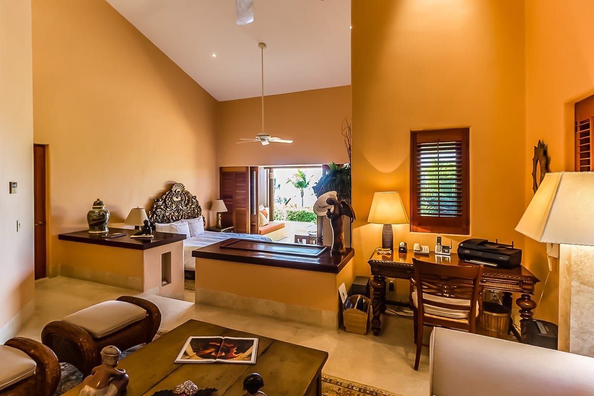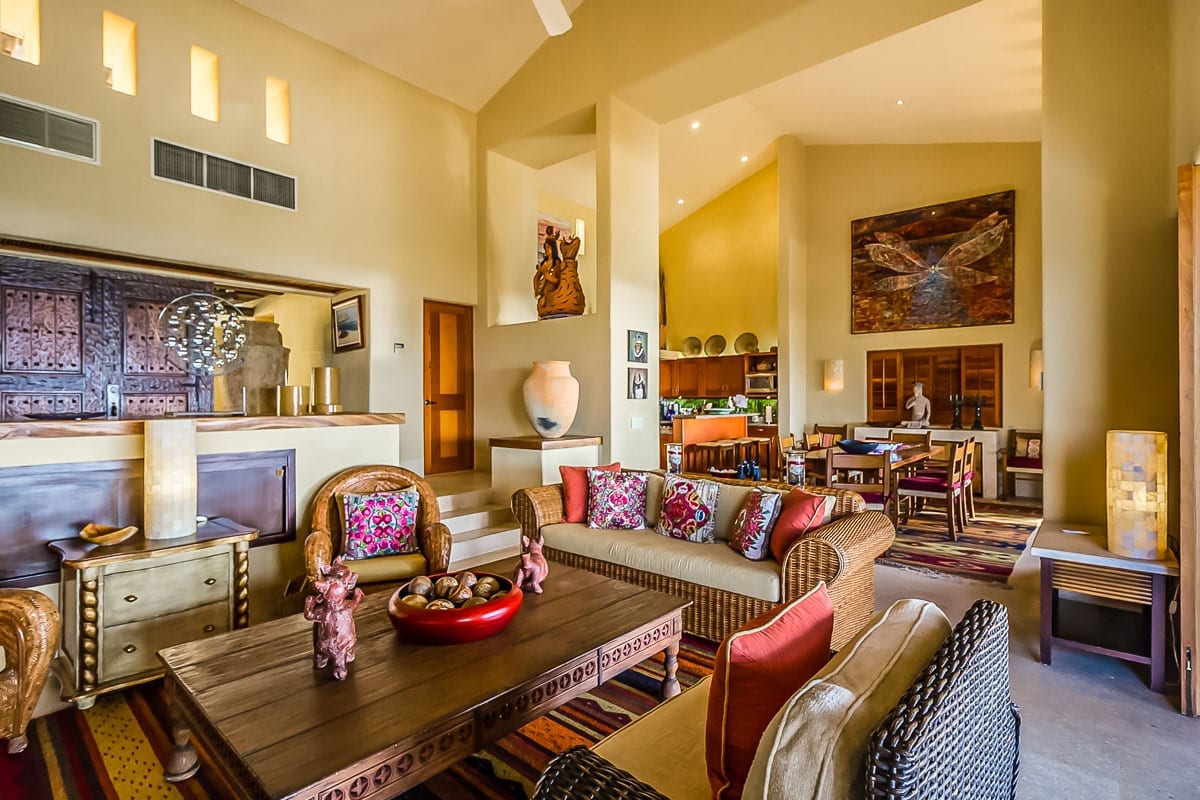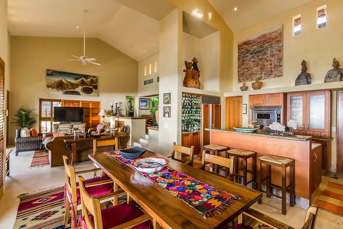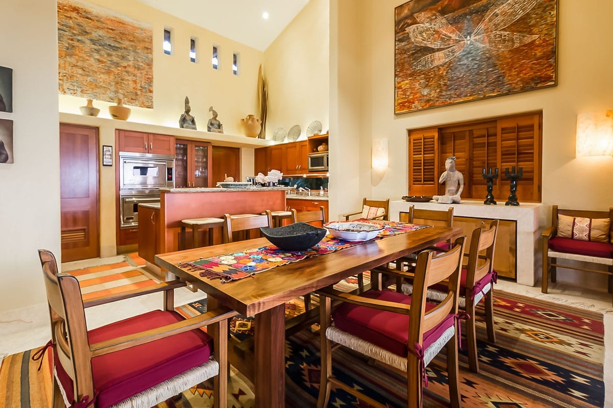 Step inside to discover a spacious open-plan living area adorned with high ceilings and bespoke furnishings. The contemporary art pieces throughout, inspired by Mexican traditions, ensure you’re always connected to the rich culture of the region.