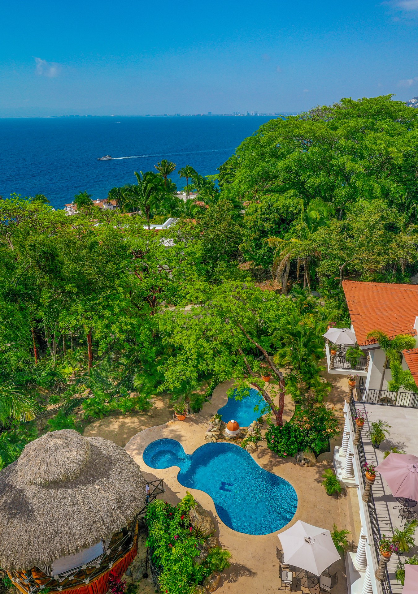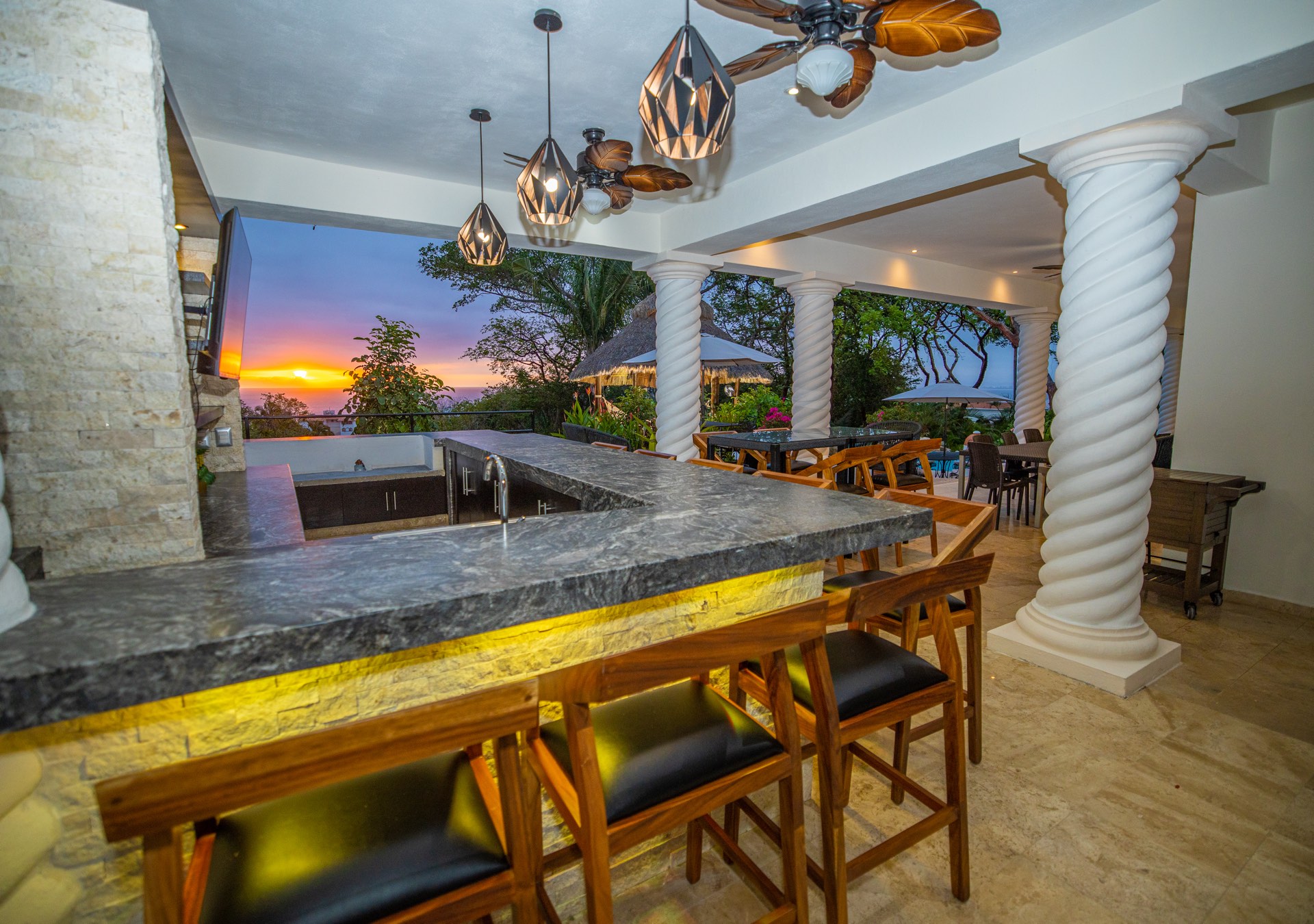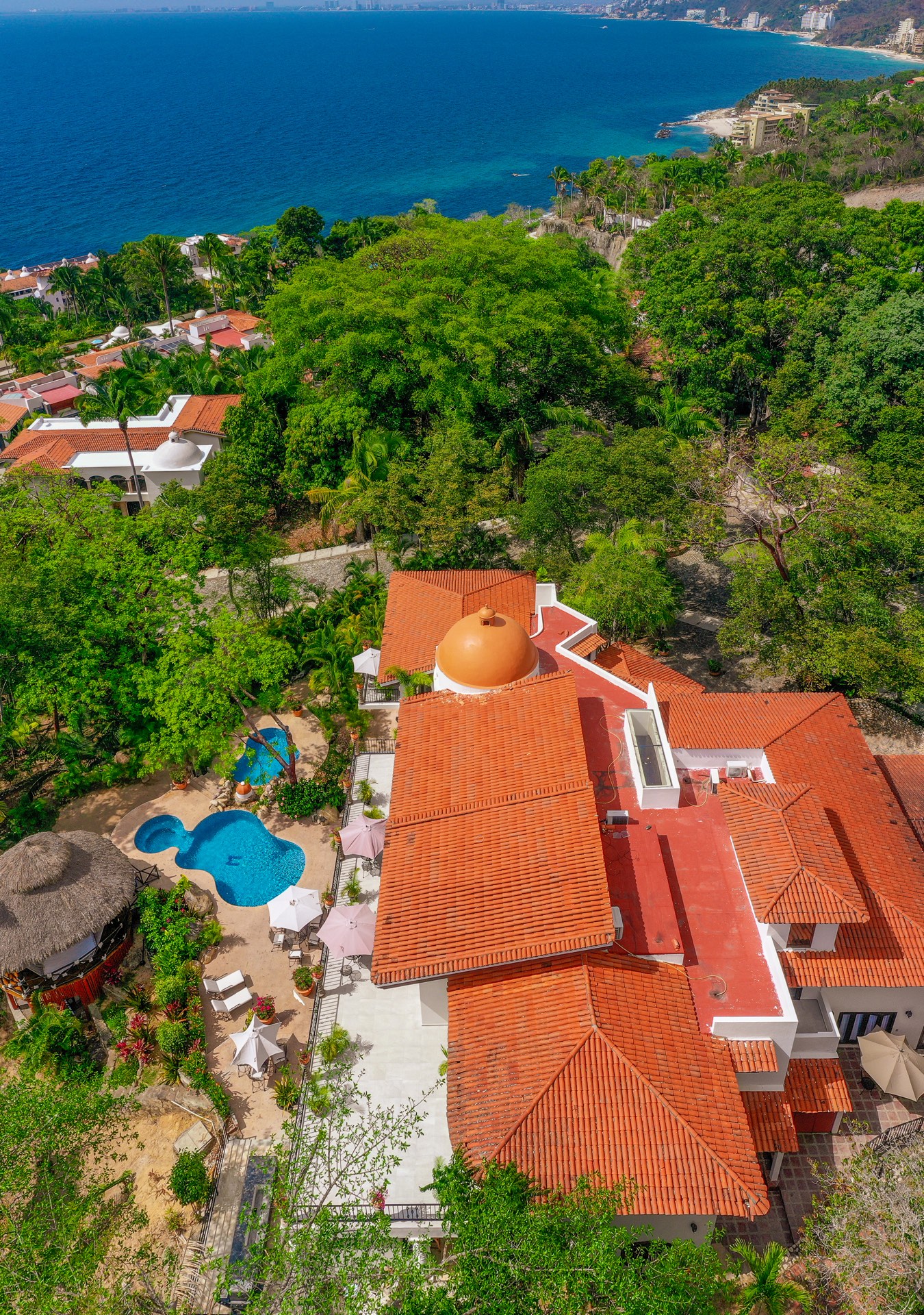 Tesoro Del Mar, nestled in the hillside of Sierra del Mar, is an exquisite 8-bedroom villa in Puerto Vallarta, Mexico. Every element of this villa has been thoughtfully curated by its Las Vegas owners, ensuring guests experience unparalleled luxury and comfort.