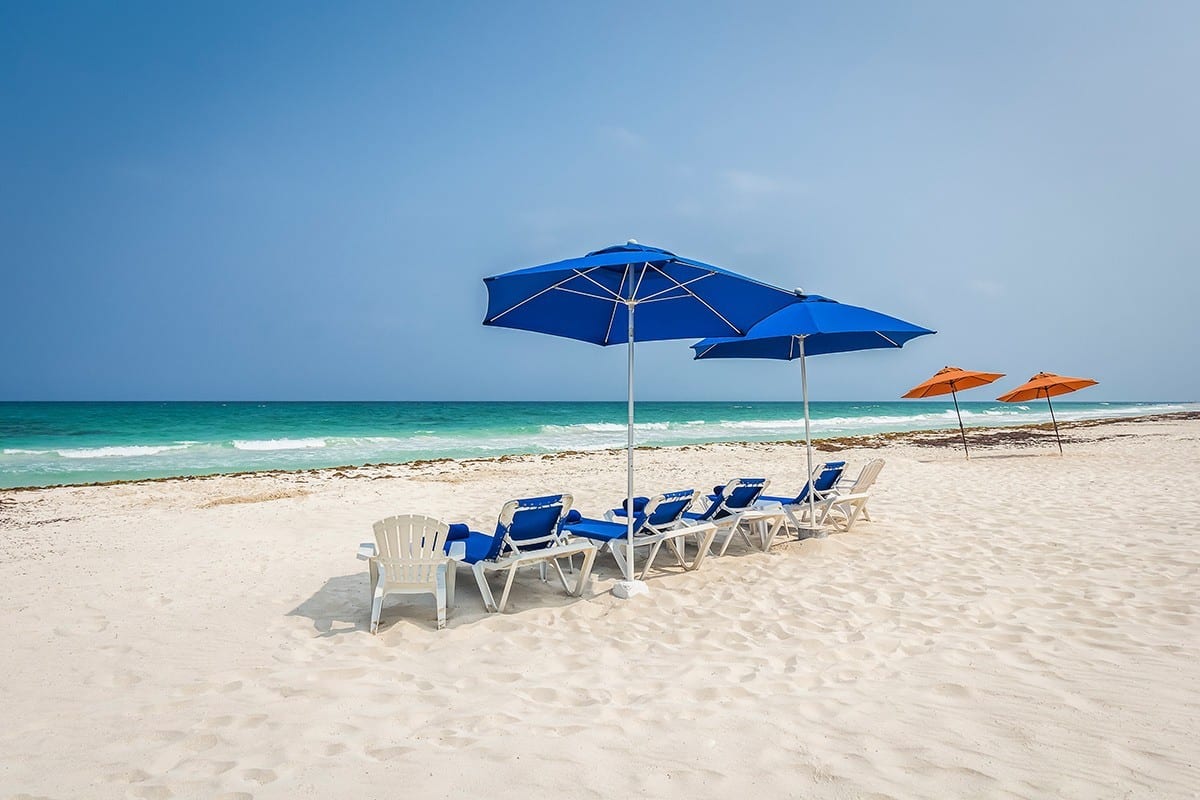 A few steps lead you to Playa del Secreto, a stretch of white sand. Whether you want to snorkel, swim, or relax, the beach has umbrellas, chairs, snorkeling gear, and boogie boards.