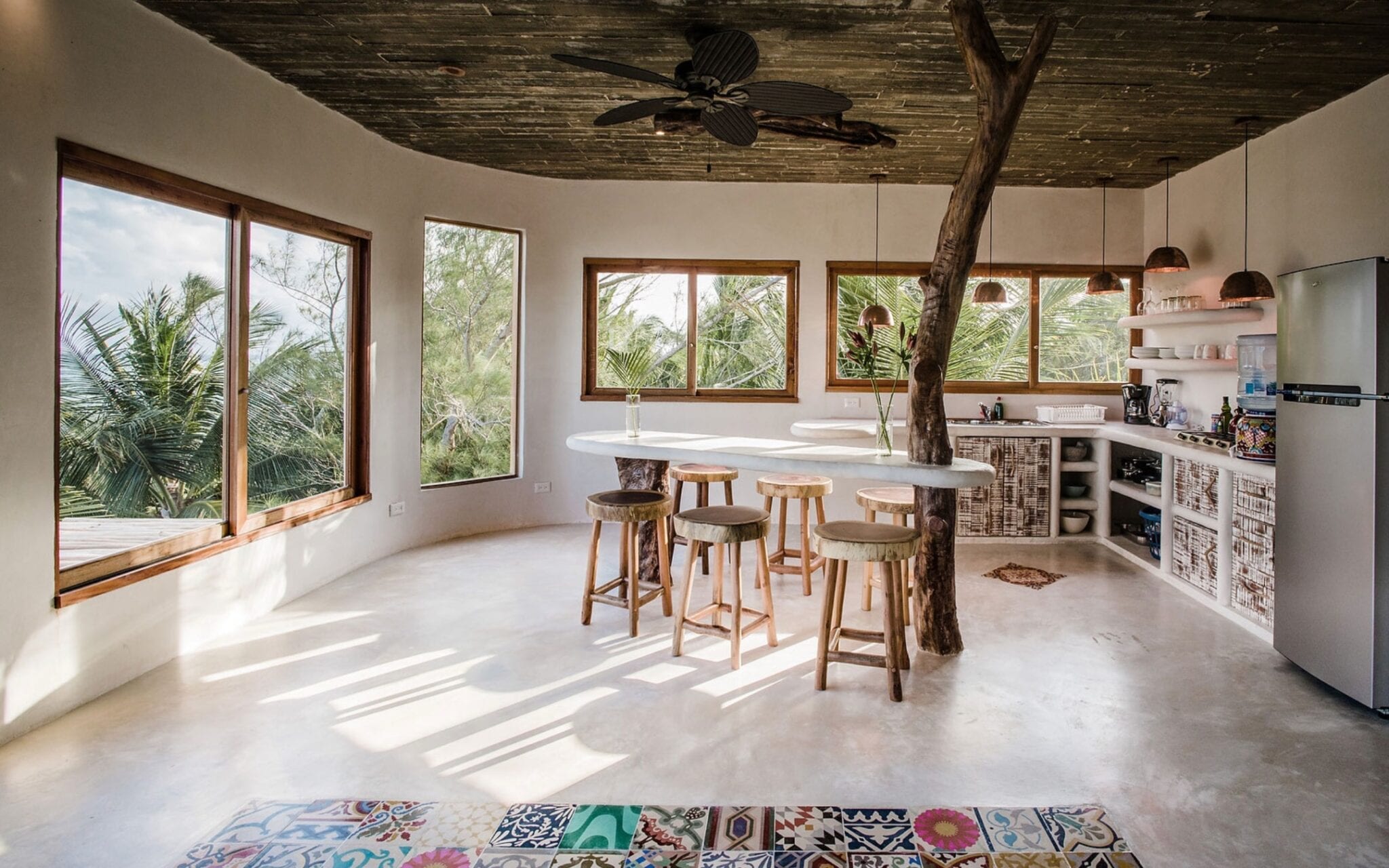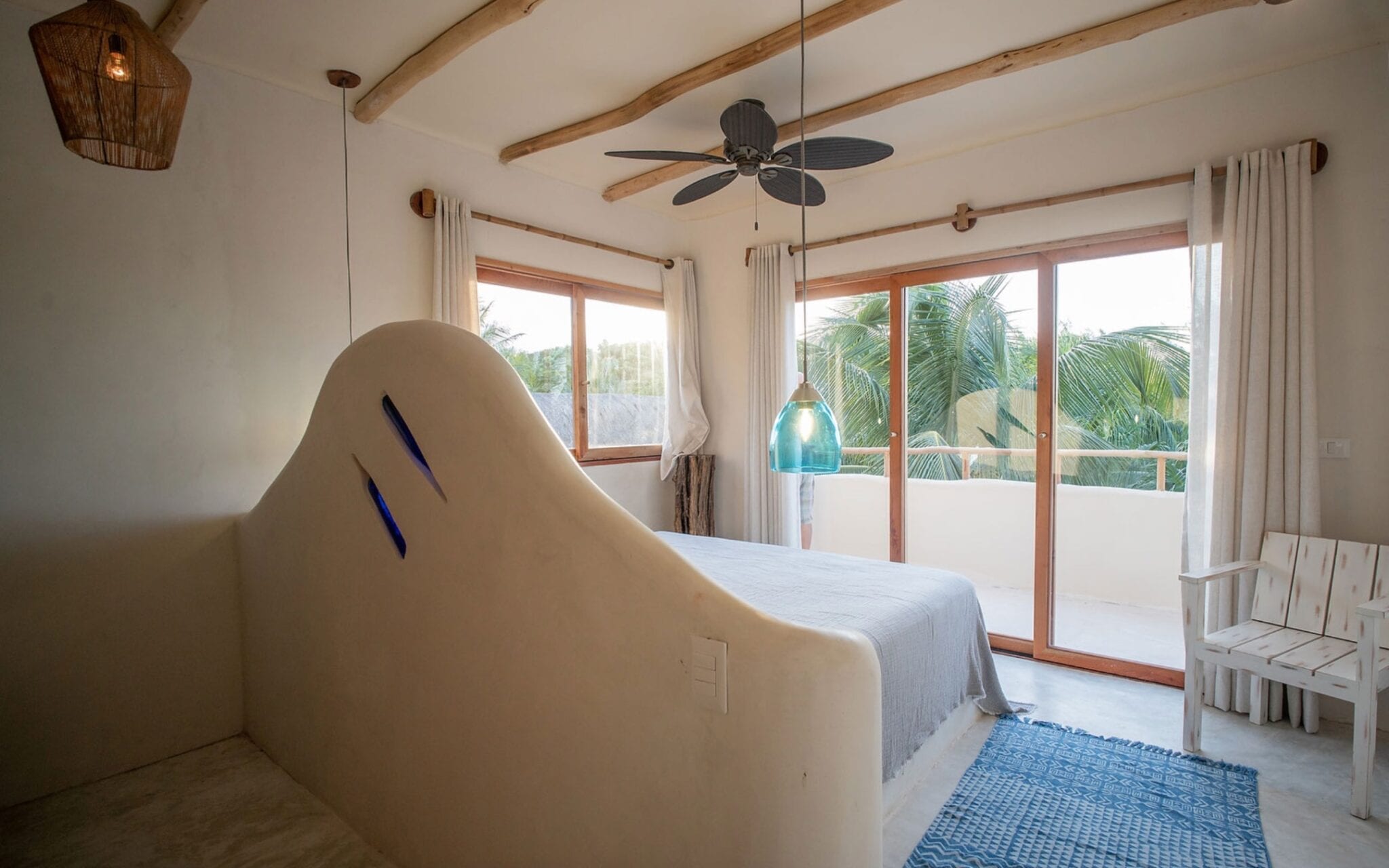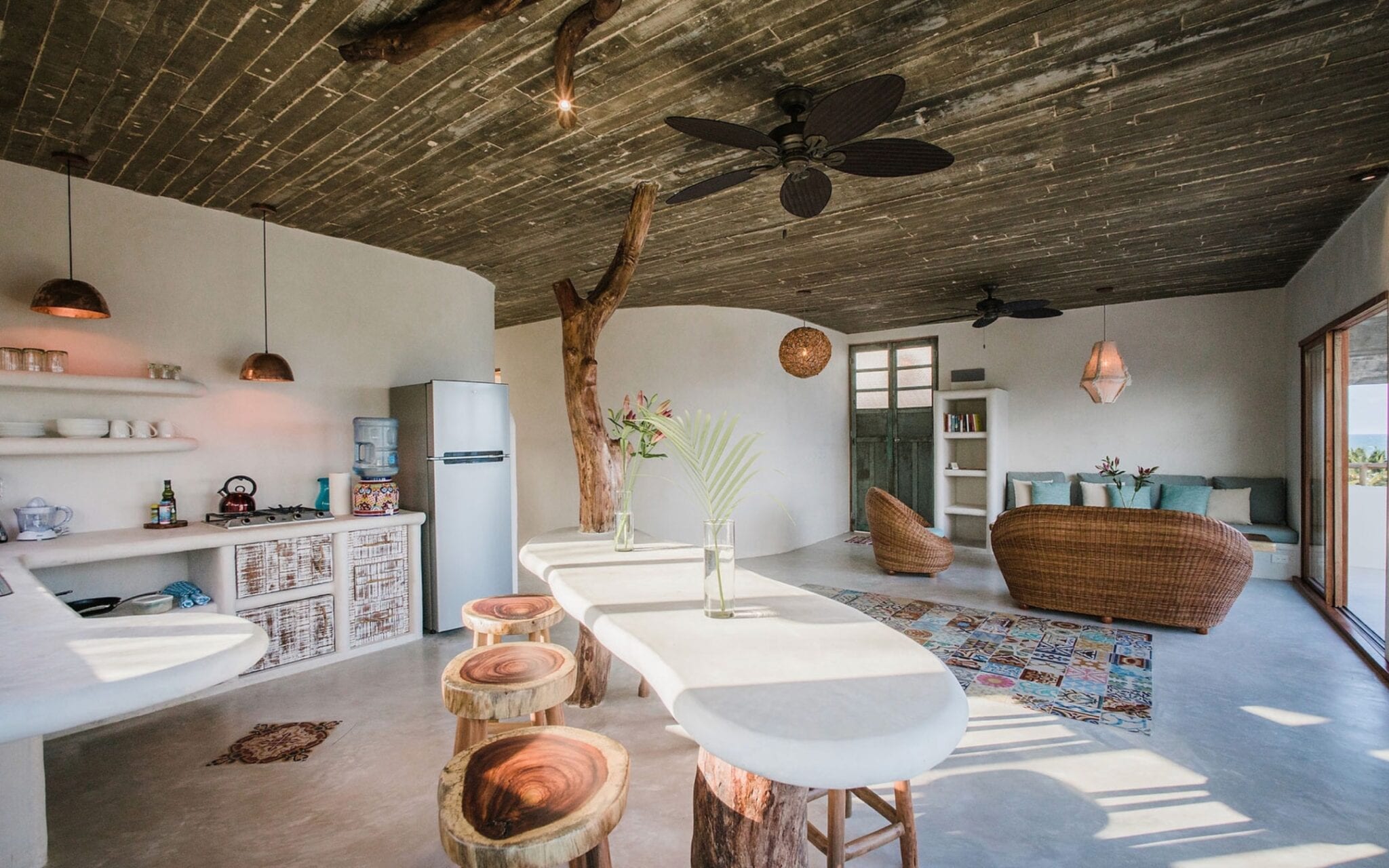 Every corner of Zorba Penthouse is a testament to Tulum’s inherent charm. Combined with refined artistic touches, natural design elements encapsulate Tulum’s laid-back aura. With vast glass doors that welcome the harmonious sea breezes, this villa stands as a bridge connecting you directly to nature’s bounty. Whether you’re preparing a meal in the fully equipped kitchen or relaxing on the patio, the rhythmic sounds of the ocean accompany your every moment.